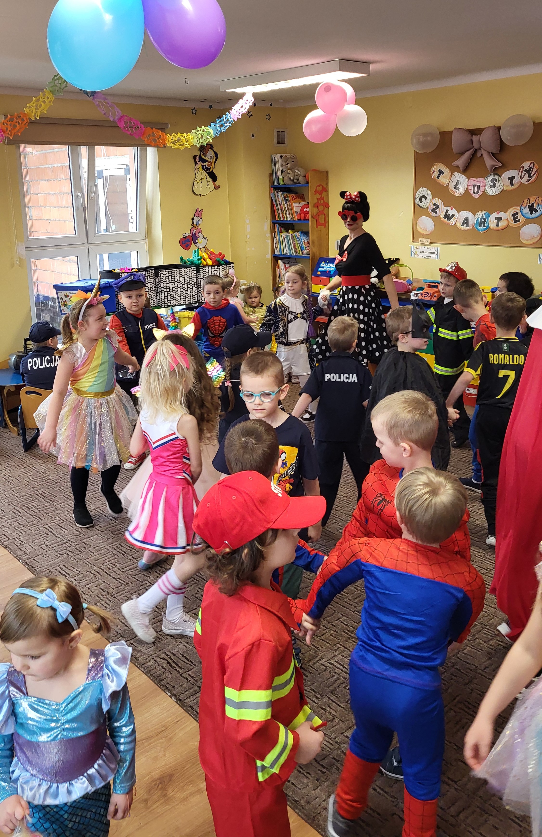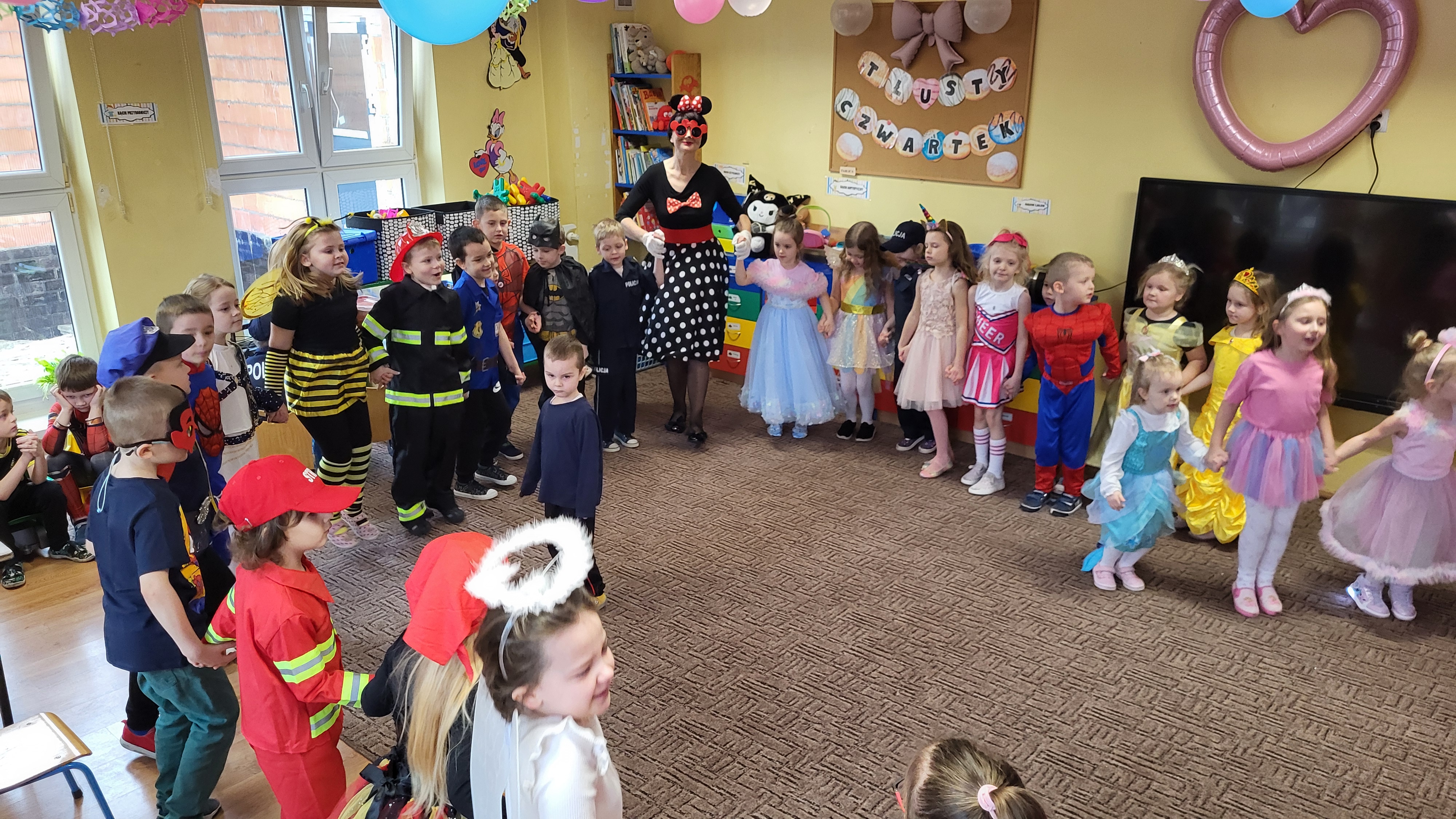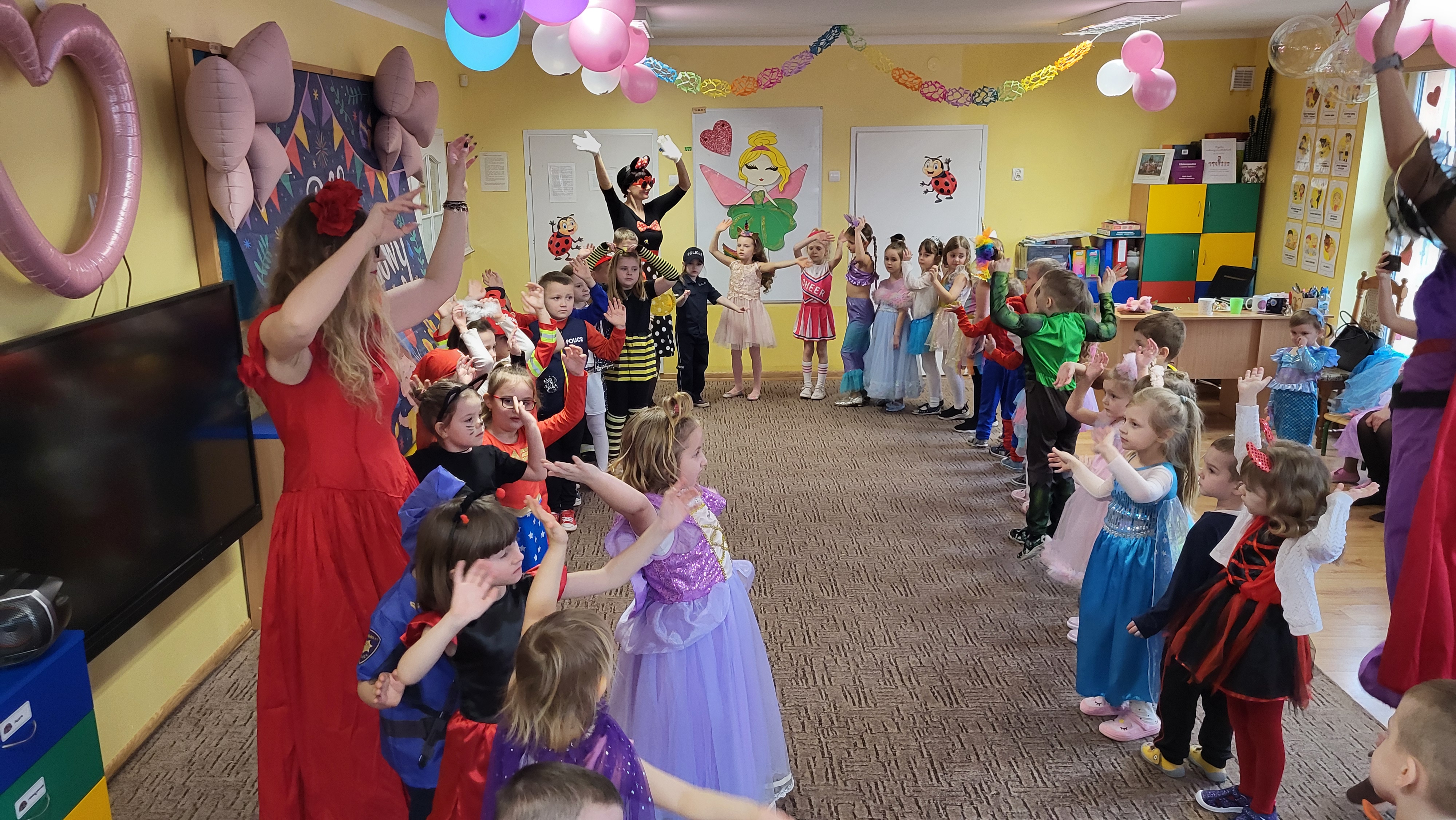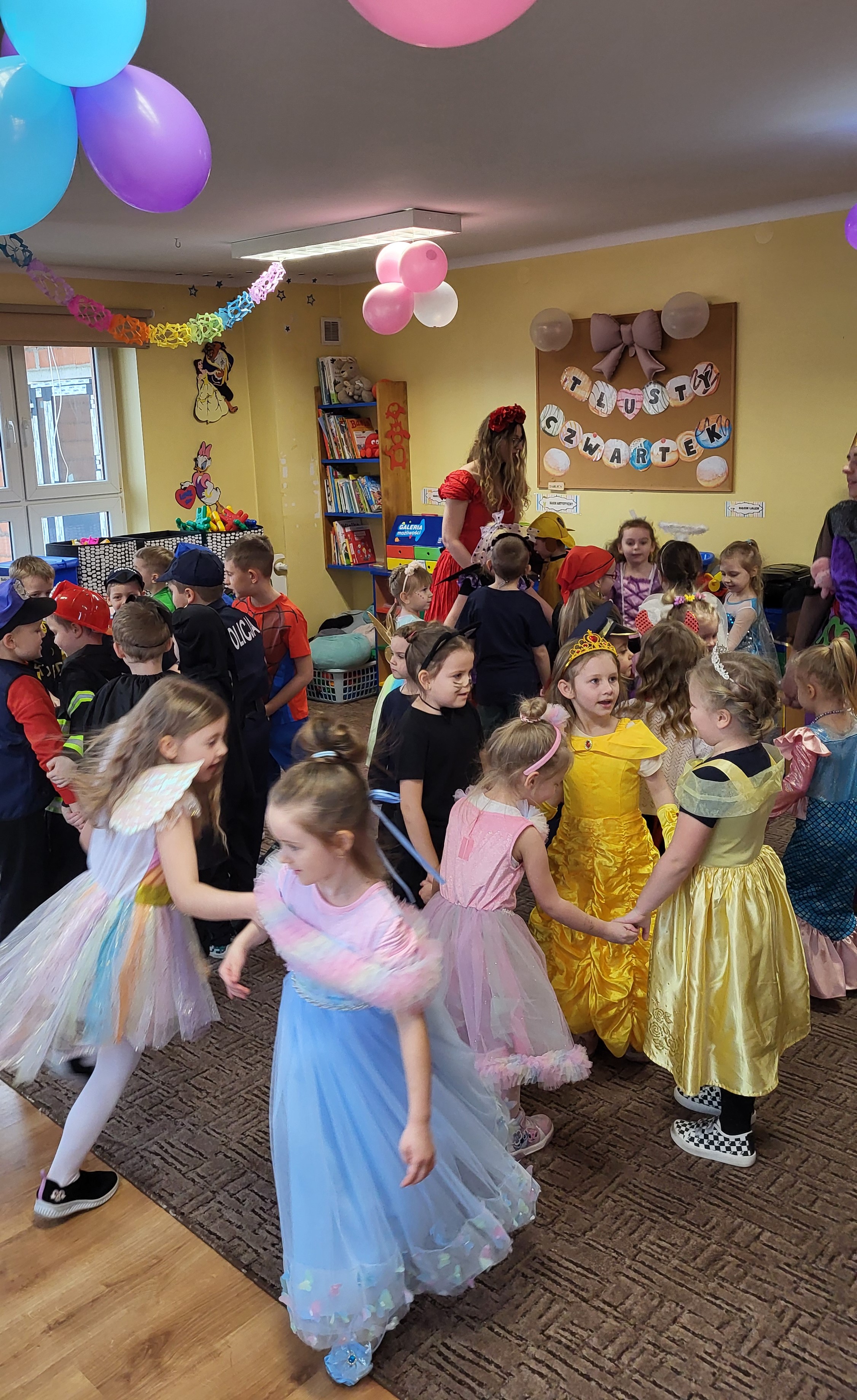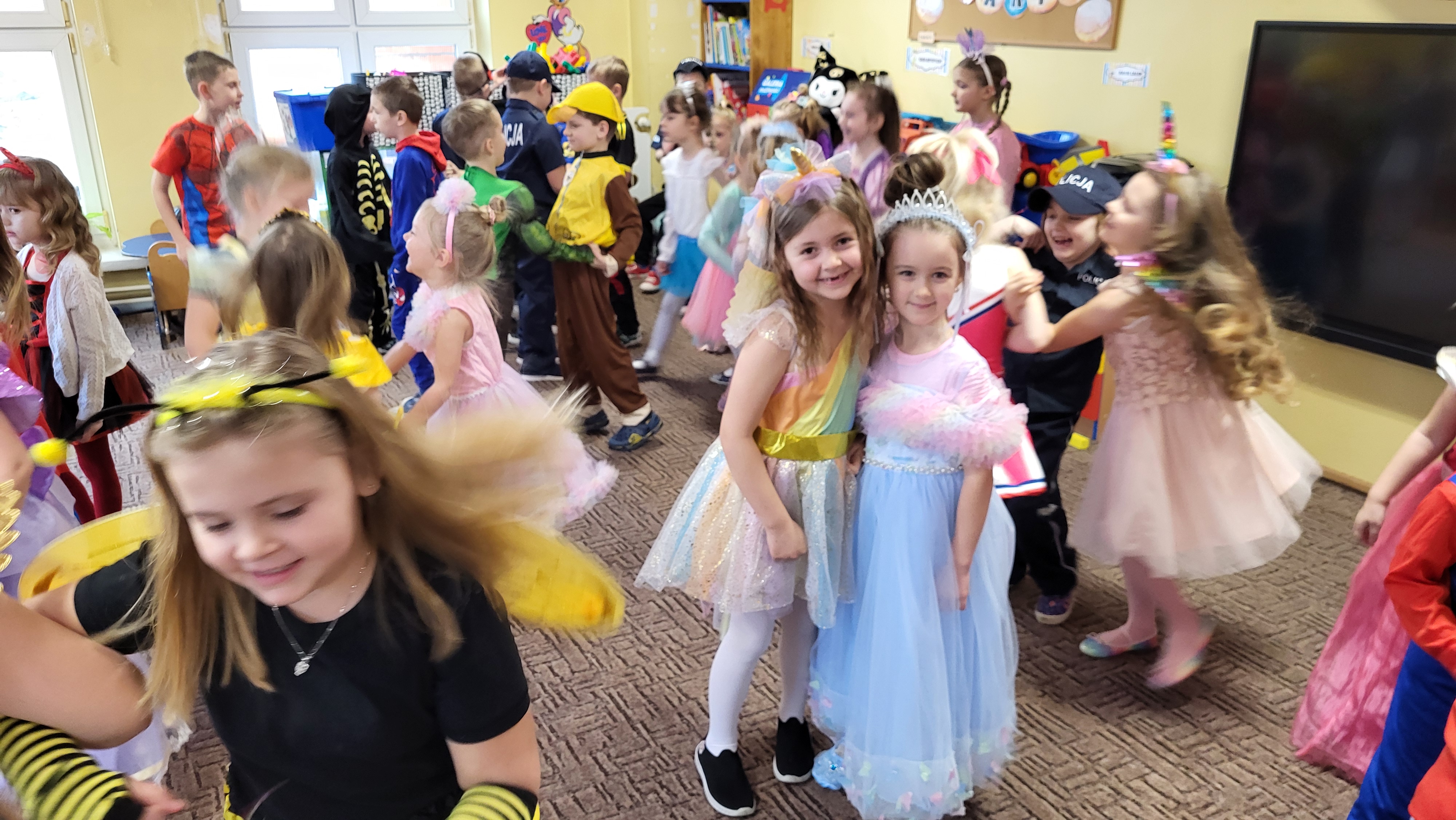 W salach już od samego rana pojawiały się niezwykłe postacie: księżniczki, wróżki, motylki, a także odważni superbohaterowie, policjanci i piraci. Wspólną zabawę uatrakcyjniały tańce w rytmie znanych przebojów. Dzieci z dumą prezentowały swoje wyjątkowe przebrania.