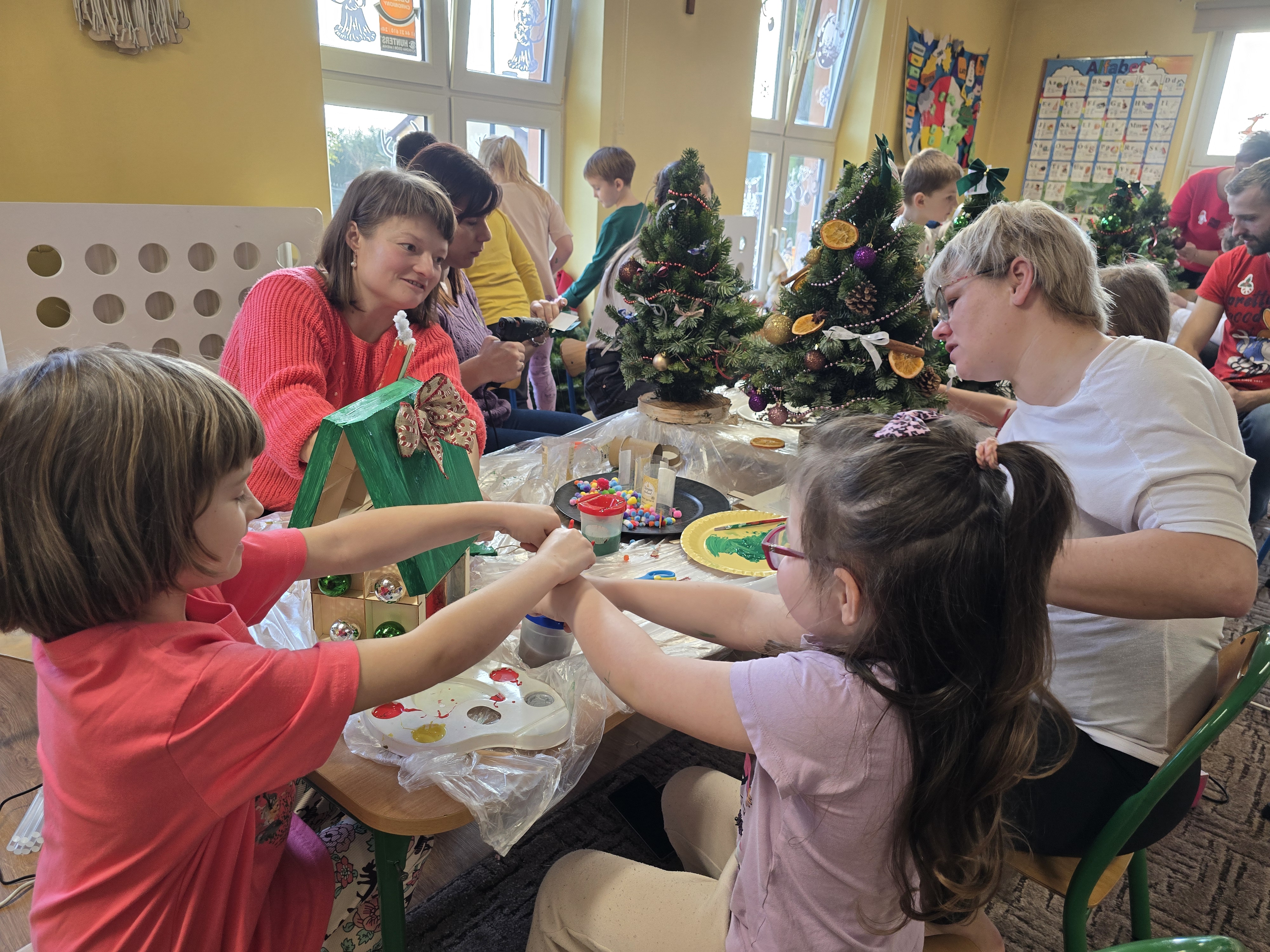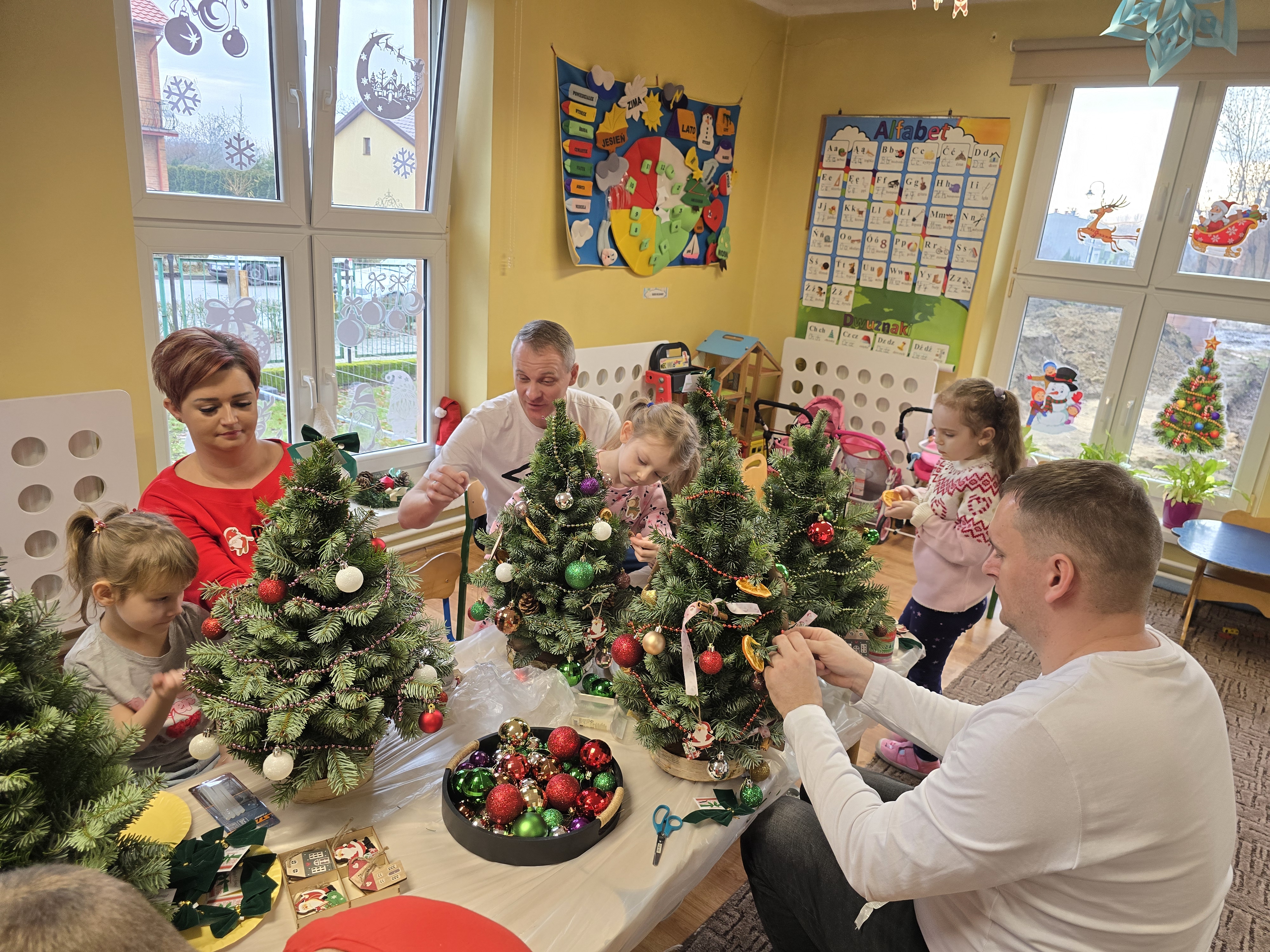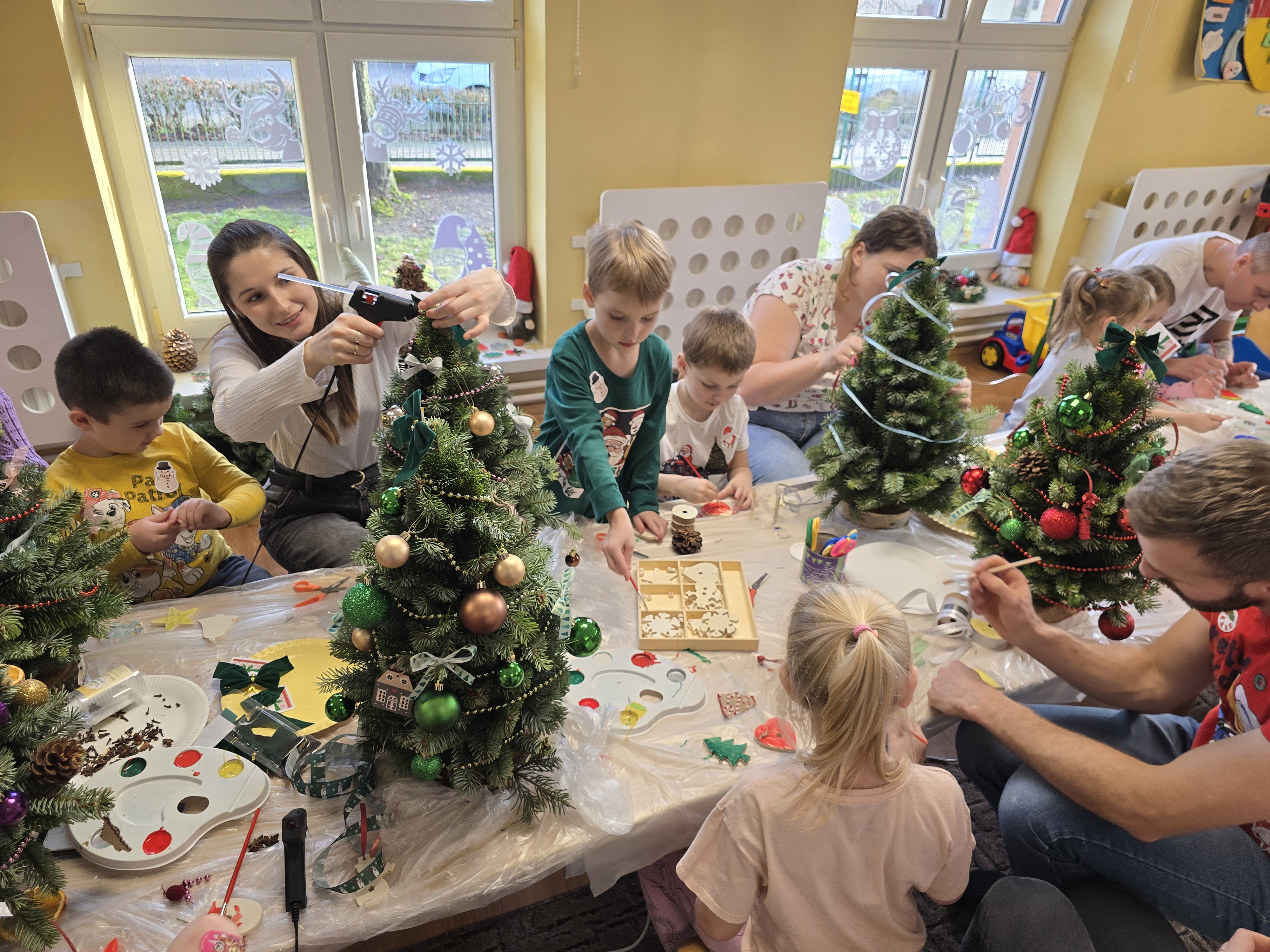 Warsztaty okazały się doskonałą okazją spędzenia czasu w ciepłej, rodzinnej atmosferze oraz wprowadzenia się w świąteczny nastrój. Dziękujemy wszystkim rodzicom oraz naszym przedszkolnym elfom: pani Wioletce i pani Kamilce za pomoc i wspólne tworzenie wyjątkowych chwil.