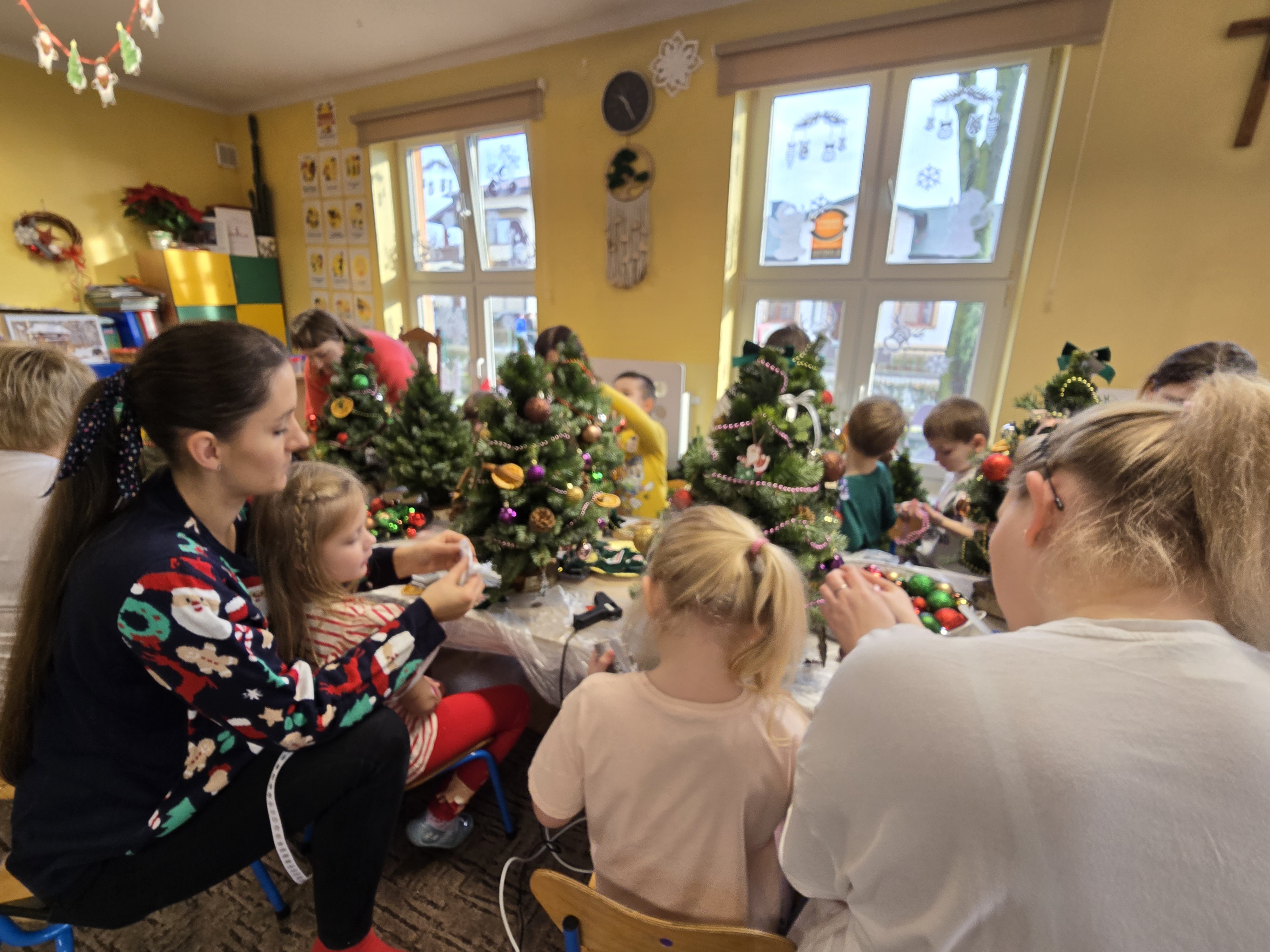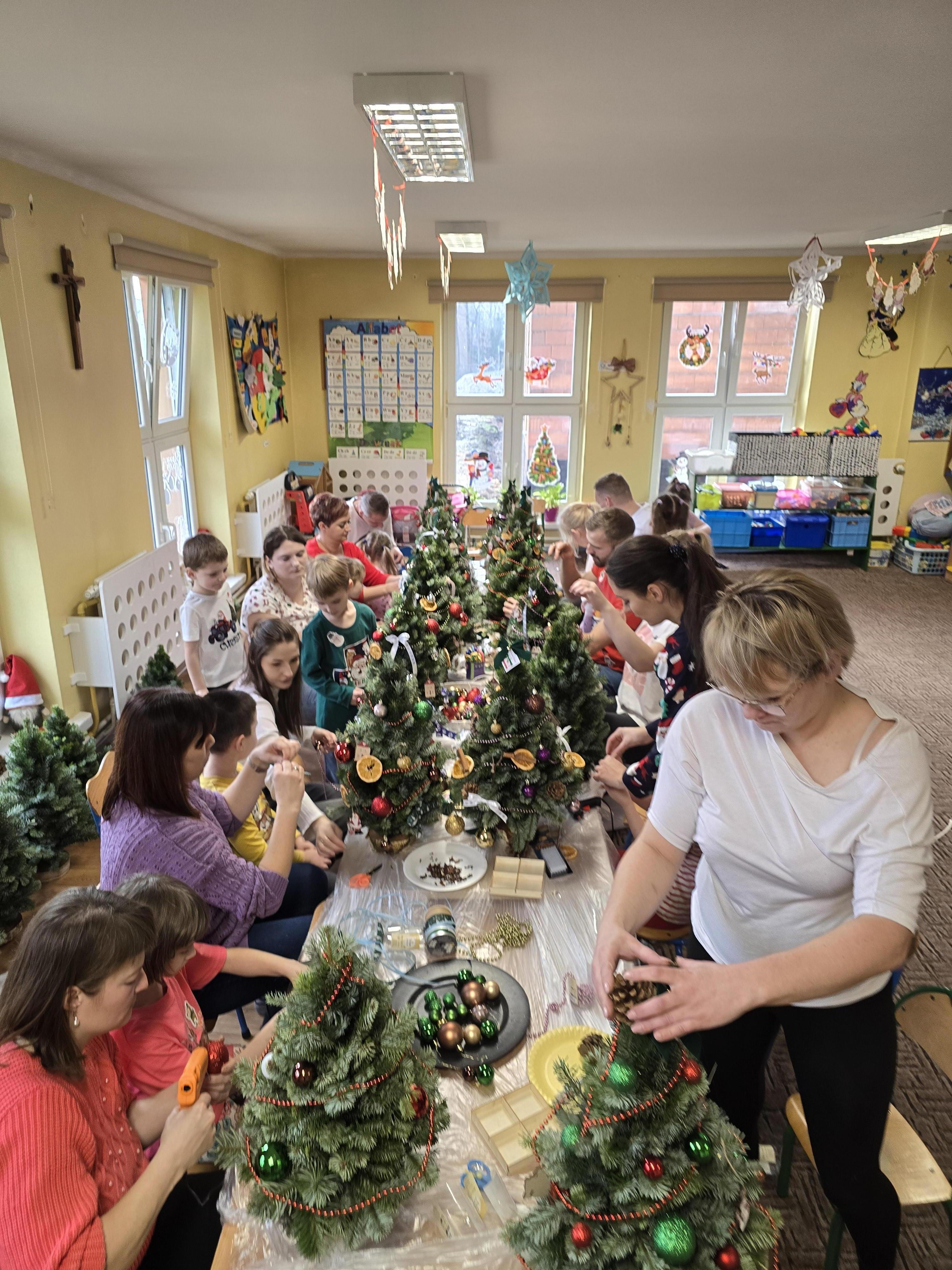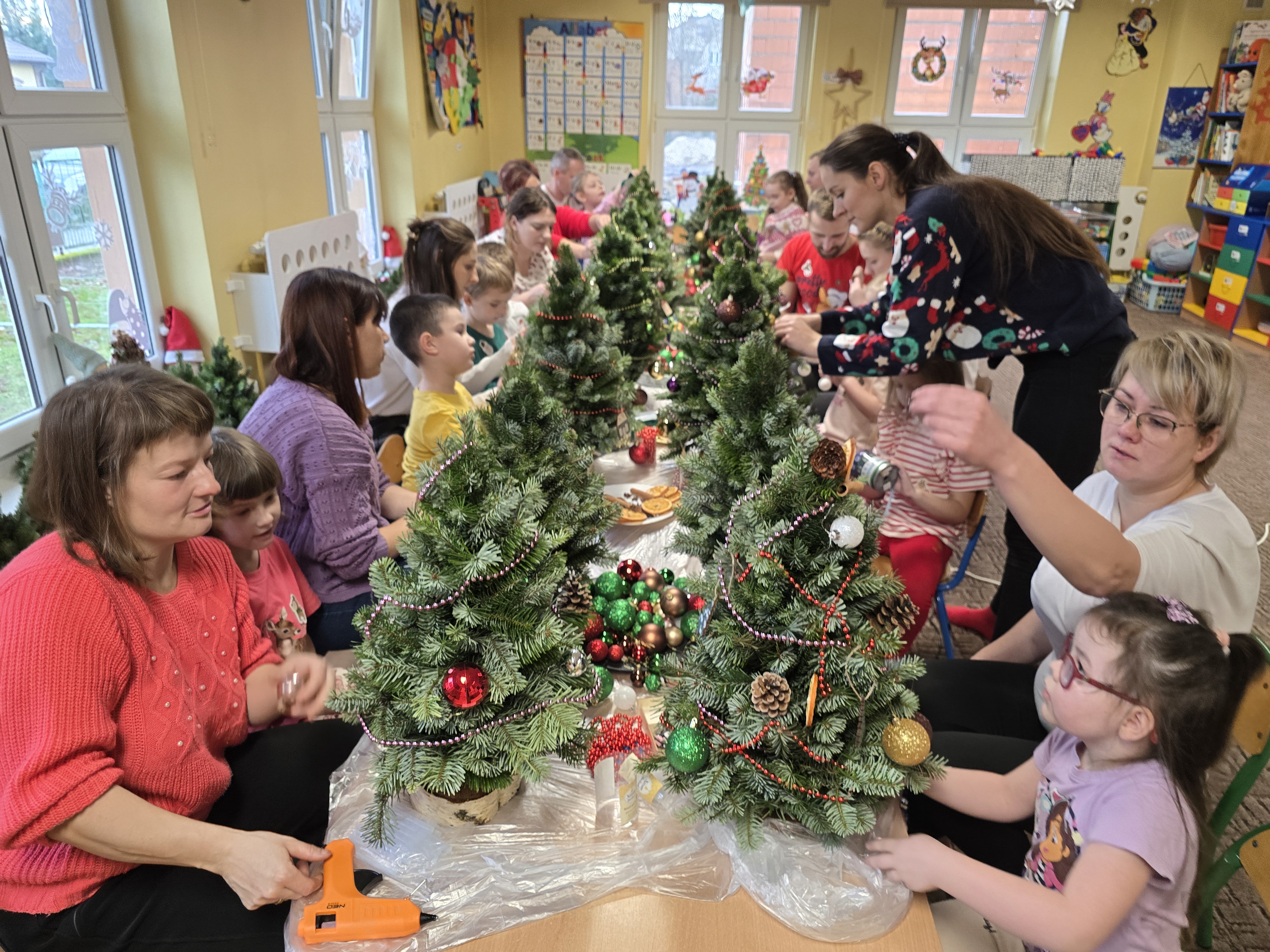 Warsztaty okazały się doskonałą okazją spędzenia czasu w ciepłej, rodzinnej atmosferze oraz wprowadzenia się w świąteczny nastrój. Dziękujemy wszystkim rodzicom oraz naszym przedszkolnym elfom: pani Wioletce i pani Kamilce za pomoc i wspólne tworzenie wyjątkowych chwil.