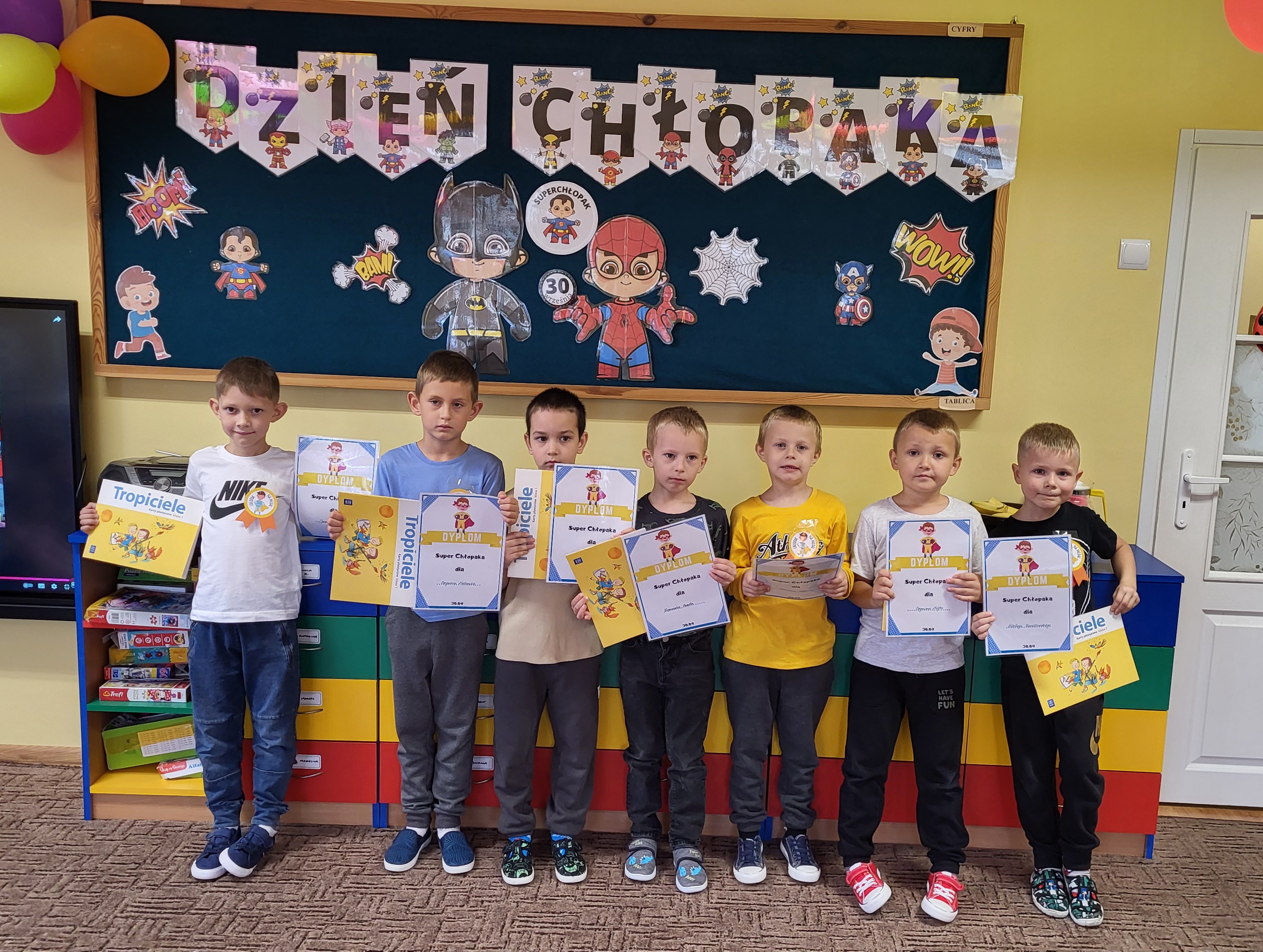 Chłopcy z naszego przedszkola zostali obdarowani medalami "Super Chłopaka", dyplomami i książeczkami od wychowawczyń oraz dodatkowo chłopcy z naszej grupy drobnymi upominkami i pysznymi babeczkami od Rady Rodziców. Dziękujemy :)