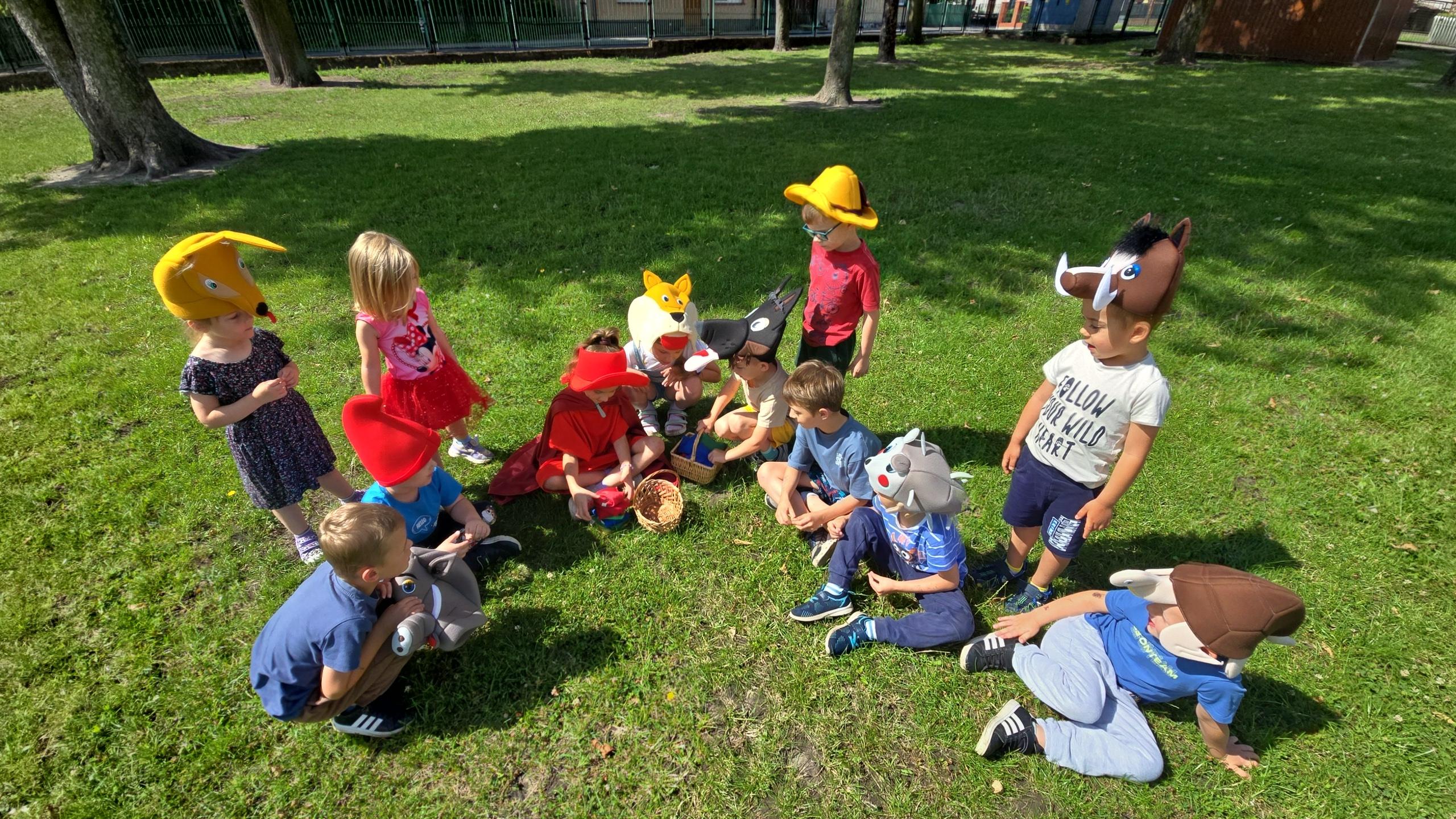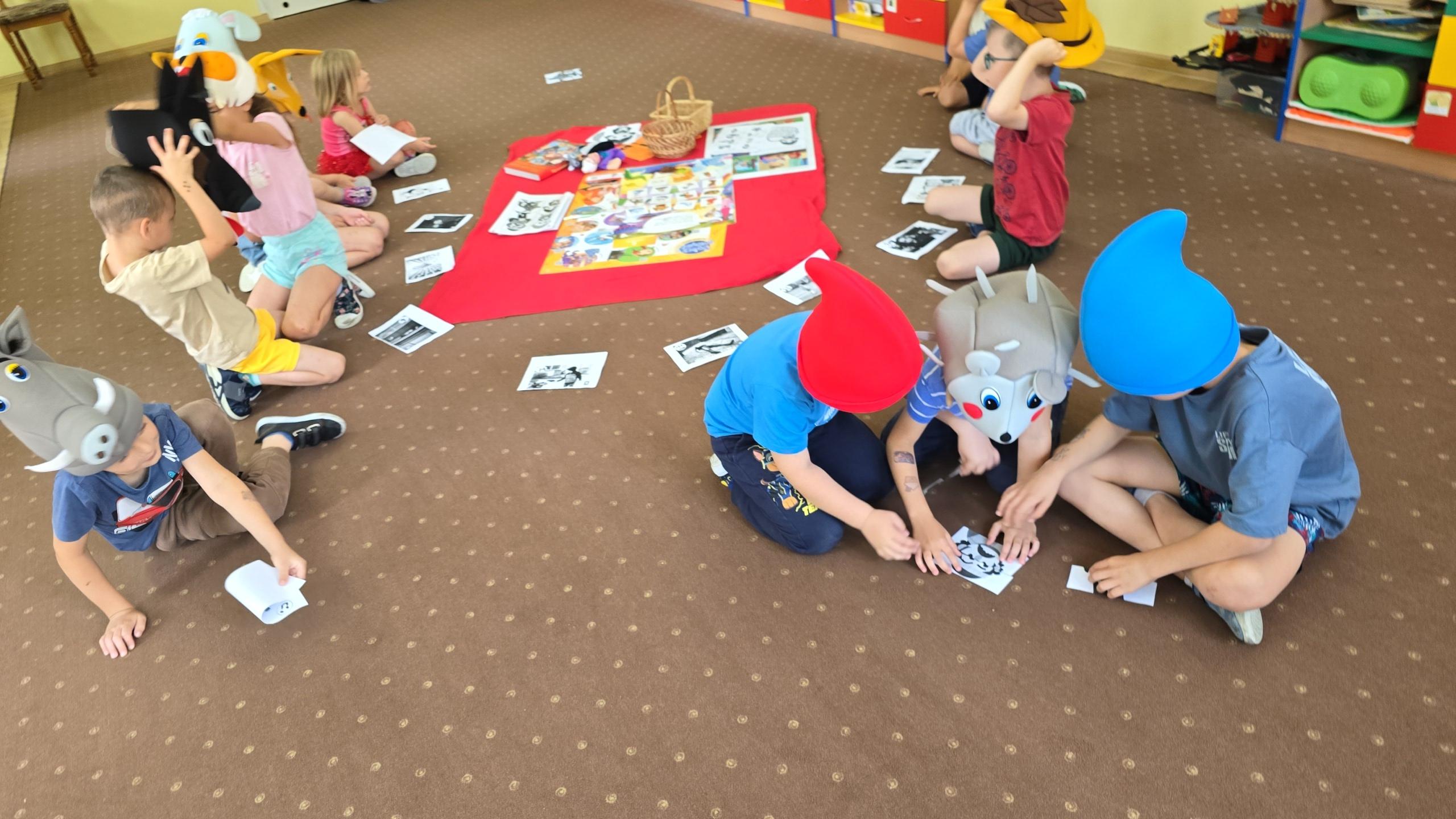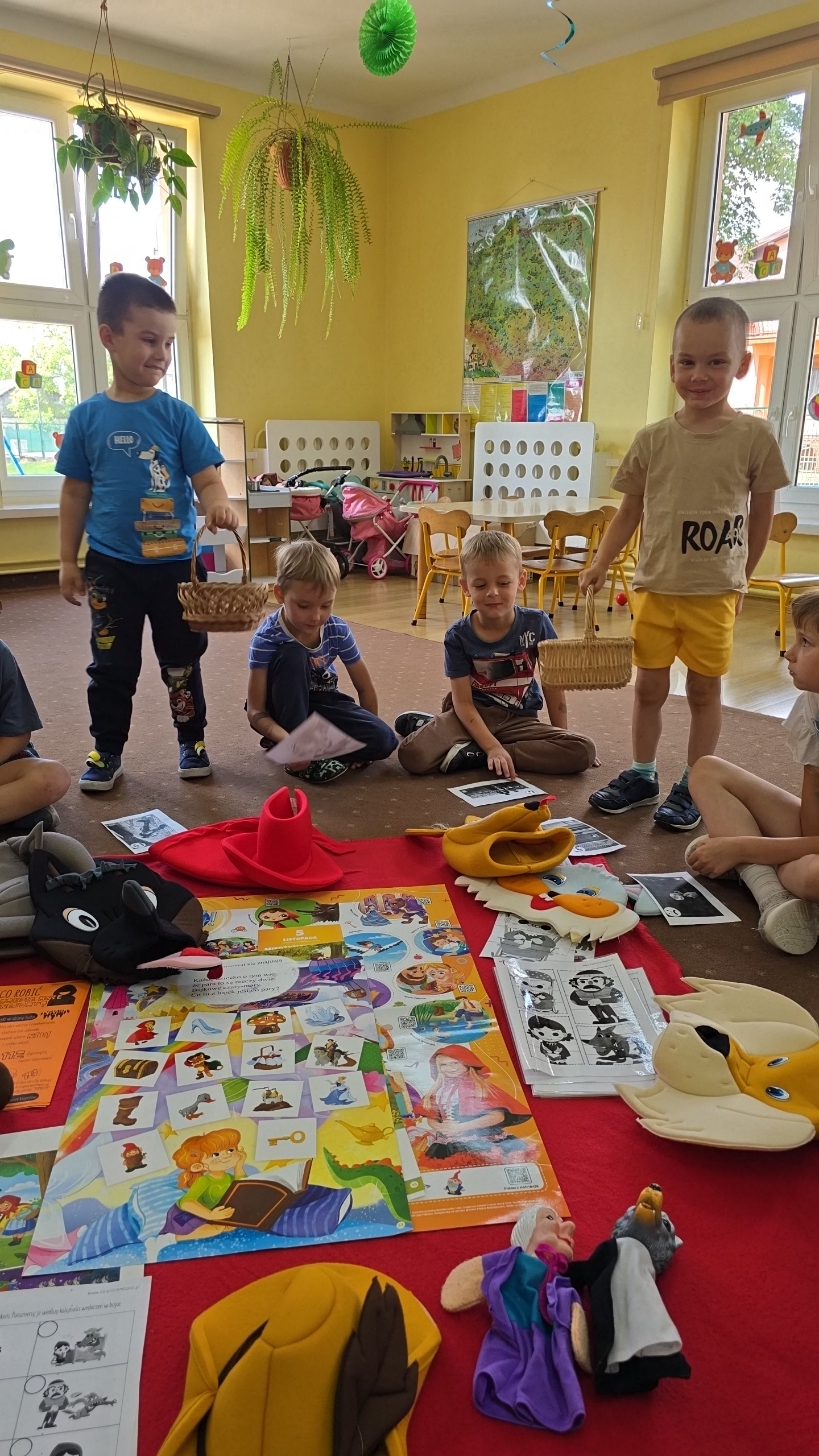 Dzieci z naszego przedszkola oprócz wysłuchania baśni, dopasowywały kwestie do postaci. Przygotowywały własne koszyki dla chorej babci. Rozmawialiśmy, co sami mogliby przynieść swoim bliskim, gdyby potrzebowali pomocy.