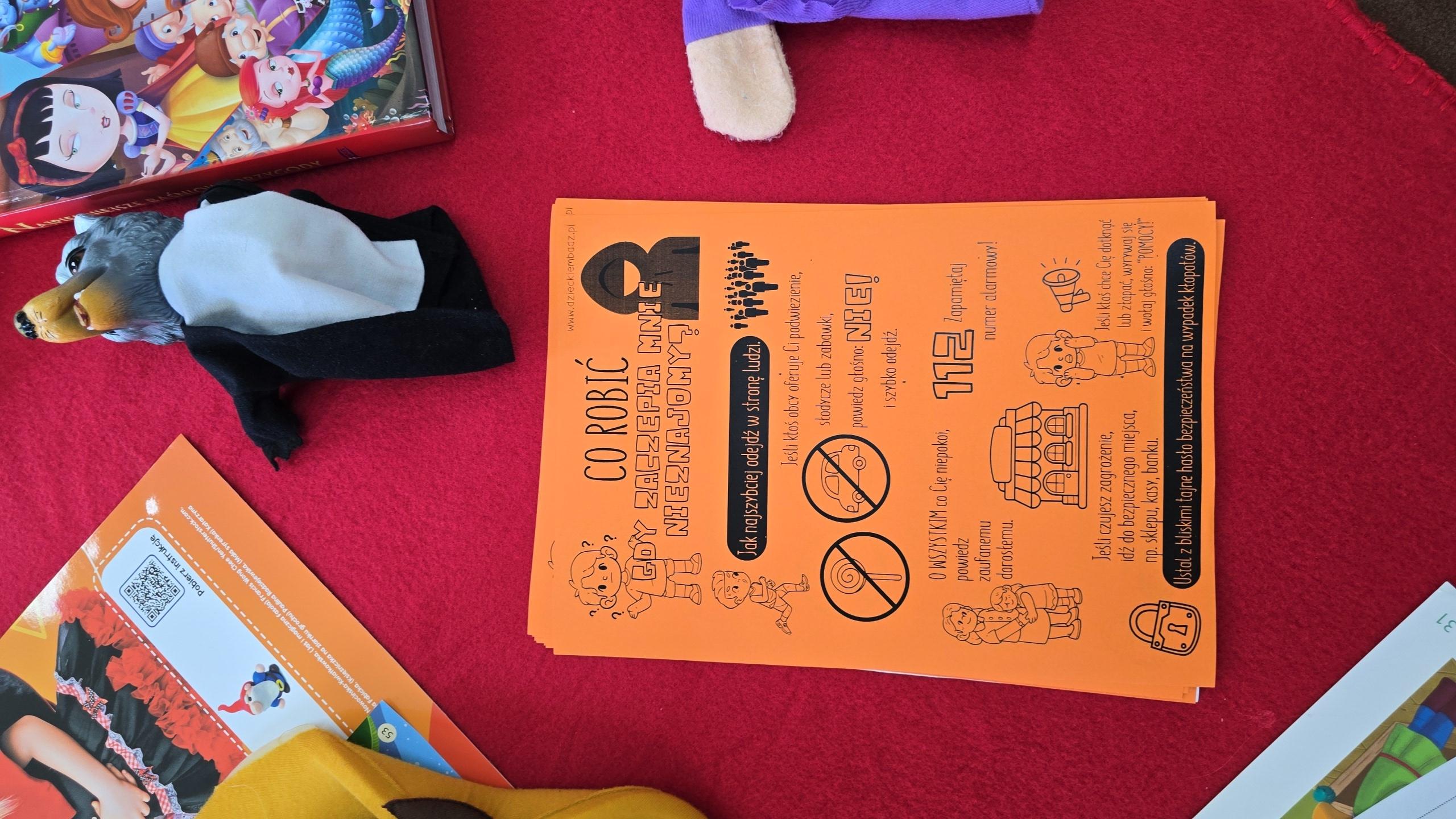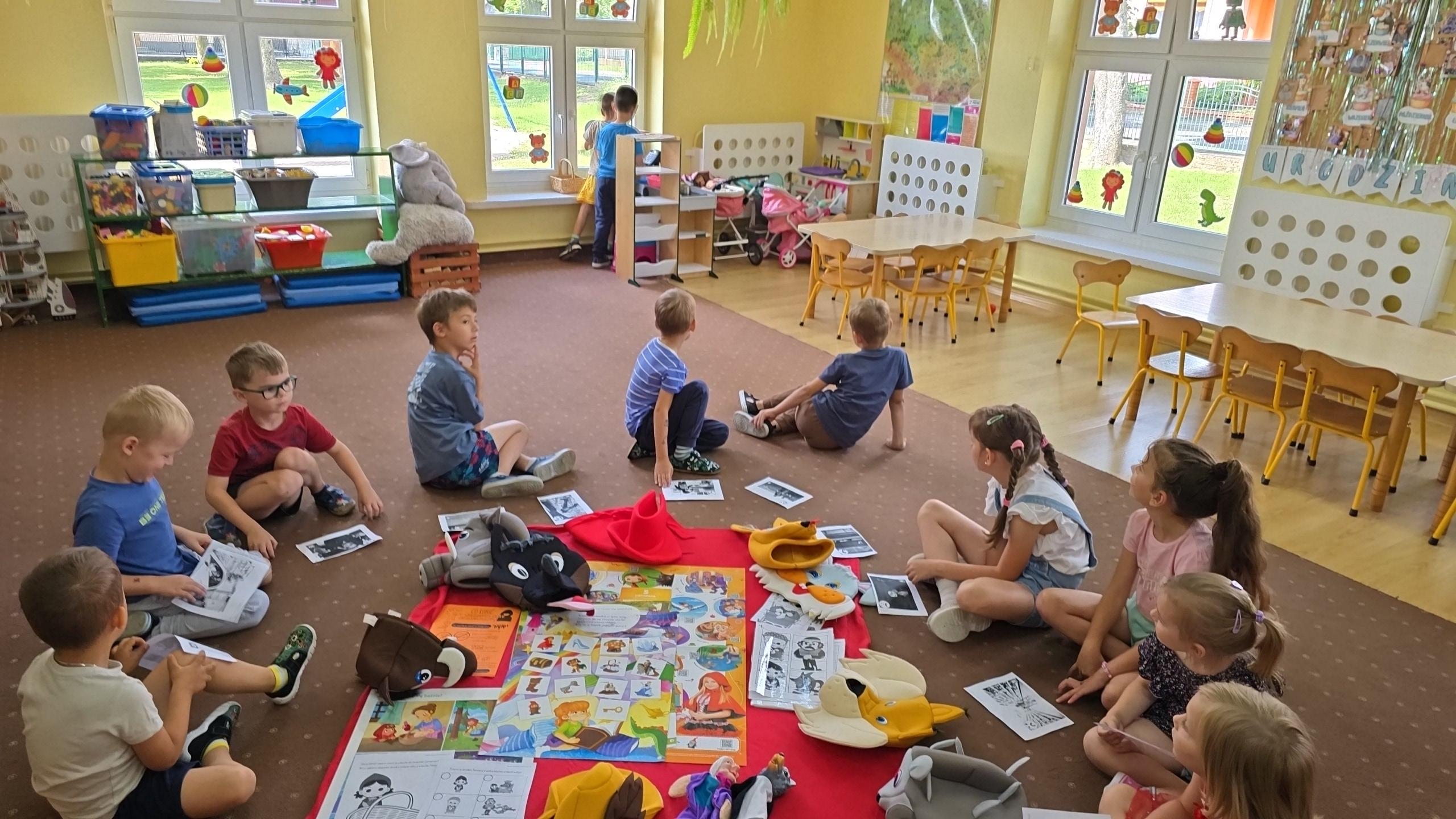 Odtworzono różne scenki w celu utrwalenia zasad zachowania się w kontakcie z obcymi i gdzie w razie potrzeby szukać pomocy. Dzieci poznały zasady, co robić, gdy czują się zagrożone. To są bardzo ważne zasady, zwłaszcza w trakcie wakacji, kiedy dzieci podróżują.
