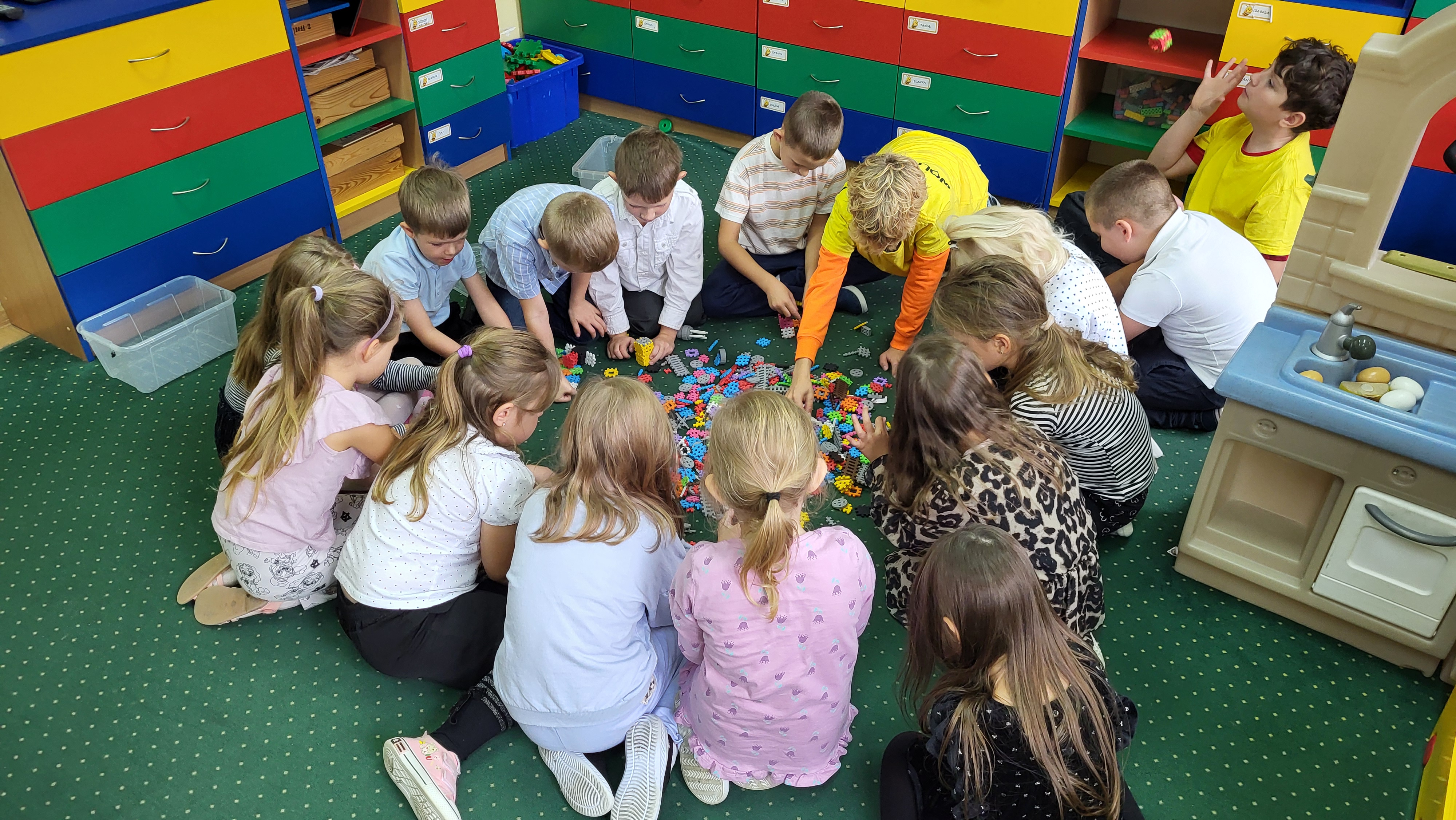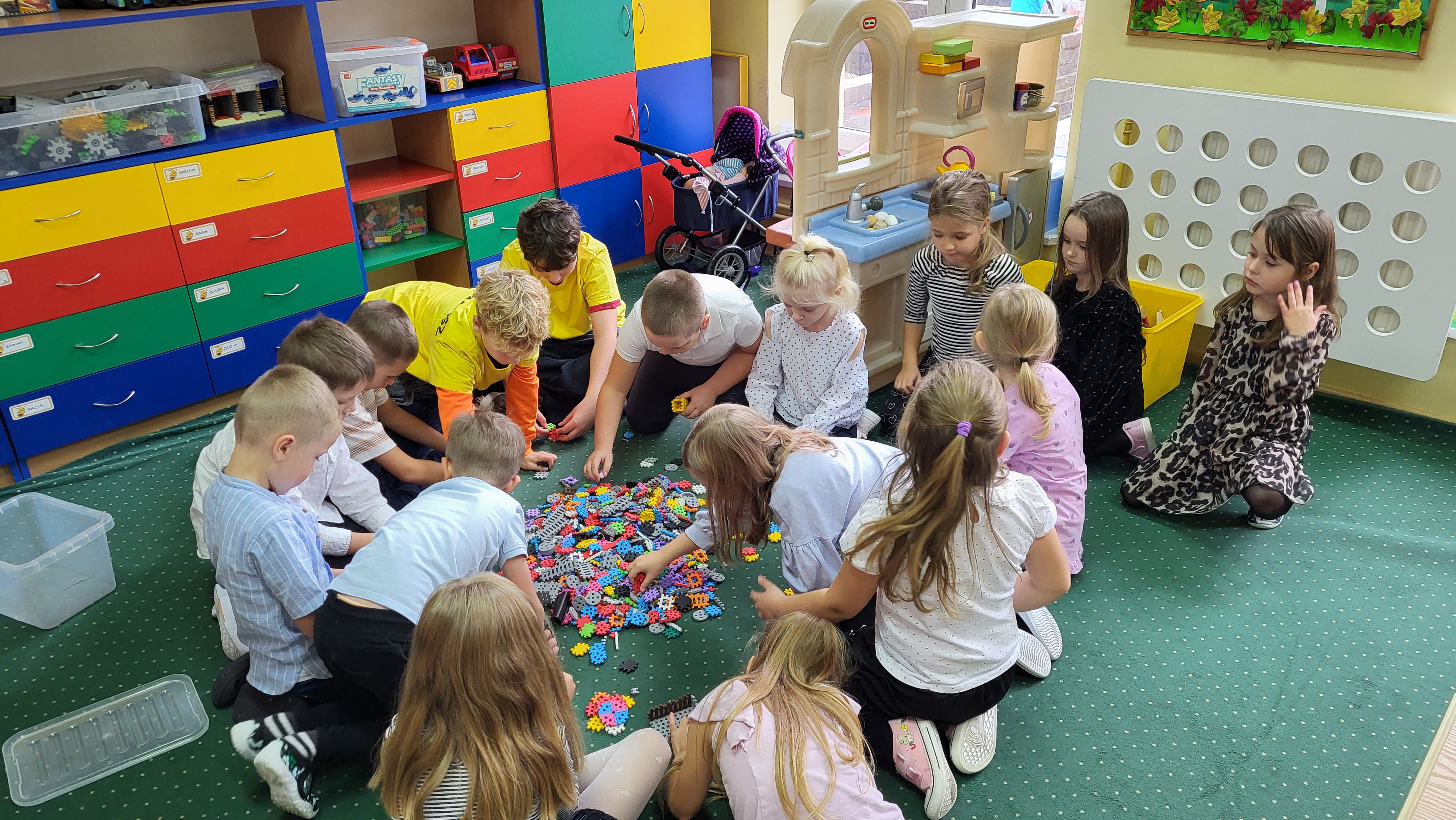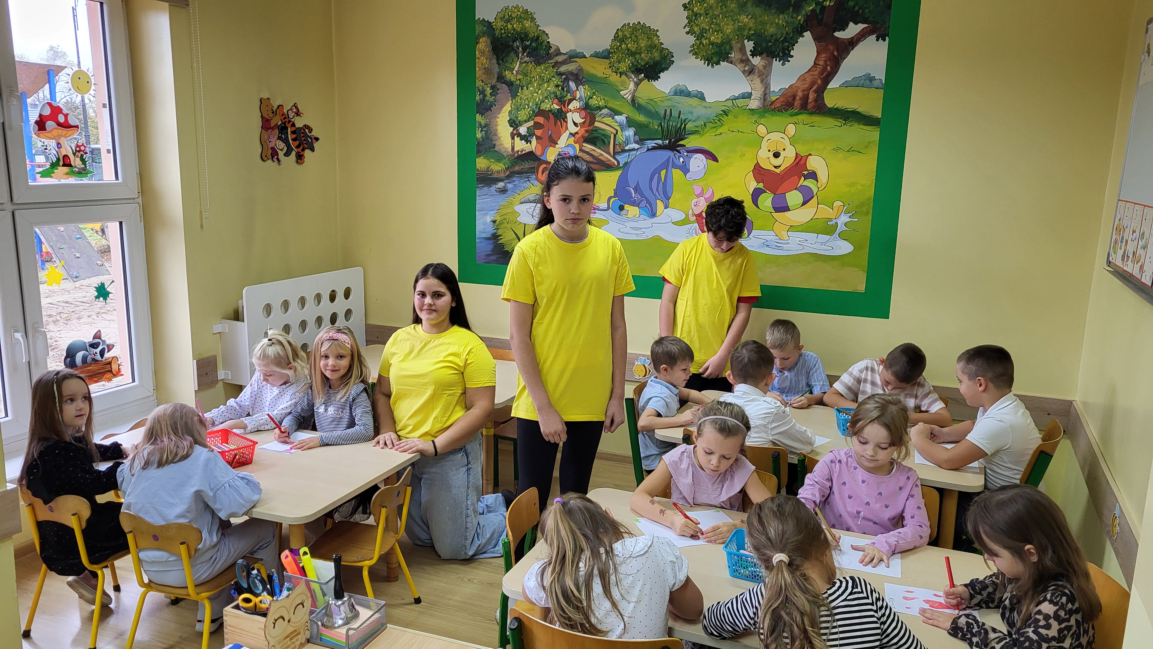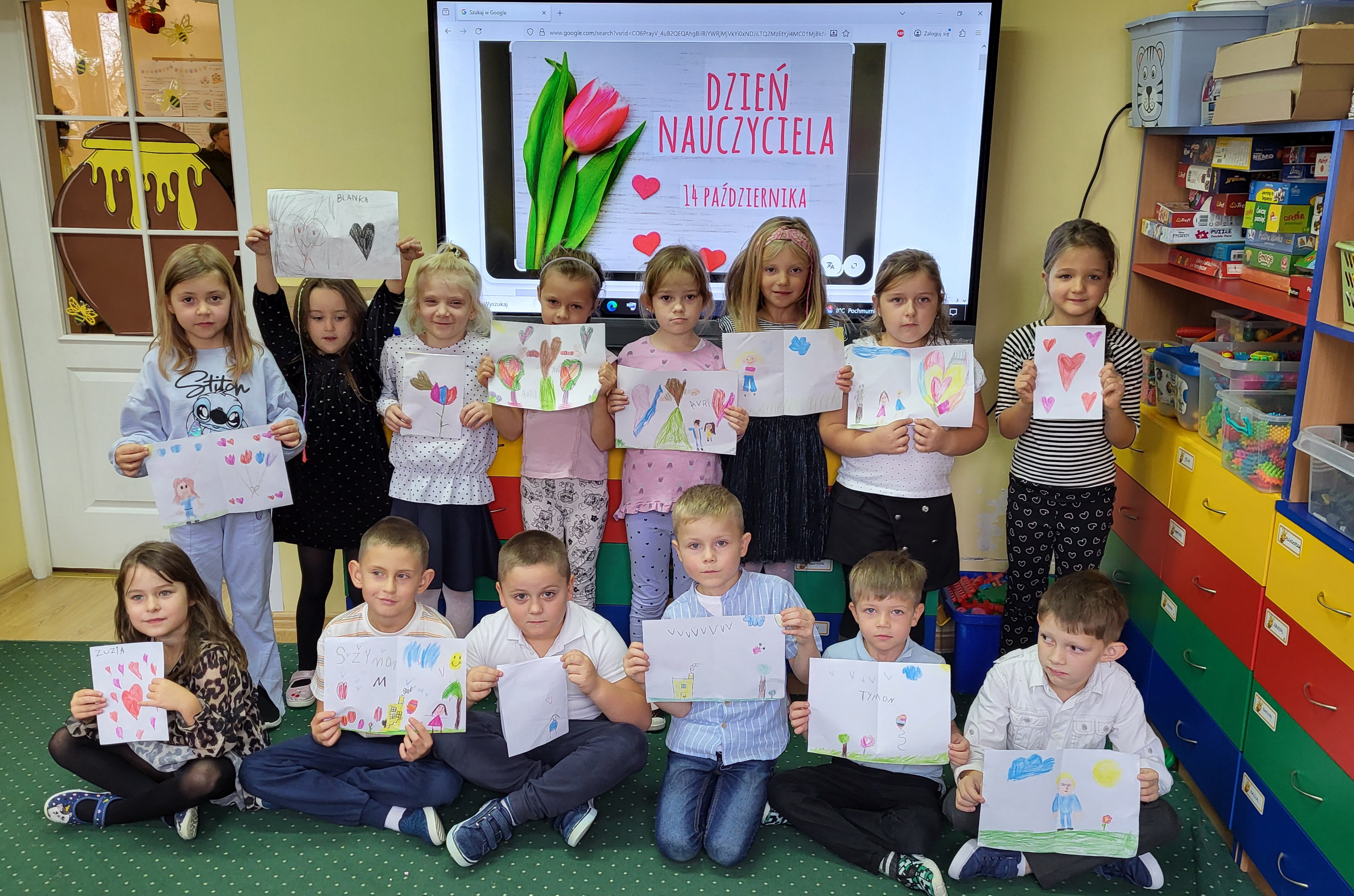 Z okazji Dnia Nauczyciela dzieci chciały podziękować swoim ukochanym paniom i pracownikom przedszkola za trud włożony w ich wychowanie. Były życzenia, upominki od serca, wykonane własnoręcznie. W tym dniu, odwiedzili nasze przedszkole wolontariusze ze Szkoły Podstawowej w Przedczu, którzy np zatemperowali kredki, poukładali z dziećmi klocki czy też pomogli nakryć do obiadu.