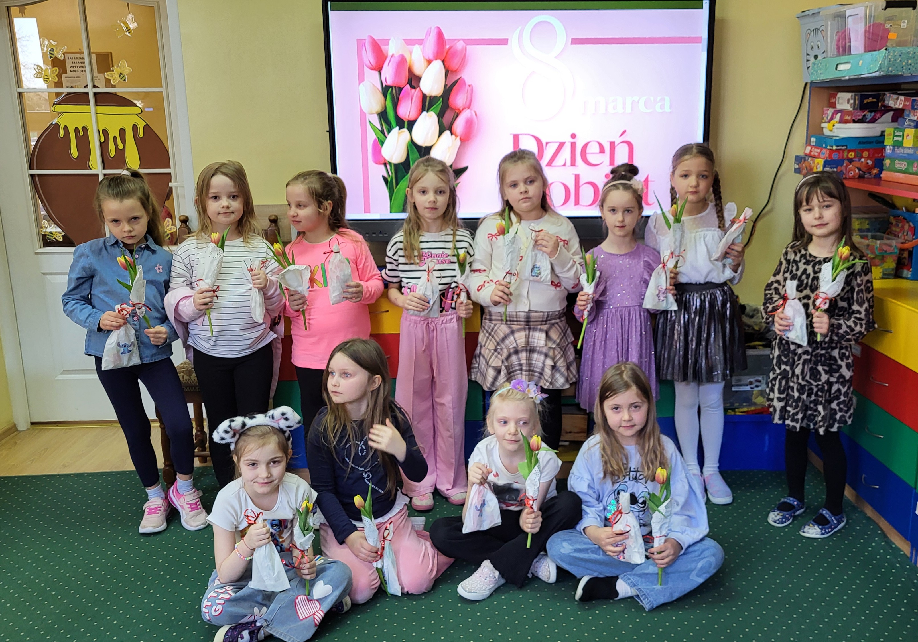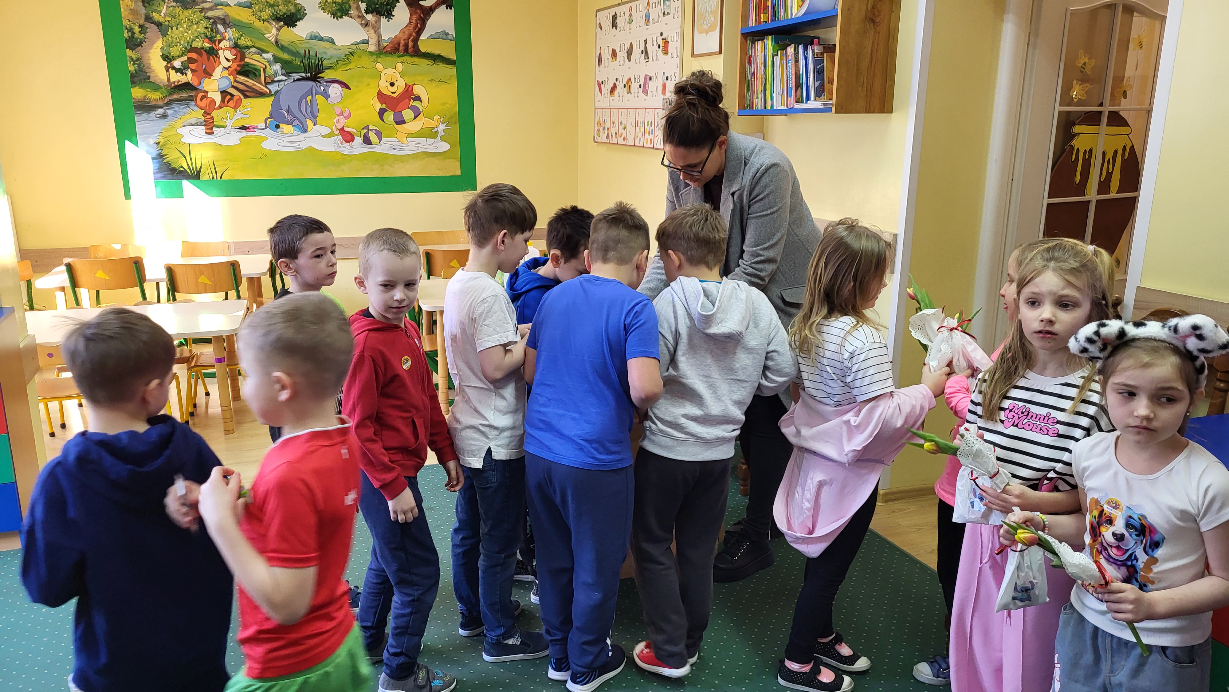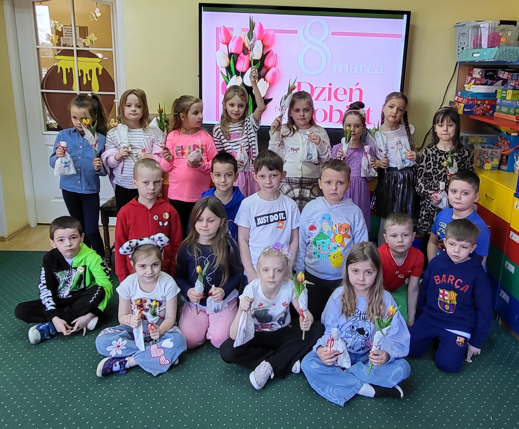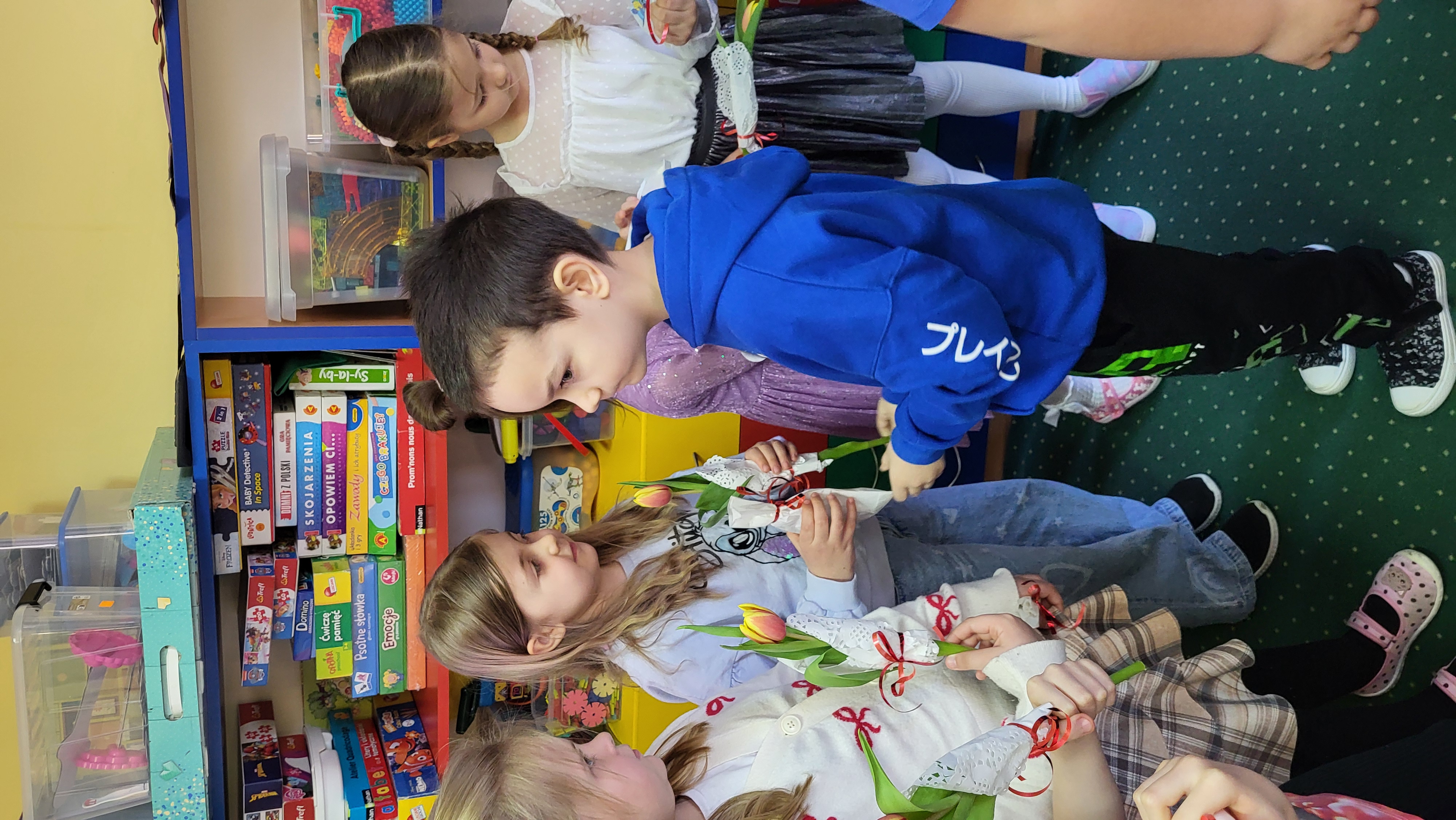 Święto Kobiet obchodzimy symbolicznie już w przedszkolu. Chłopcy wręczyli dziewczynkom piękne kwiaty i drobne upominki składając przy tym serdeczne życzenia. Nie zapomnieli również o wszystkich paniach pracujących w przedszkolu.
