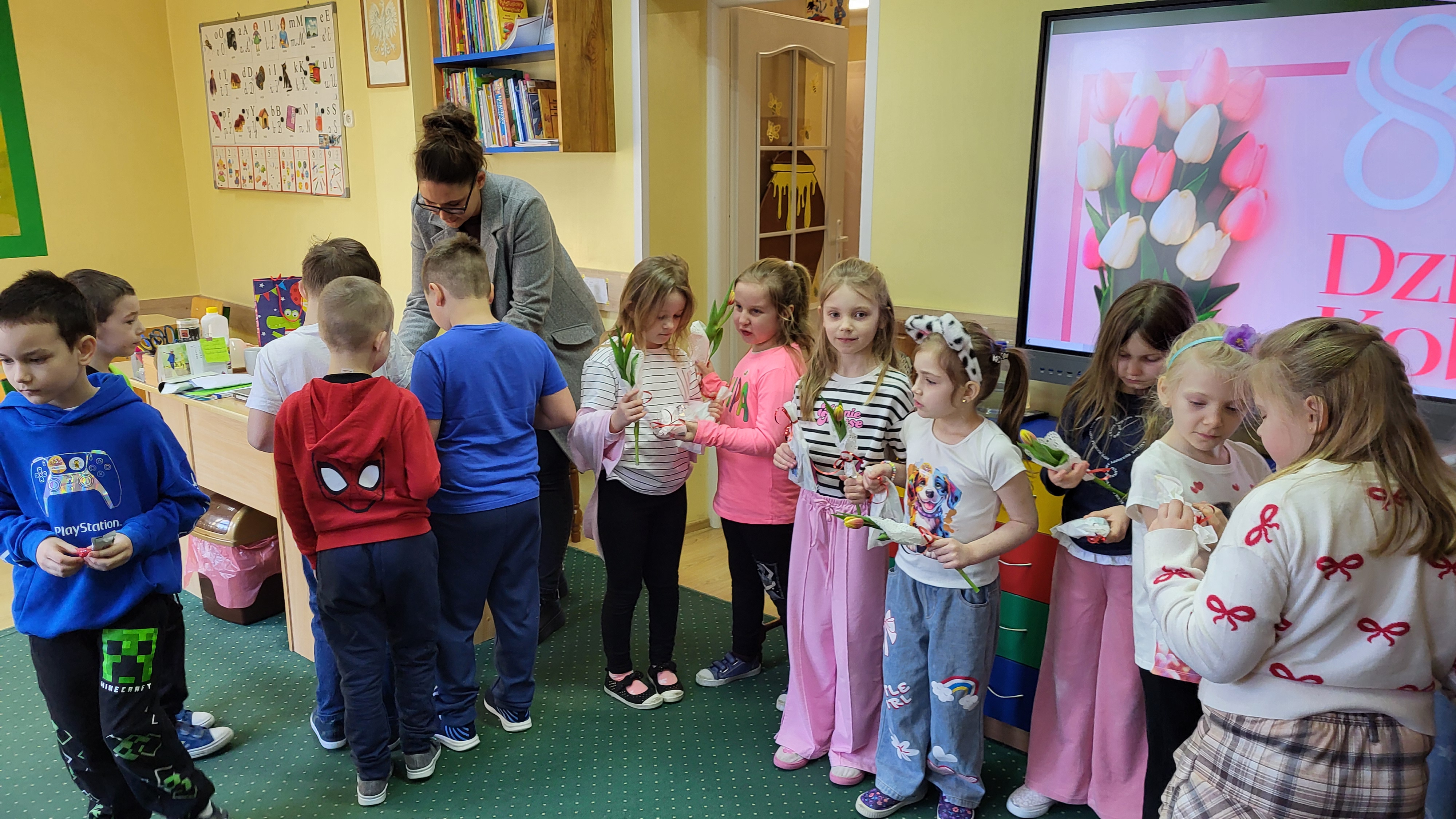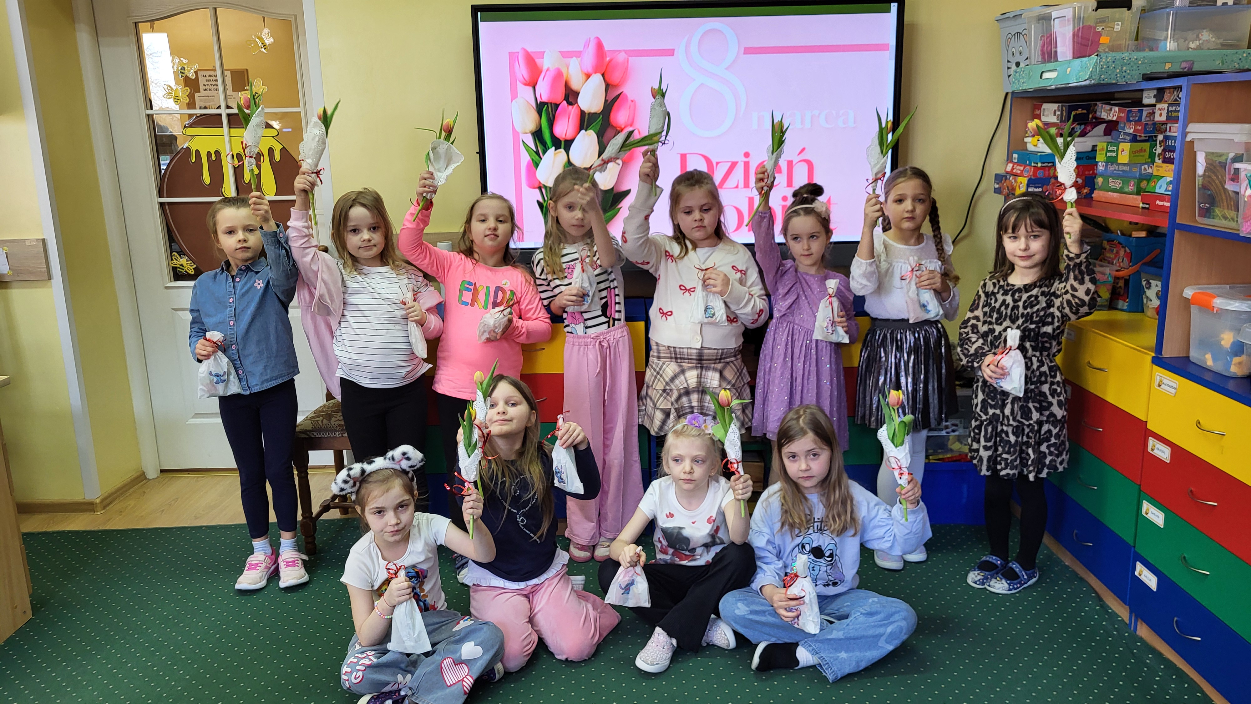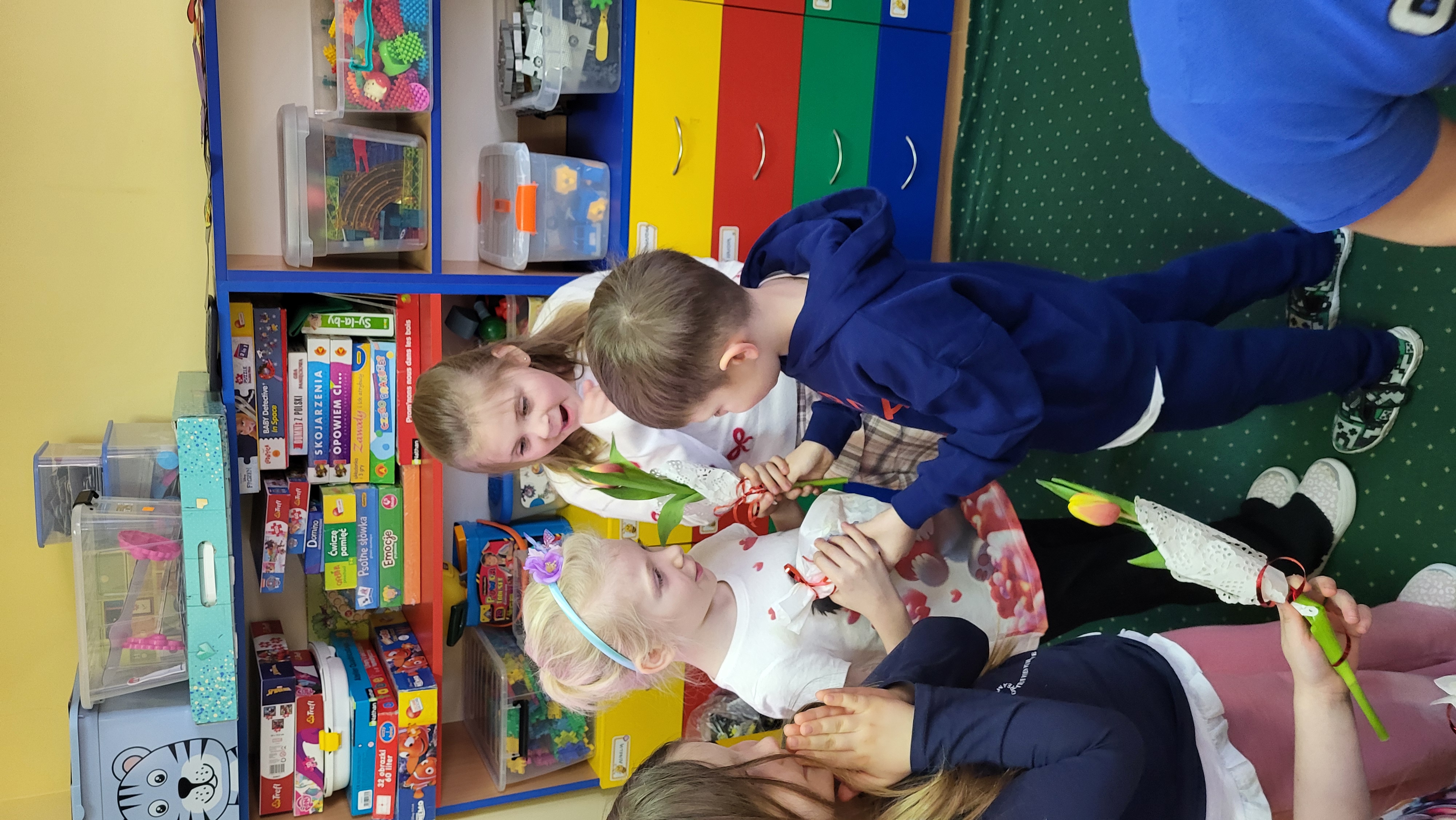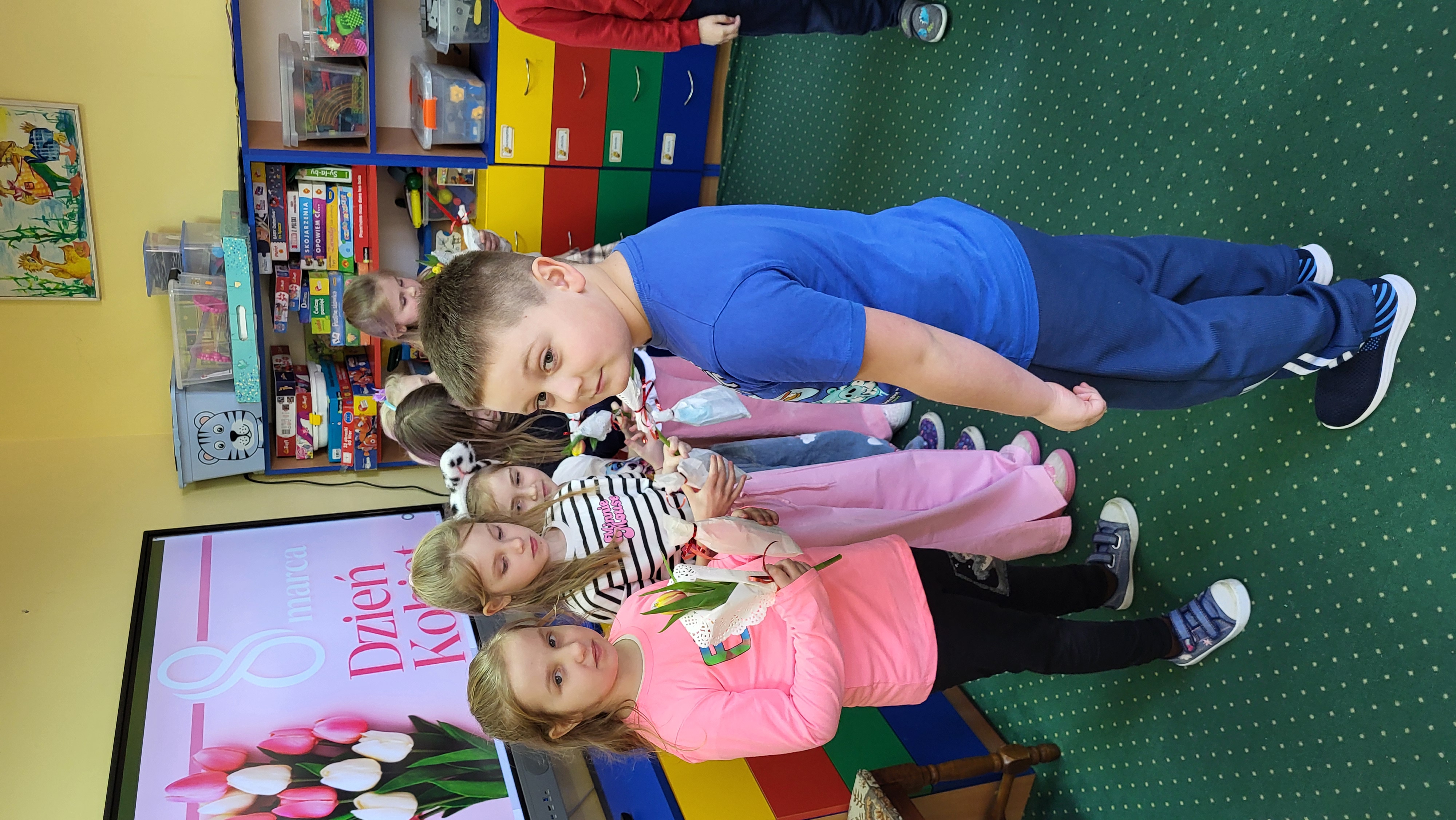 Święto Kobiet obchodzimy symbolicznie już w przedszkolu. Chłopcy wręczyli dziewczynkom piękne kwiaty i drobne upominki składając przy tym serdeczne życzenia. Nie zapomnieli również o wszystkich paniach pracujących w przedszkolu.