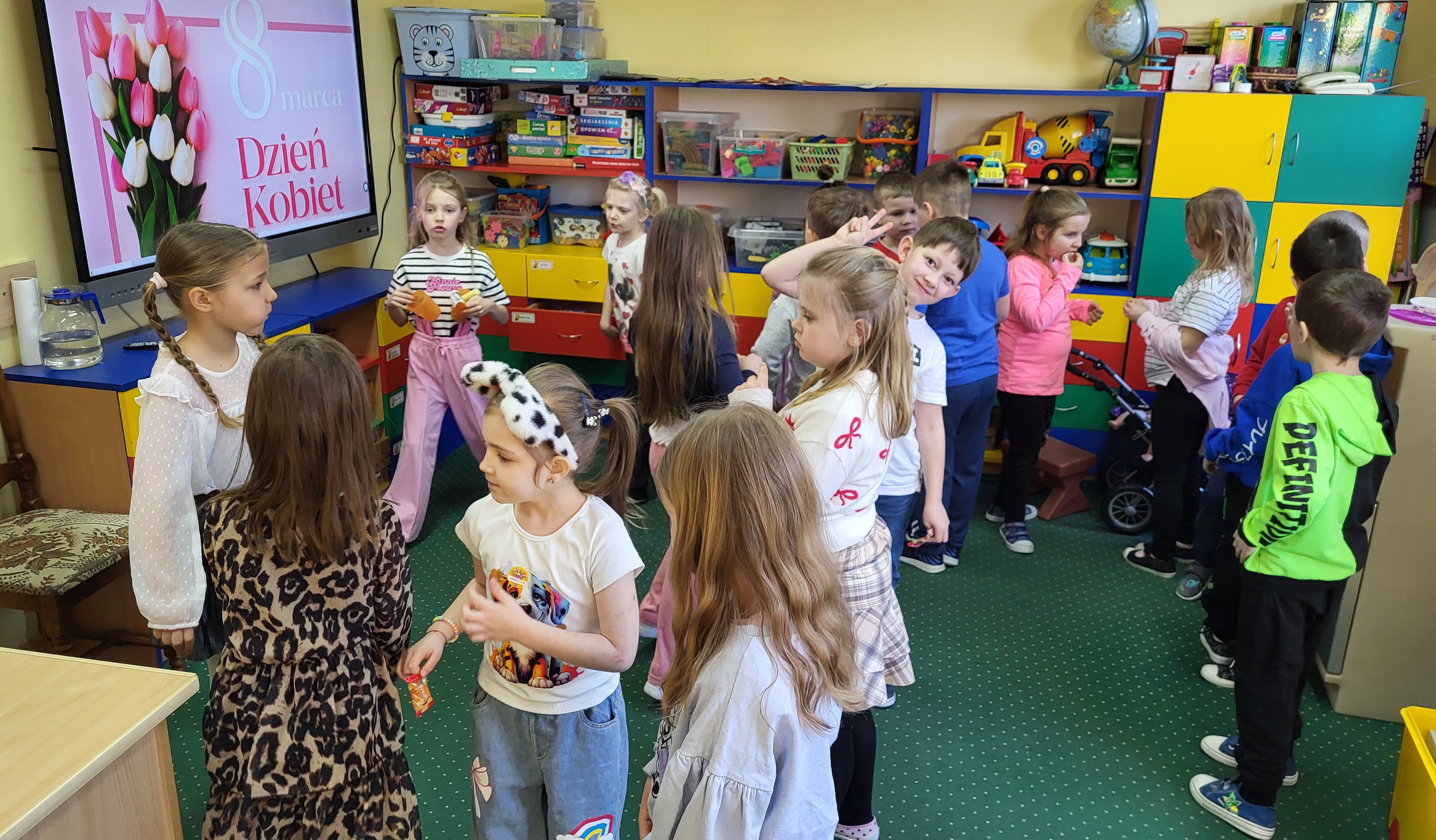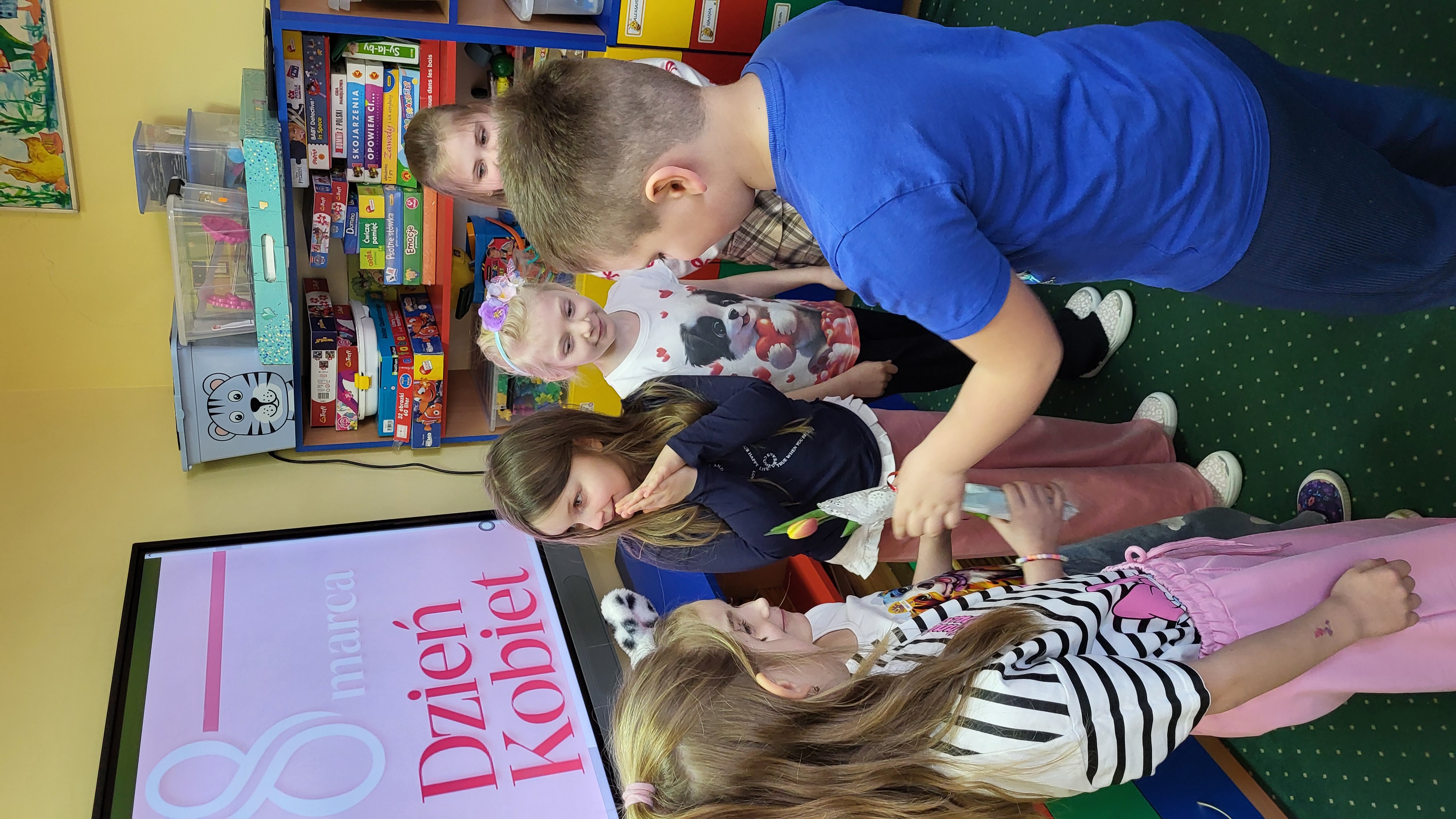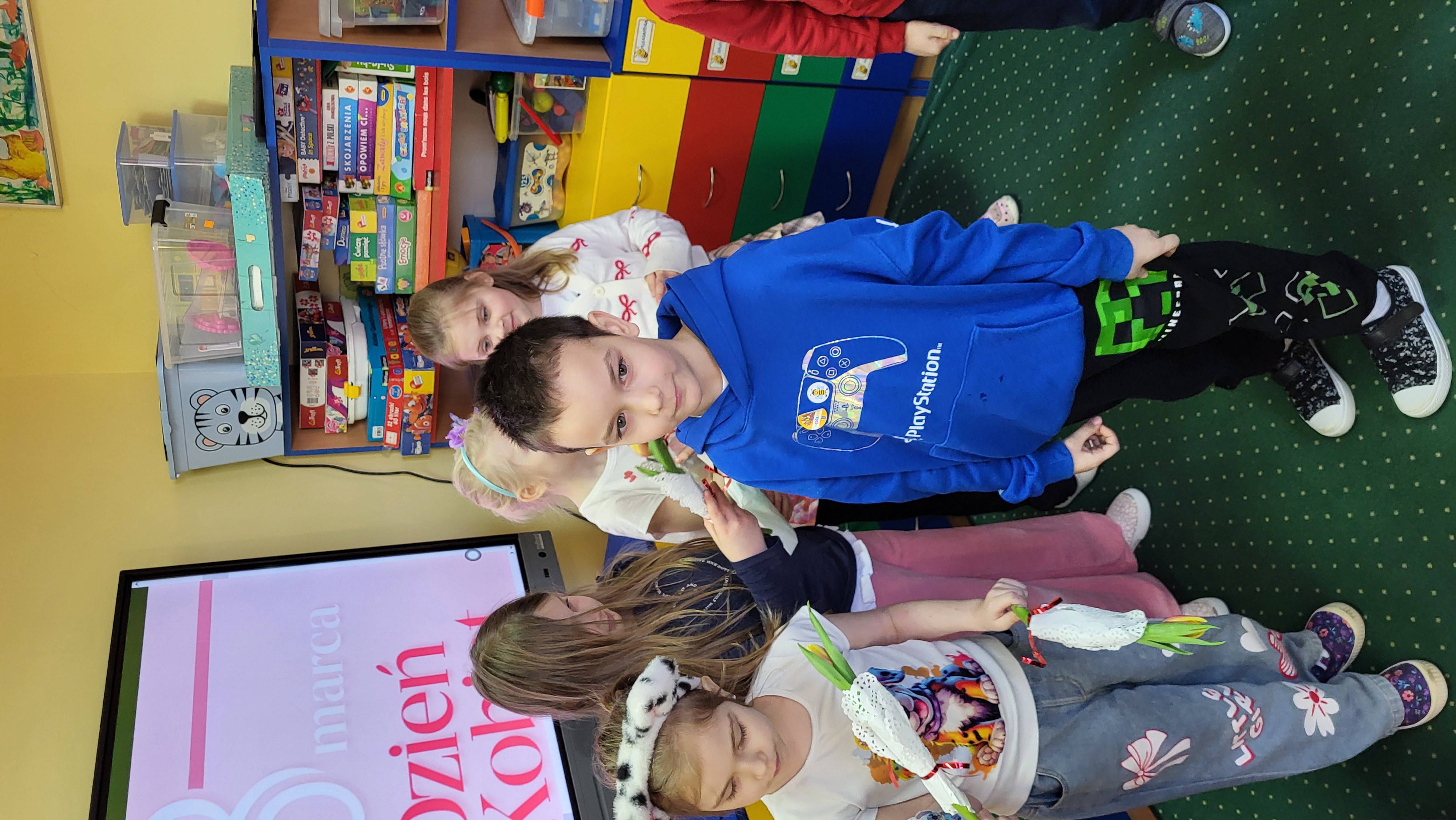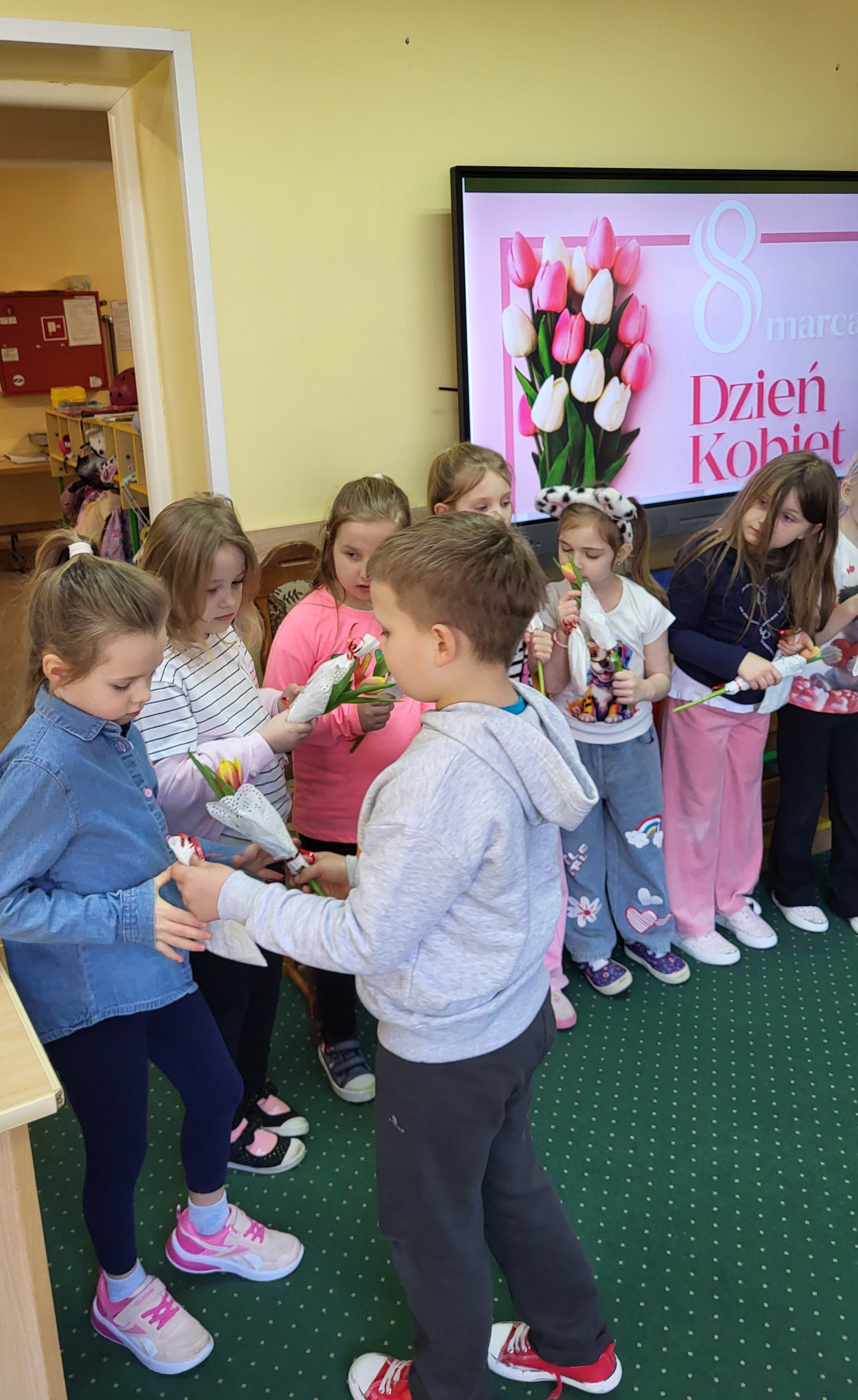 Święto Kobiet obchodzimy symbolicznie już w przedszkolu. Chłopcy wręczyli dziewczynkom piękne kwiaty i drobne upominki składając przy tym serdeczne życzenia. Nie zapomnieli również o wszystkich paniach pracujących w przedszkolu.