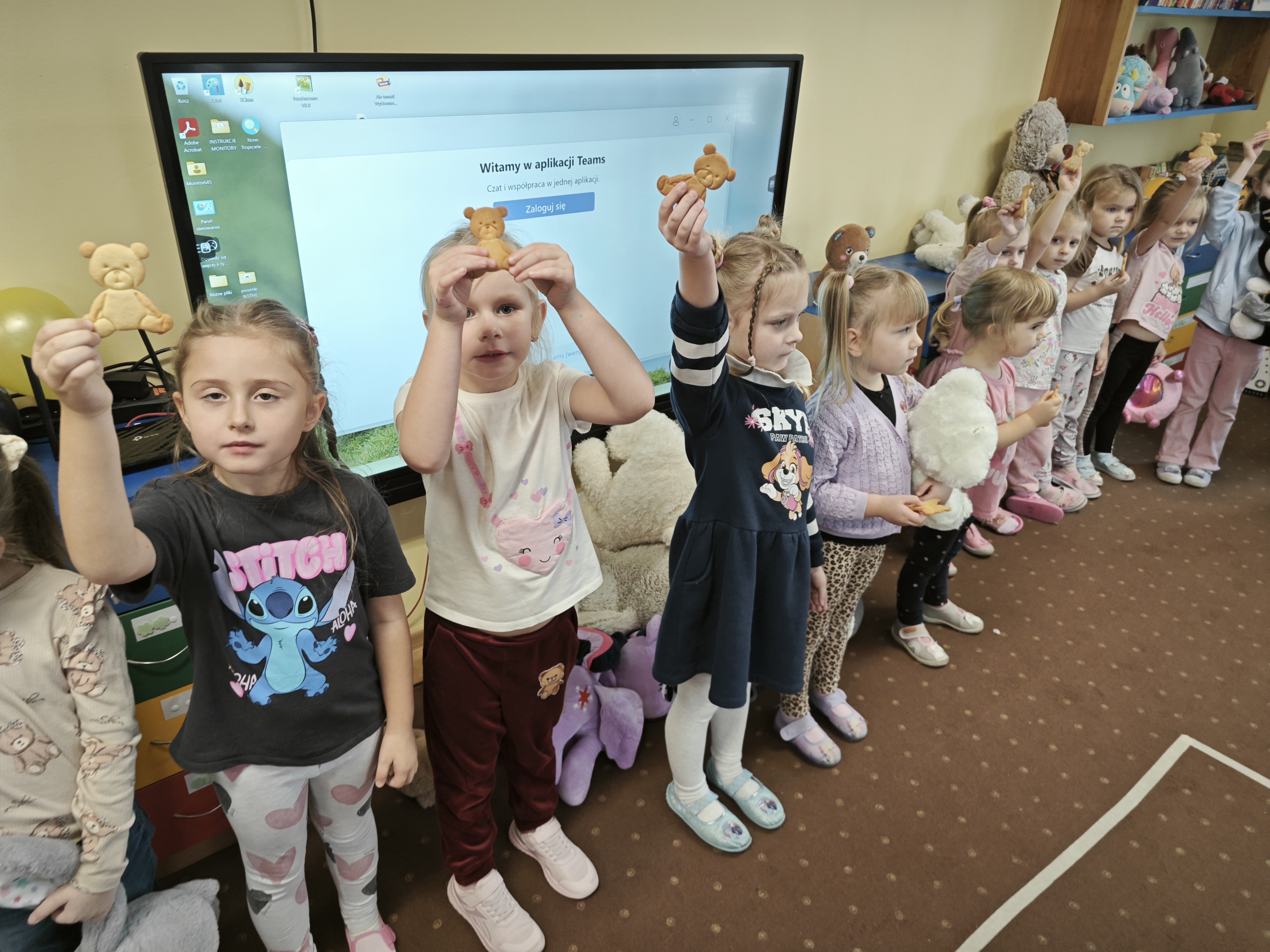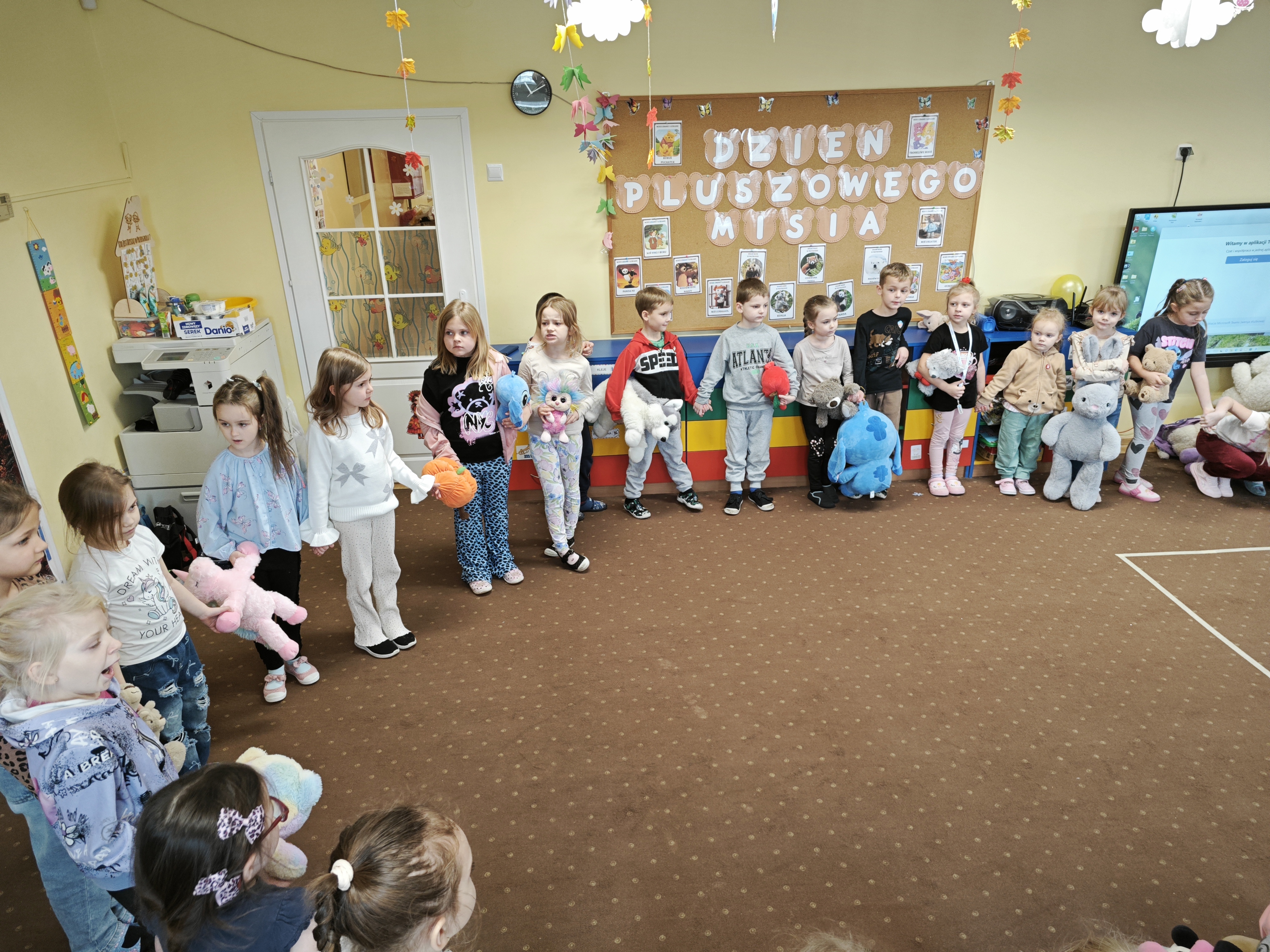 Jak co roku w naszym przedszkolu obchodziliśmy Dzień Pluszowego Misia. Każde dziecko przyniosło swojego pluszowego przyjaciela, żeby towarzyszył Mu w przedszkolnych zabawach. Na koniec zabaw tanecznych wszystkie dzieci zjadły pyszne ciasteczka w kształcie misia za co bardzo dziękujemy pani Oldze Okupskiej.