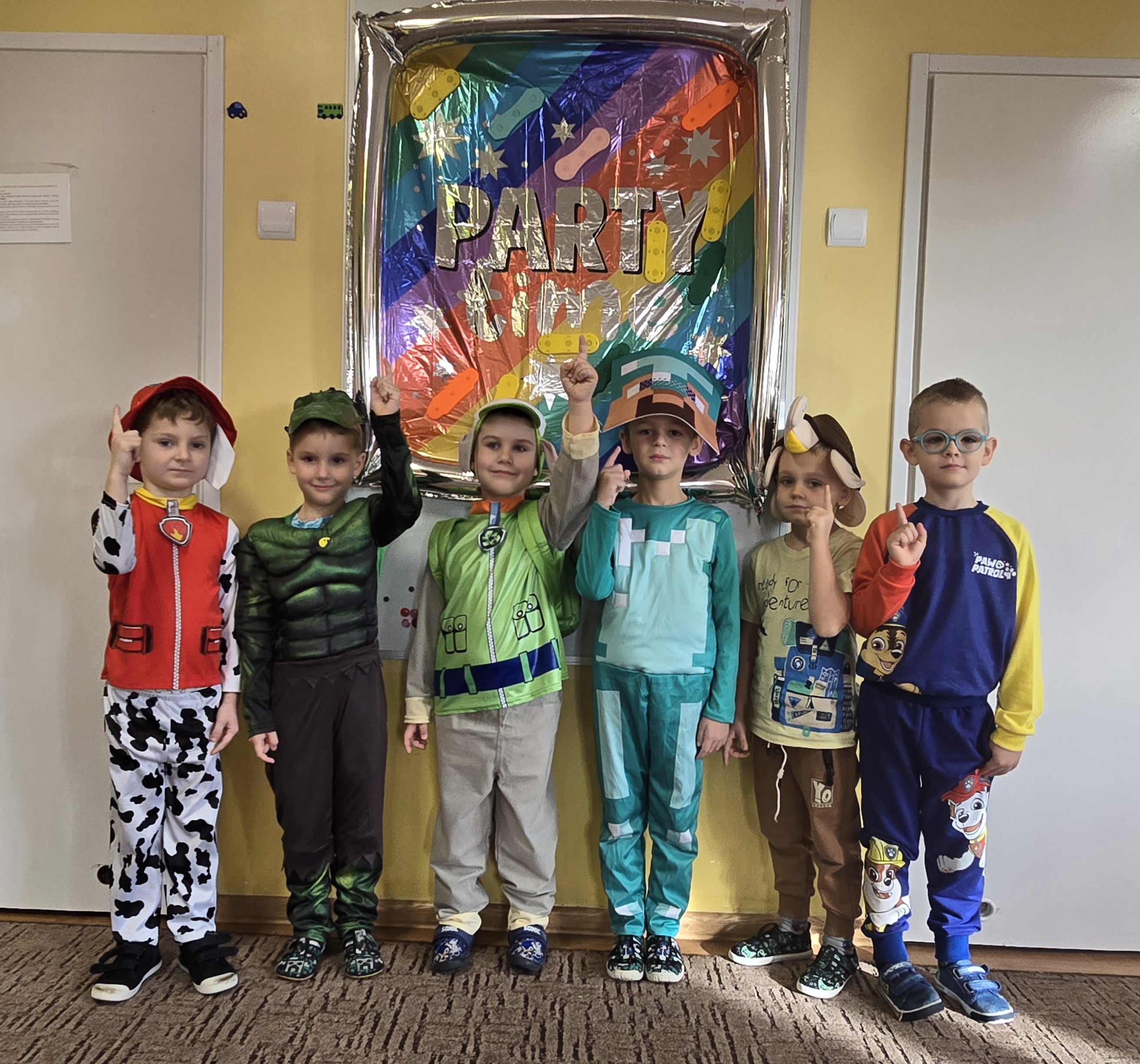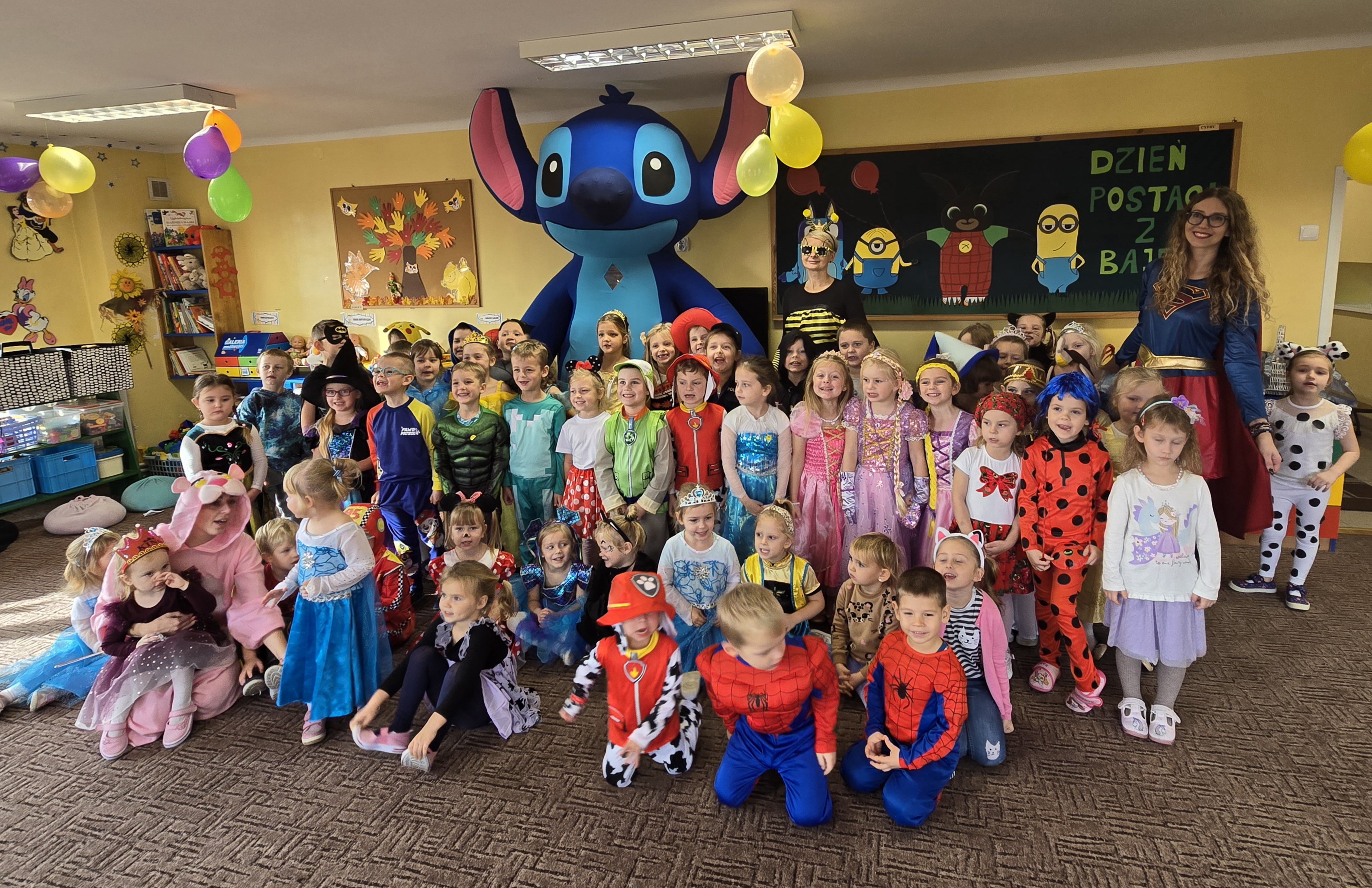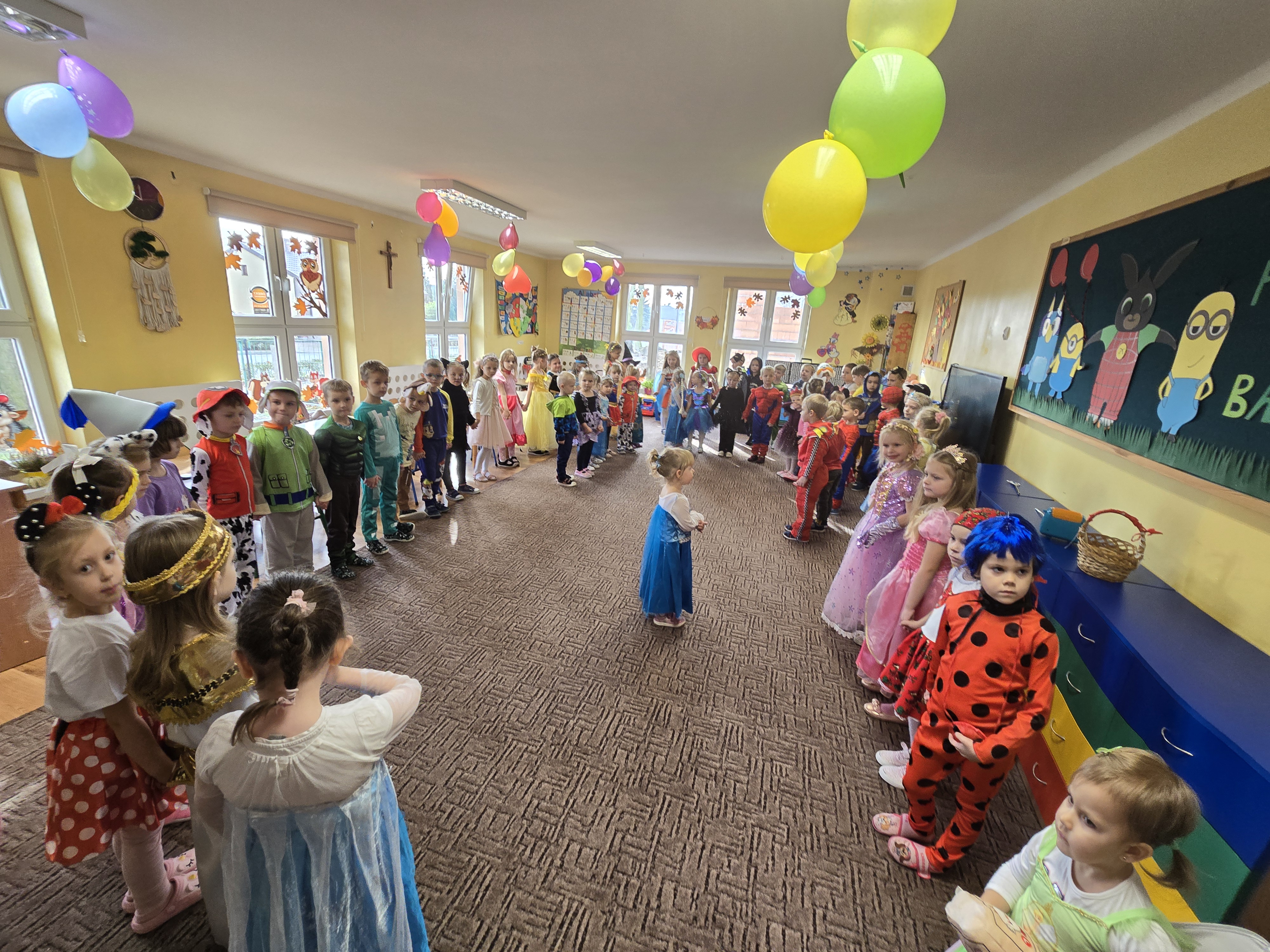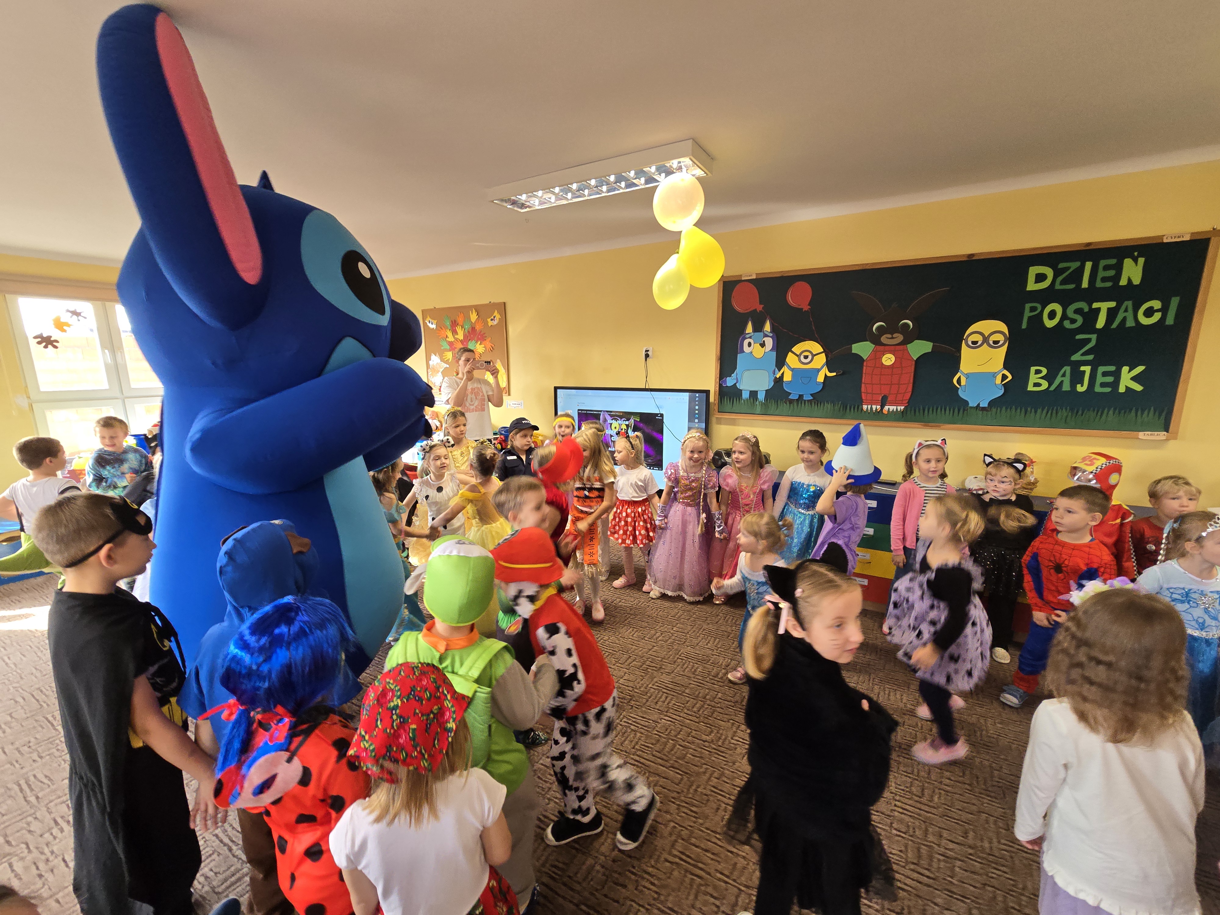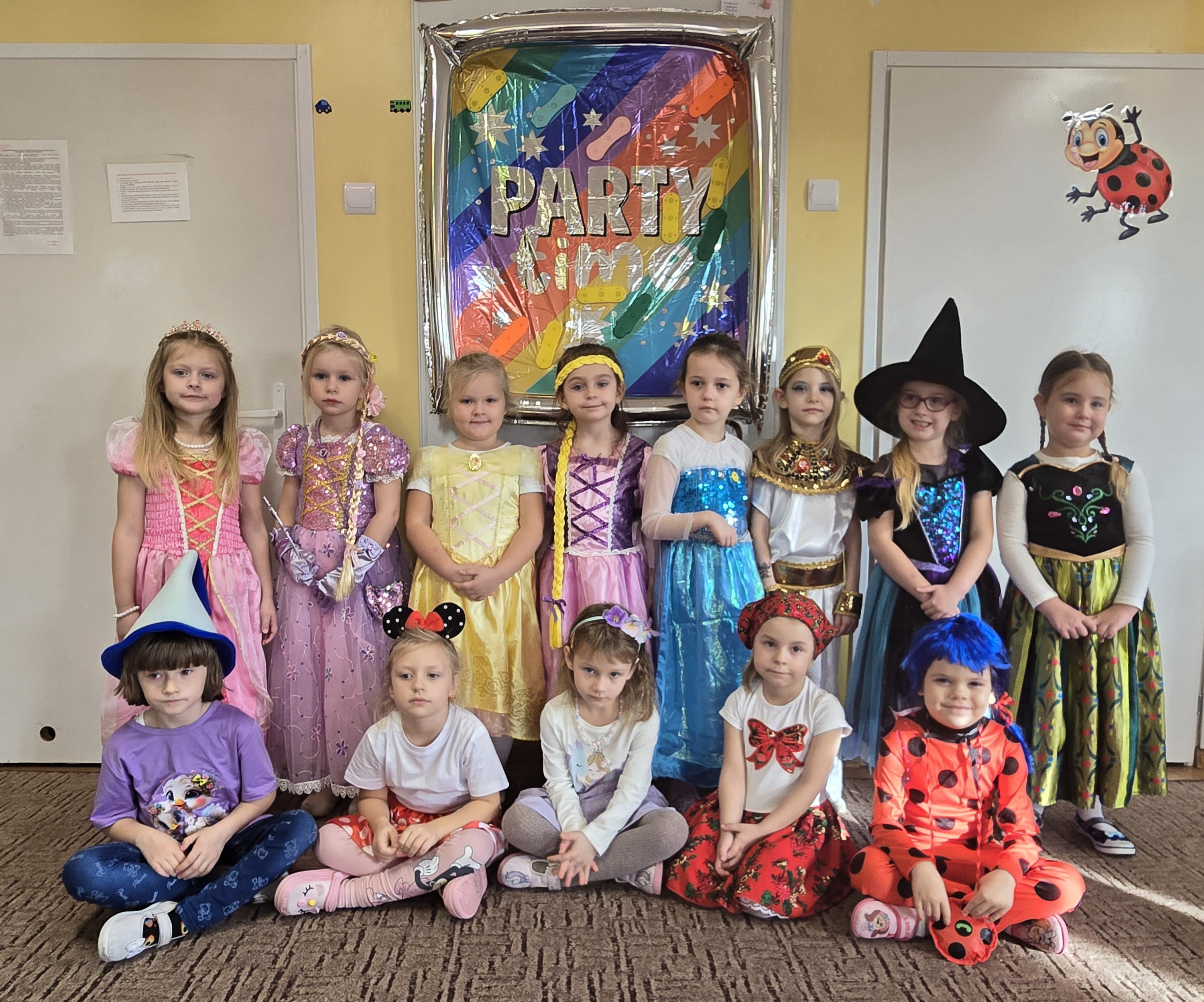 Do przedszkola dzieci przyszły przebrane w piękne bajkowe stroje. Rozwiązywały bajkowe zagadki i wykonywały bajkowe zadania. Były muzyczne zabawy ruchowe oraz prezentacje dziecięcych przebrań. Wykonały prace plastyczne prezentujące ich ulubione postacie z bajek.