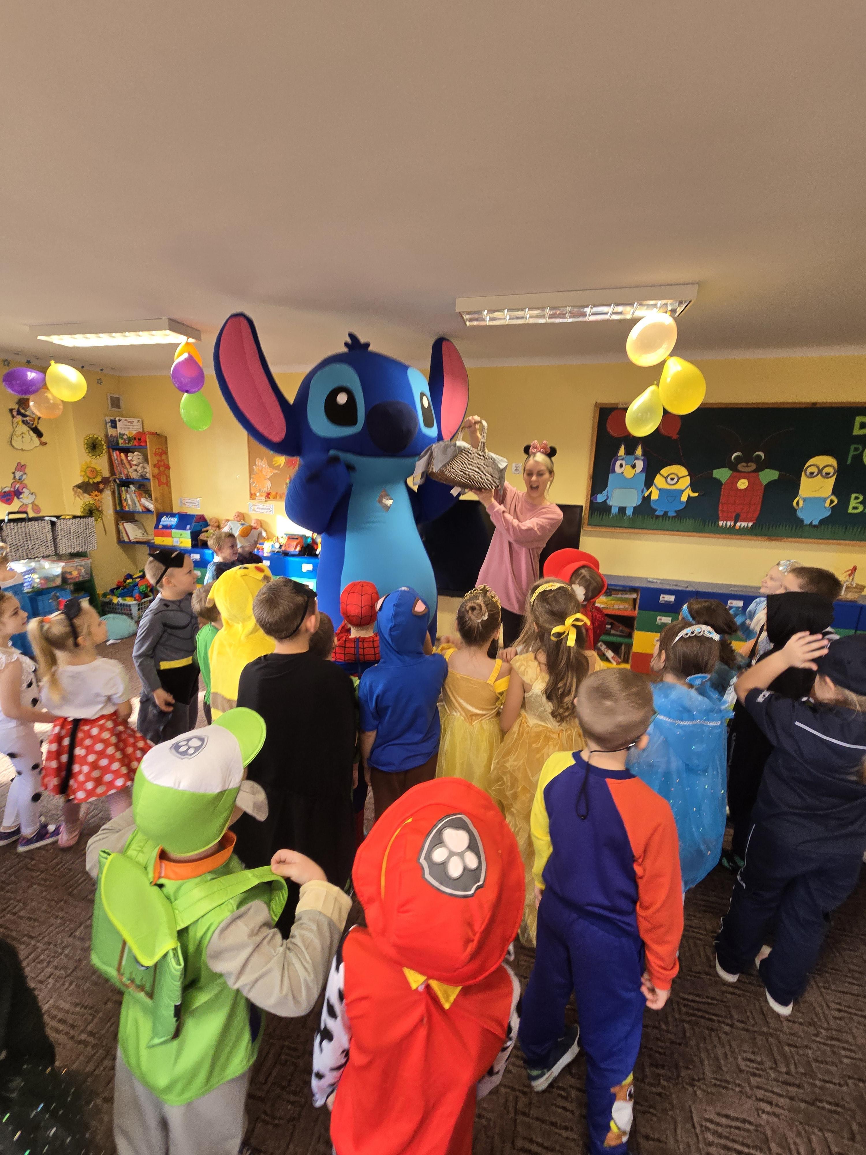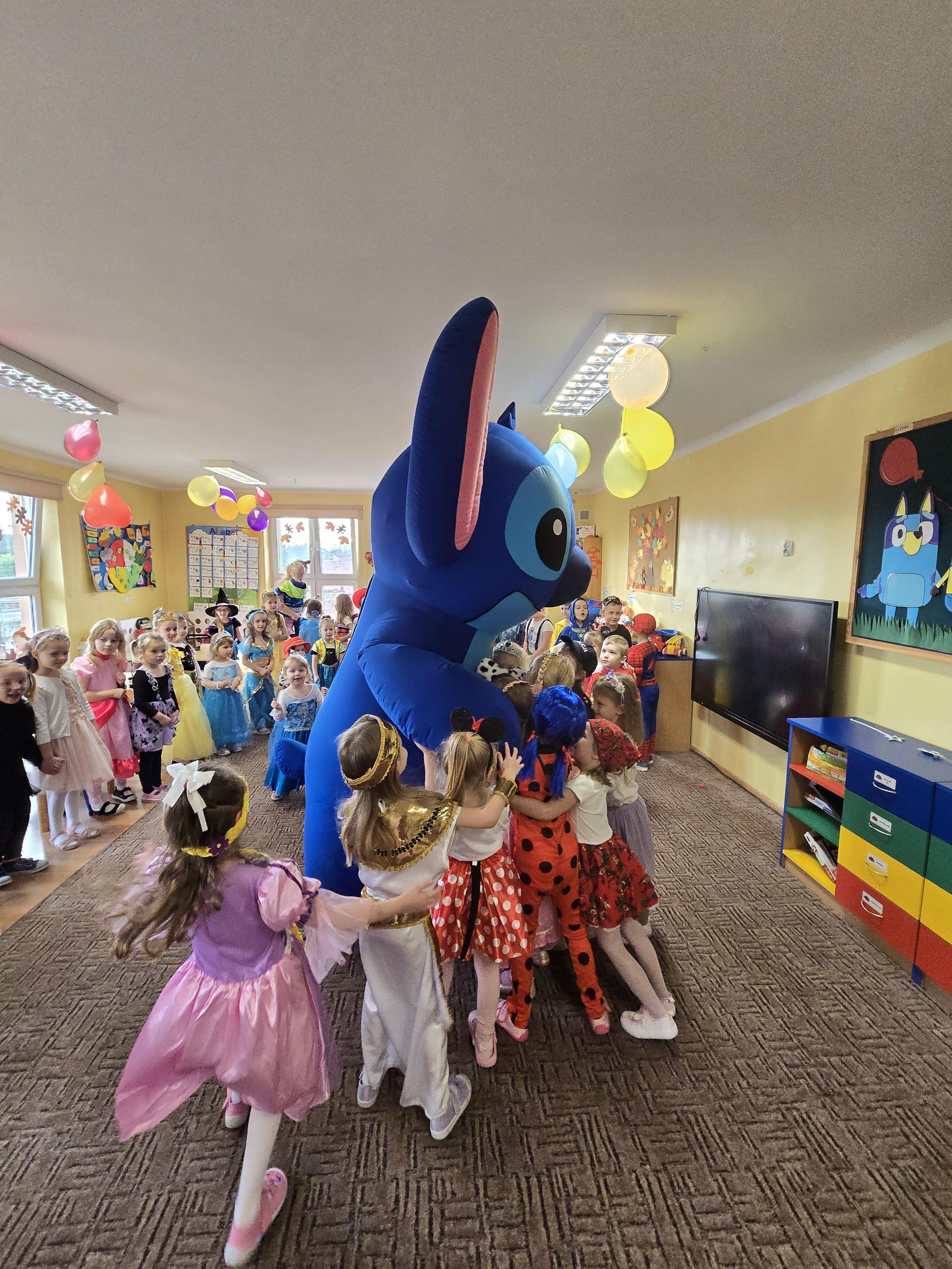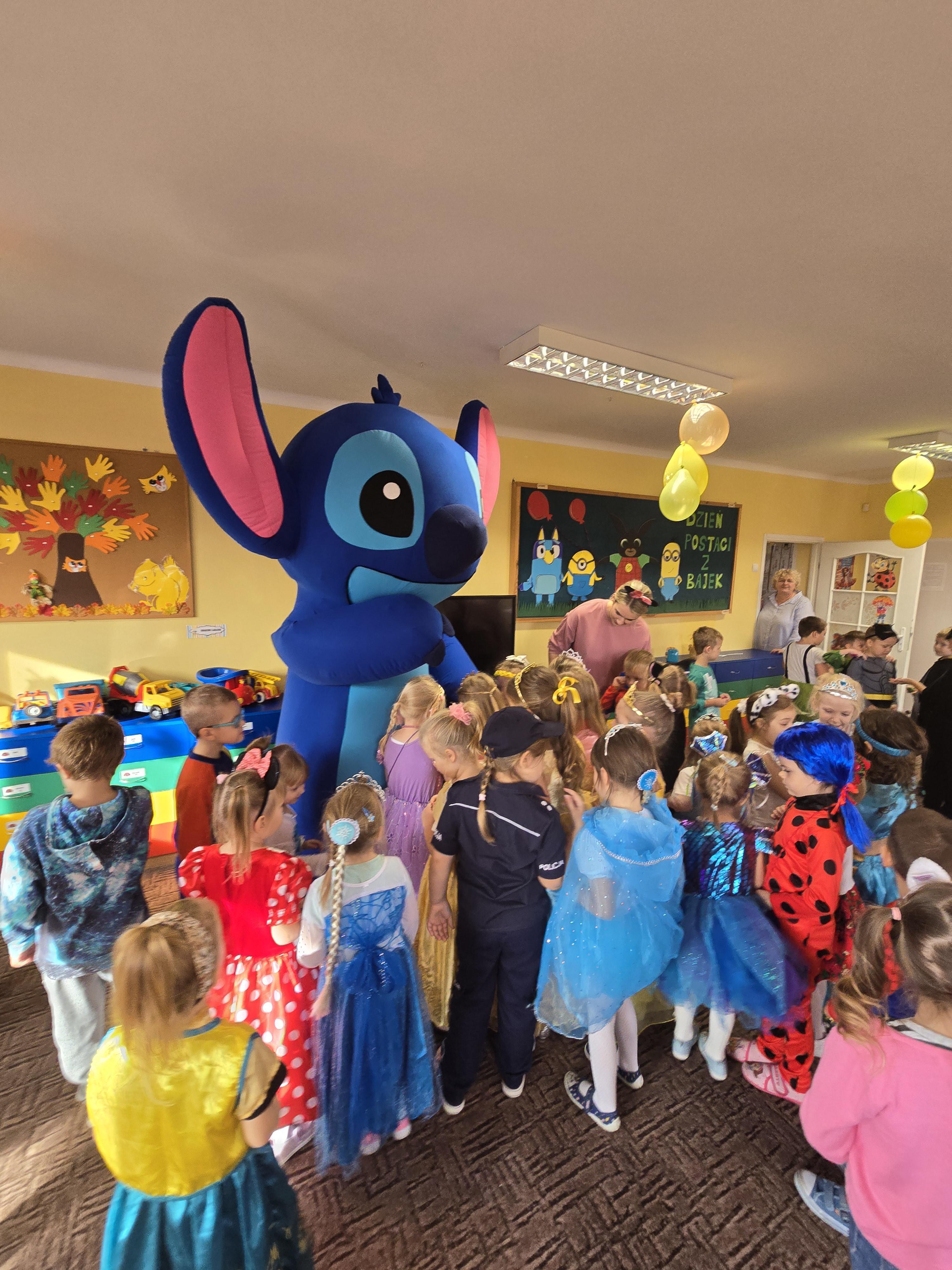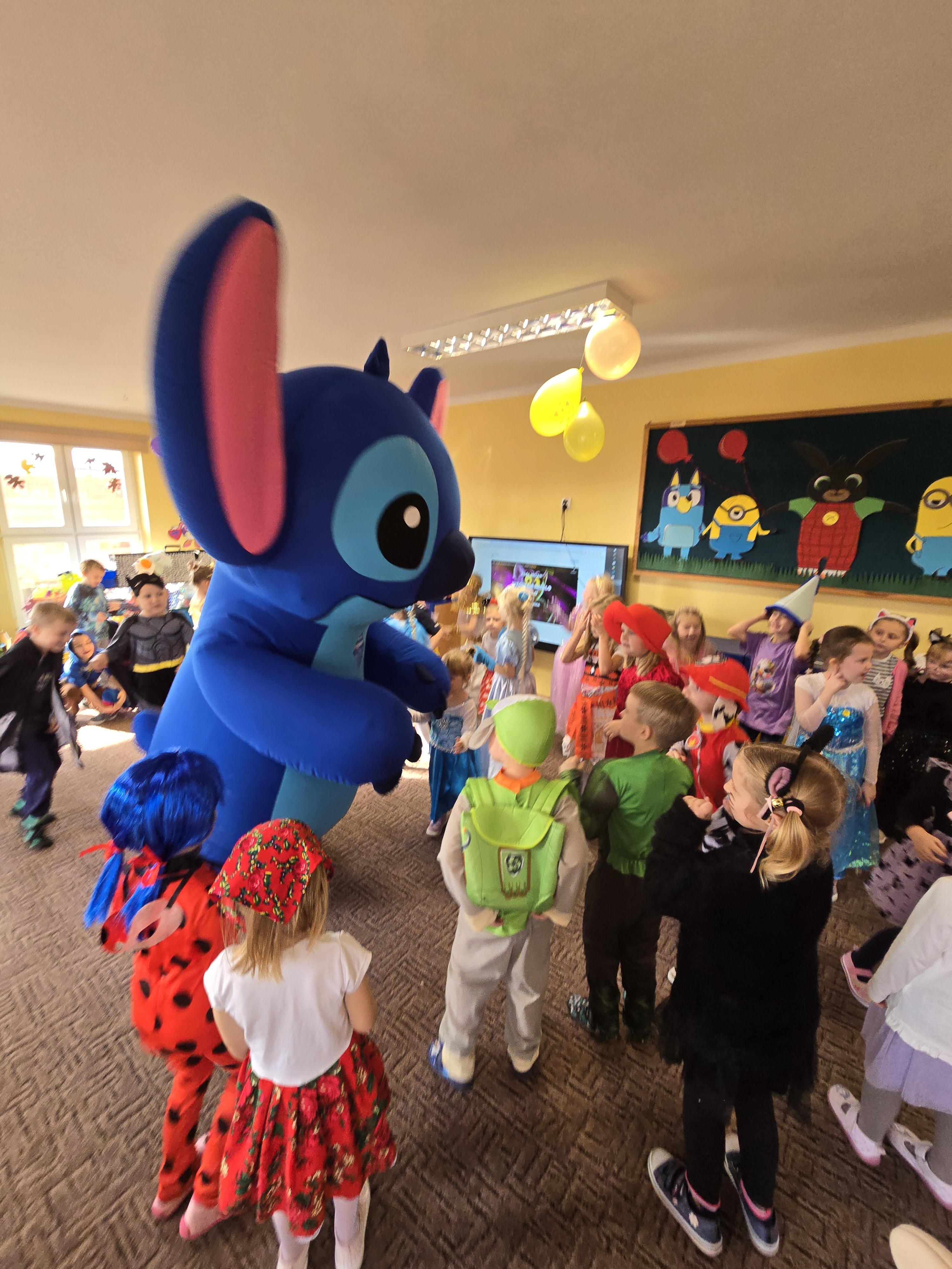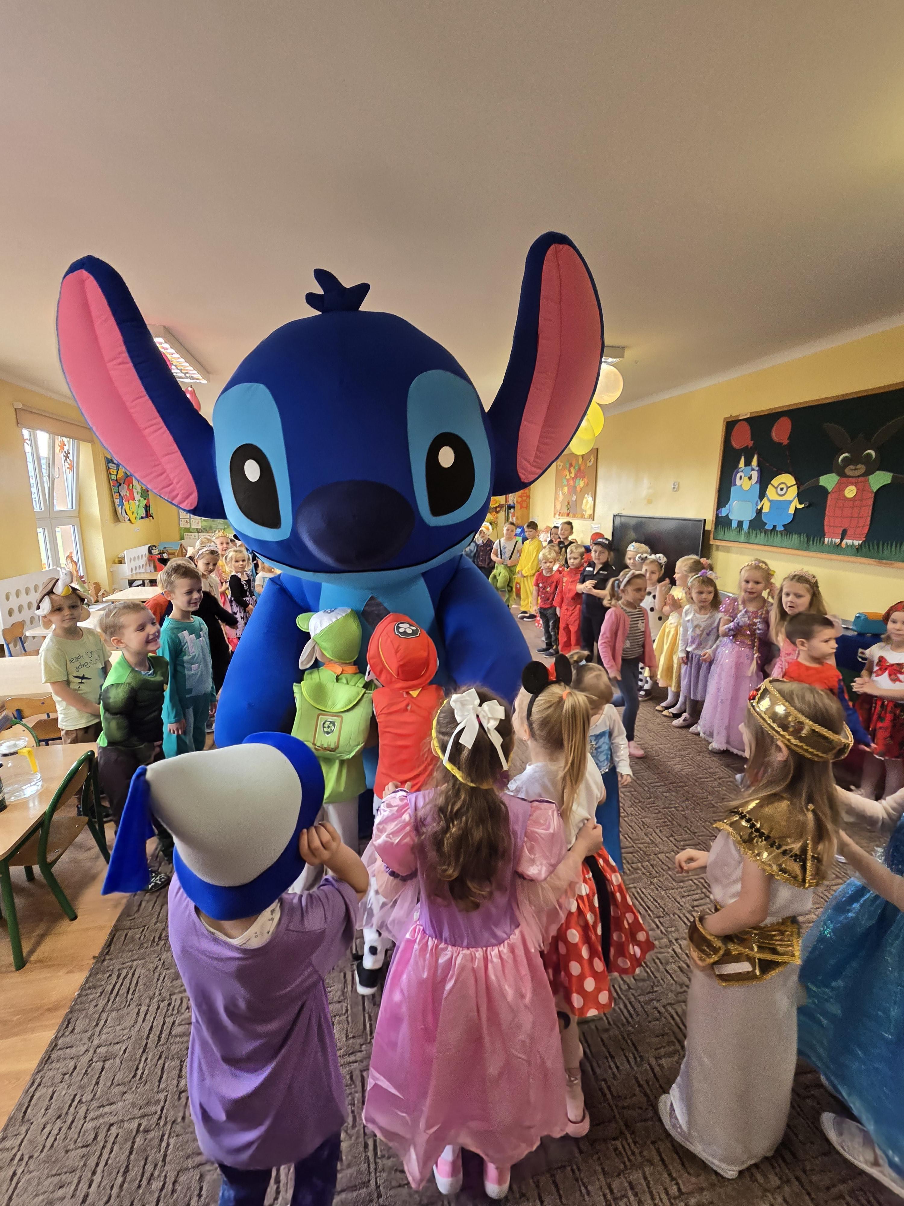 Gościem, który dostarczył dzieciom najwięcej radości był lubiany,olbrzymi Stich. Zabawiał, przytulał i tańczył ze wszystkimi dziećmi. Dziękujemy Radzie Rodziców za cudowną niespodziankę.