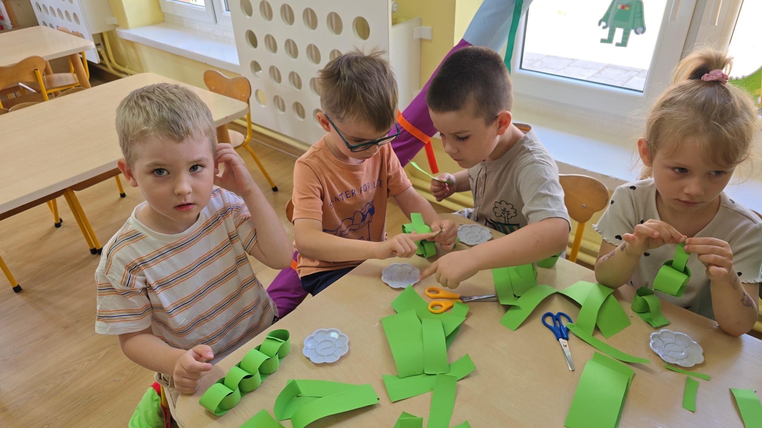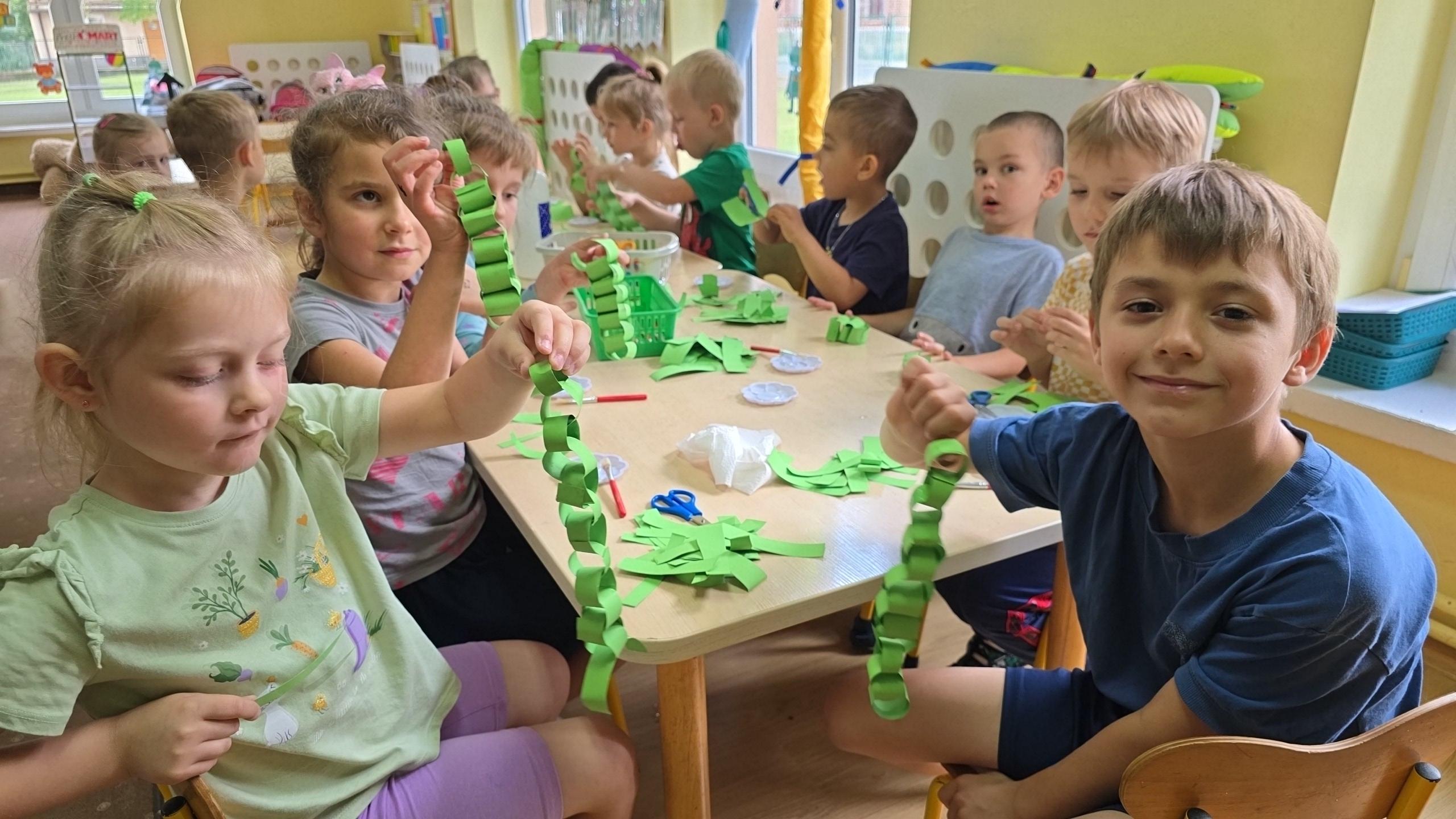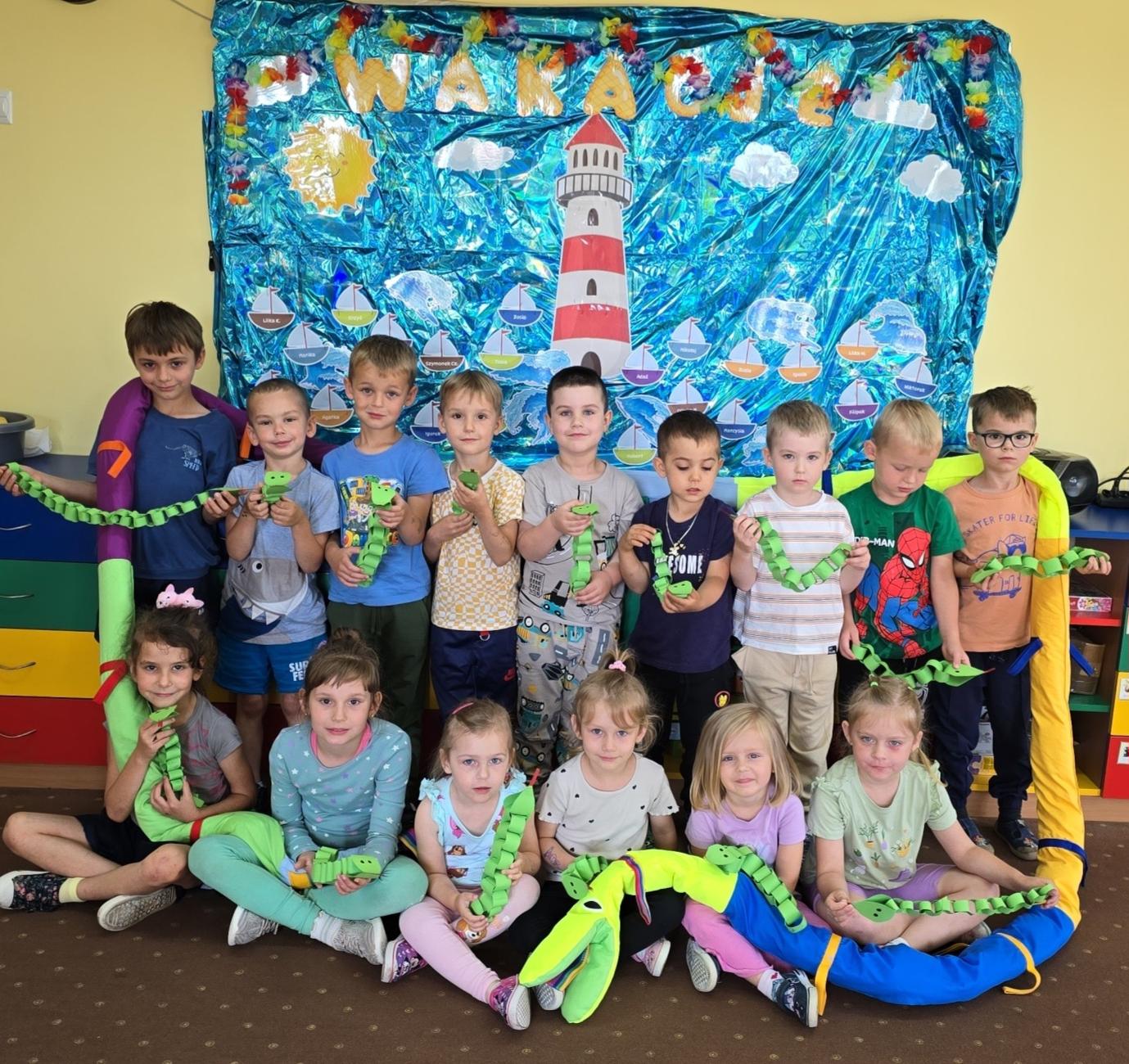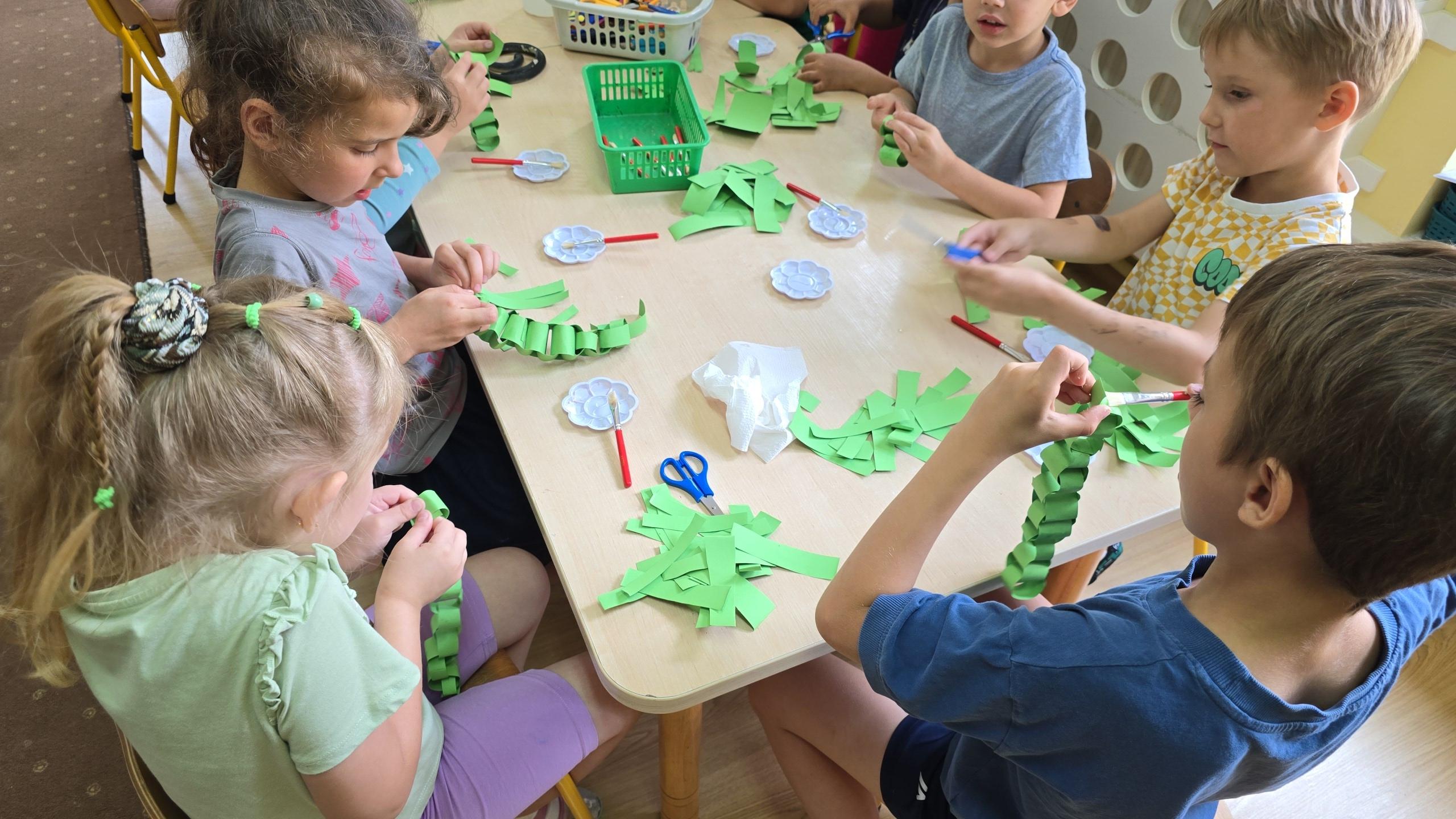 Dzieci z zaciekawieniem wysłuchały bajki edukacyjnej oraz same wykonały swoje wężę z papieru.