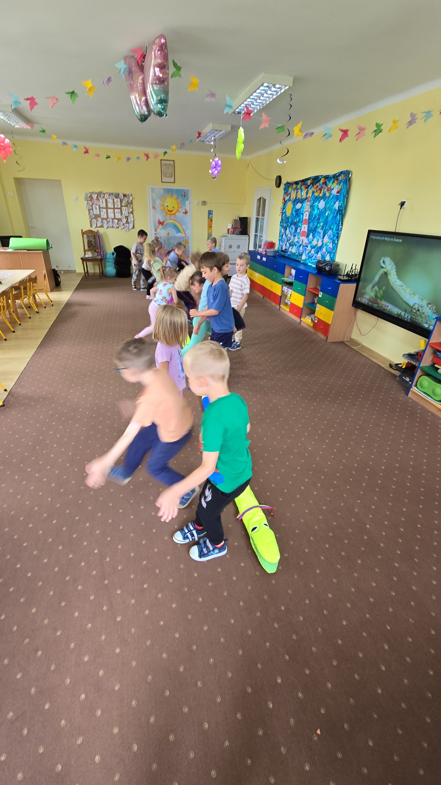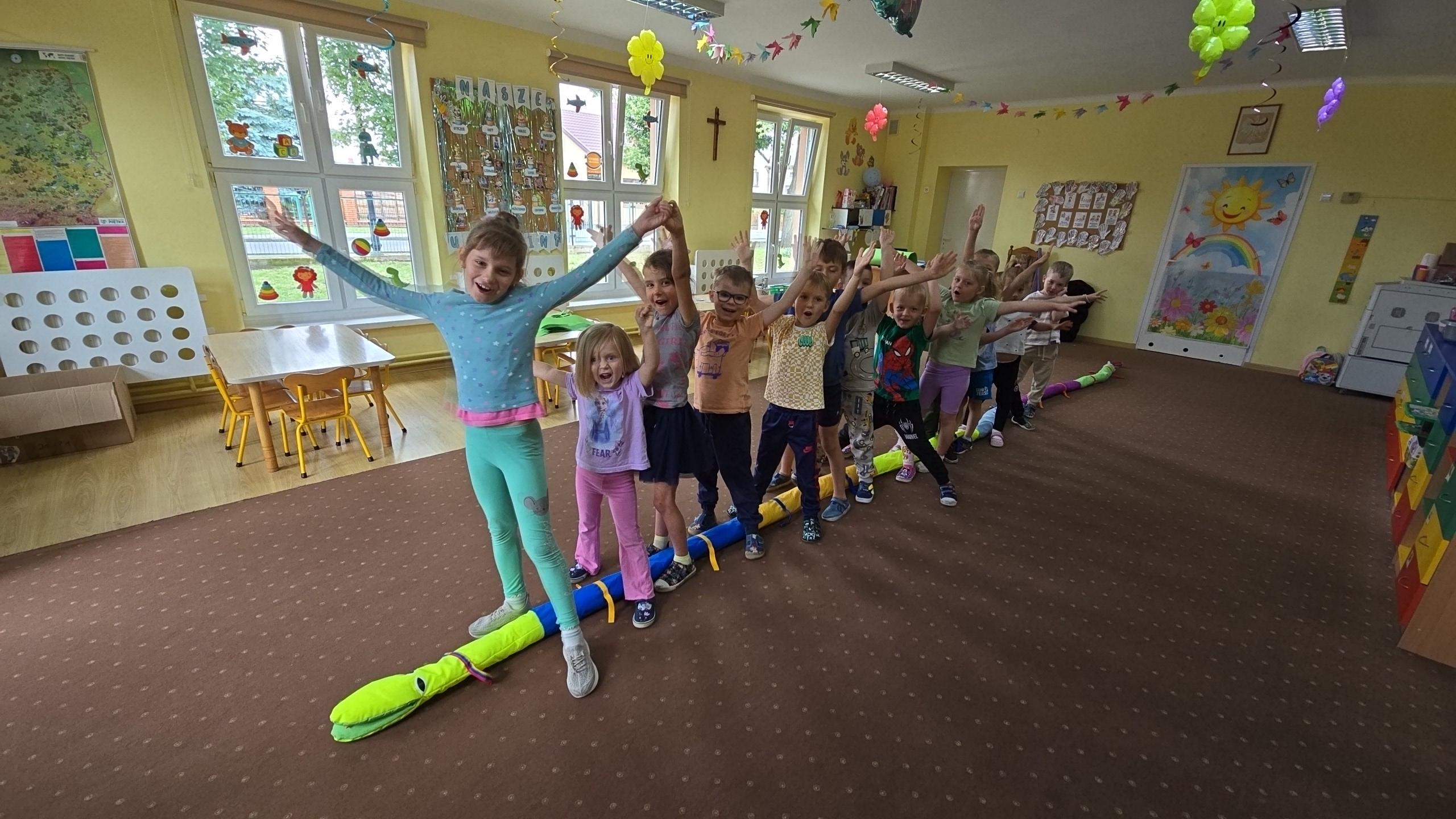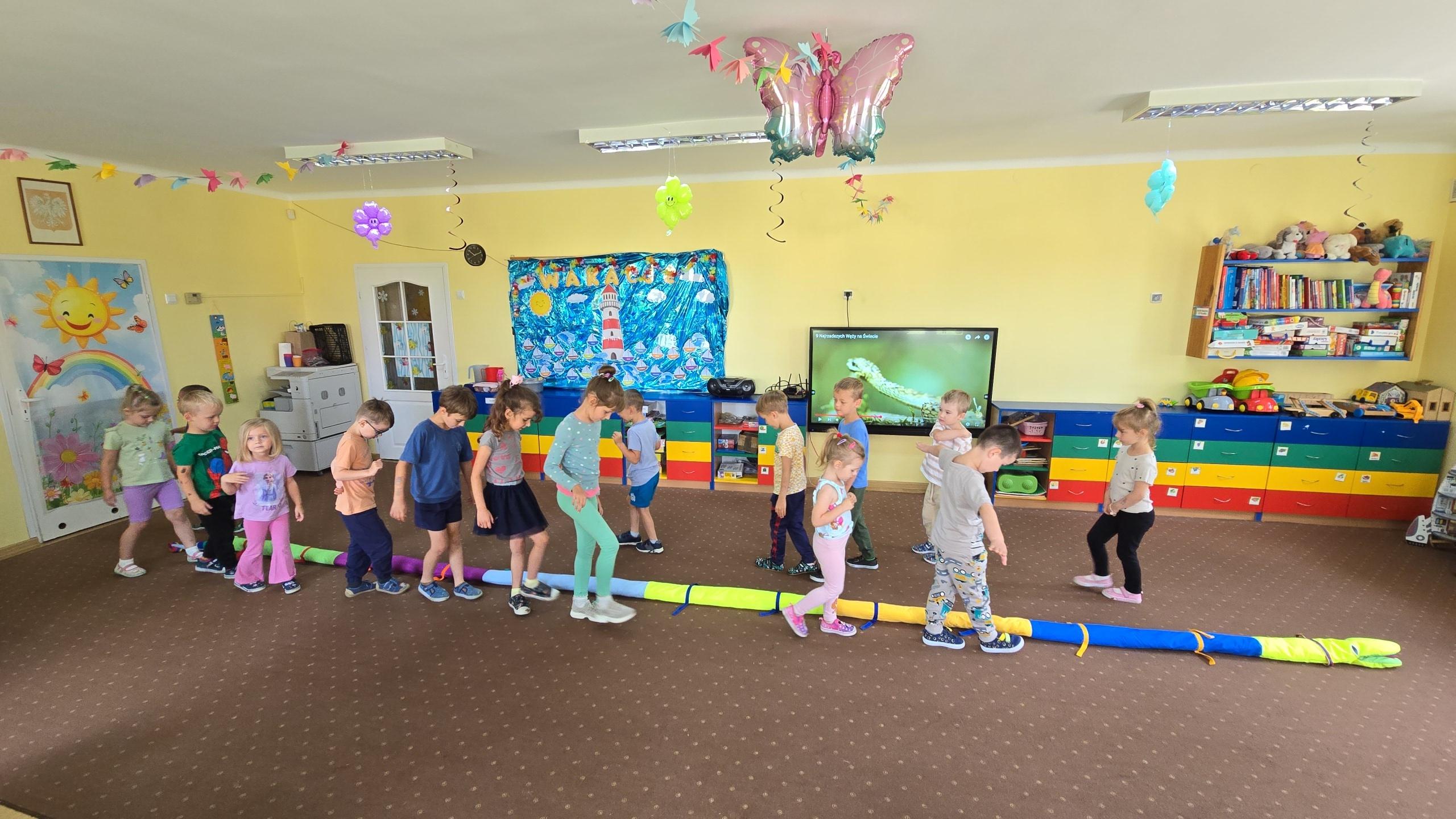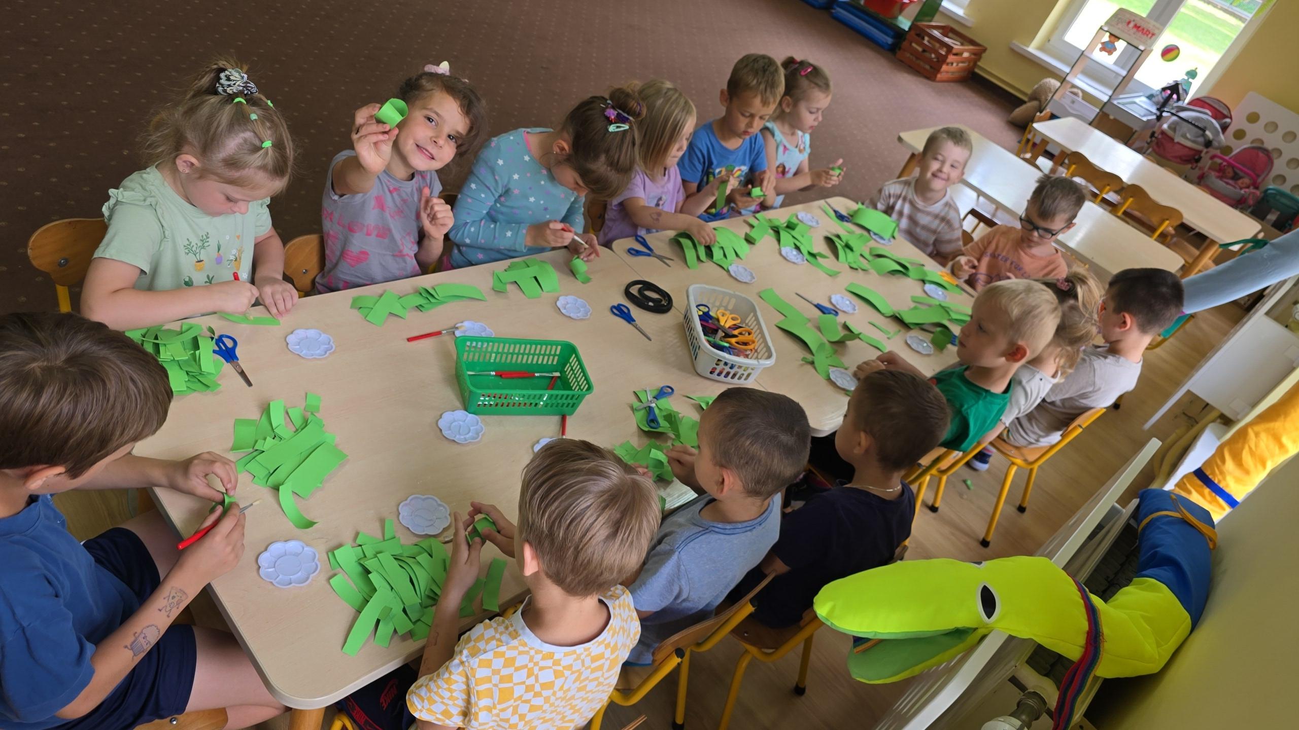Dzieci z zaciekawieniem wysłuchały bajki edukacyjnej oraz same wykonały swoje wężę z papieru.