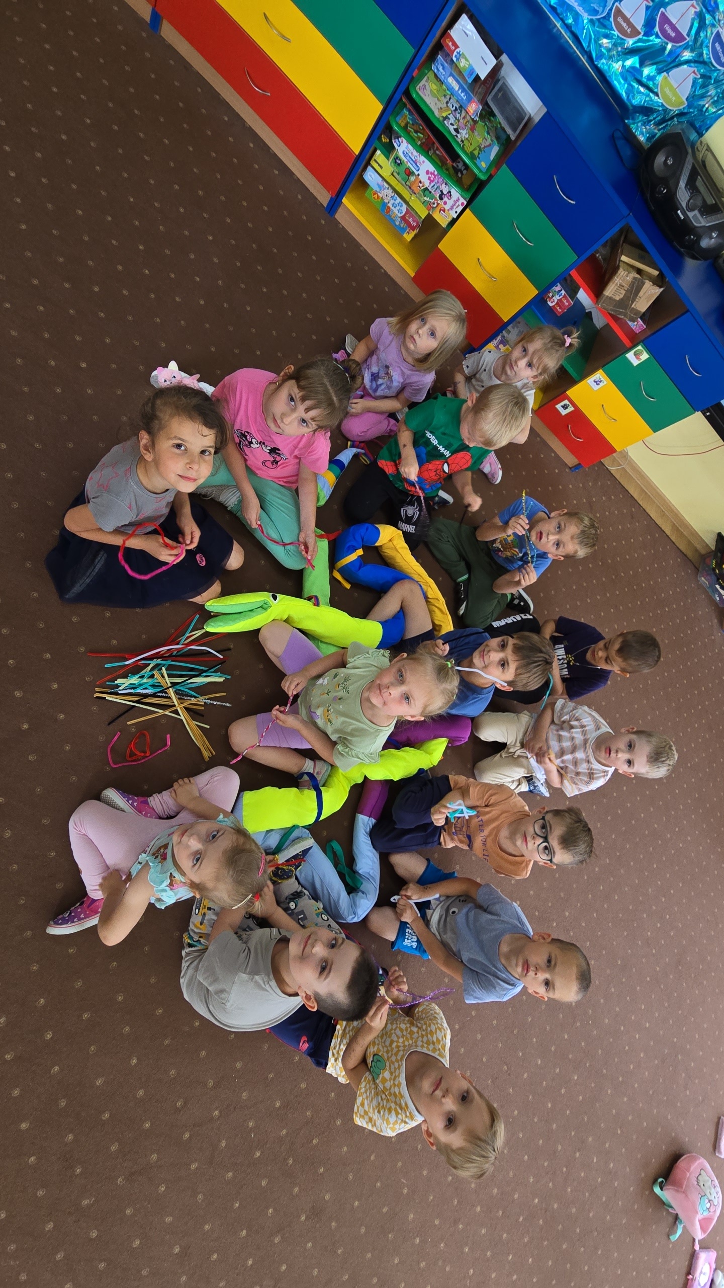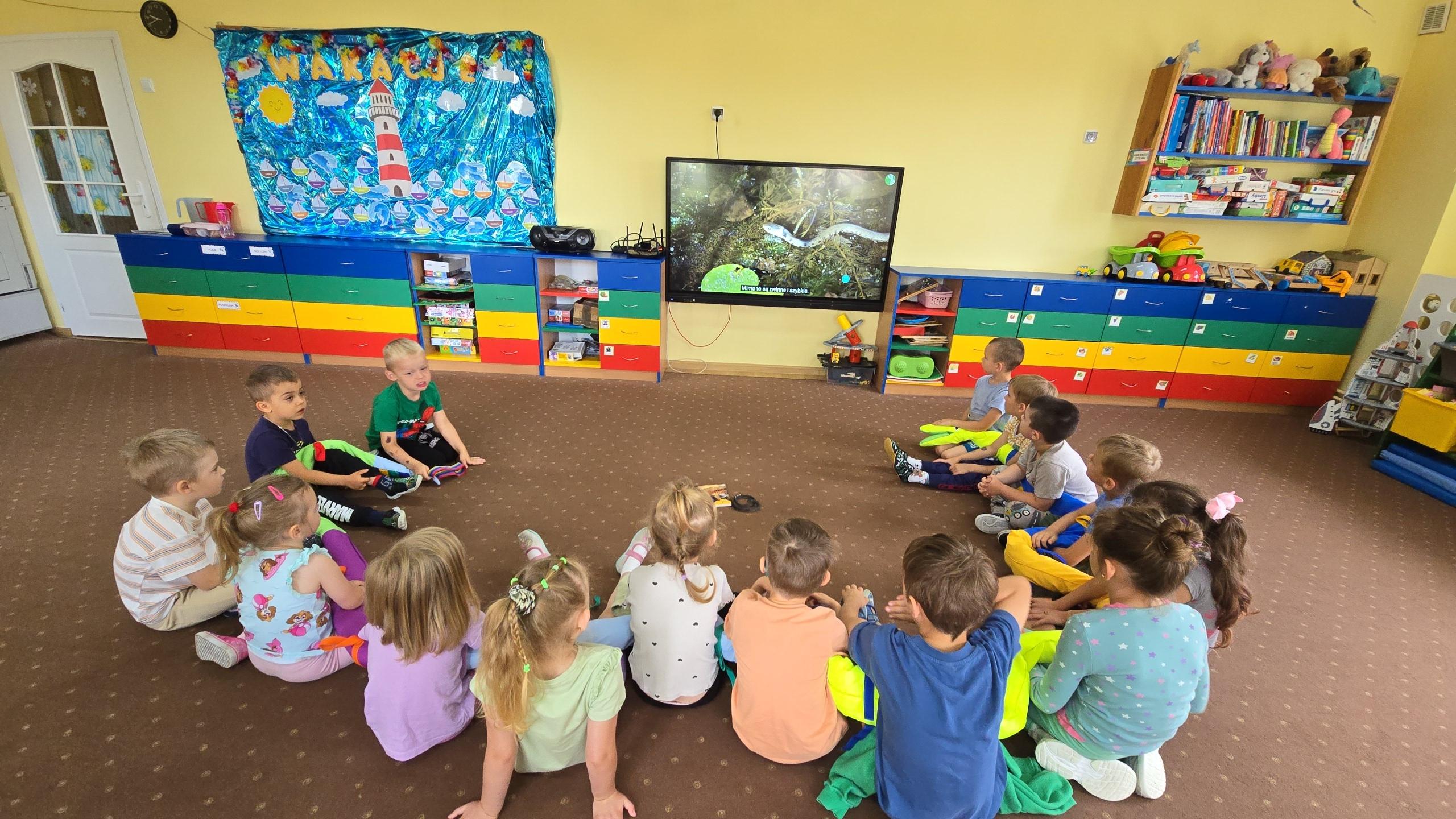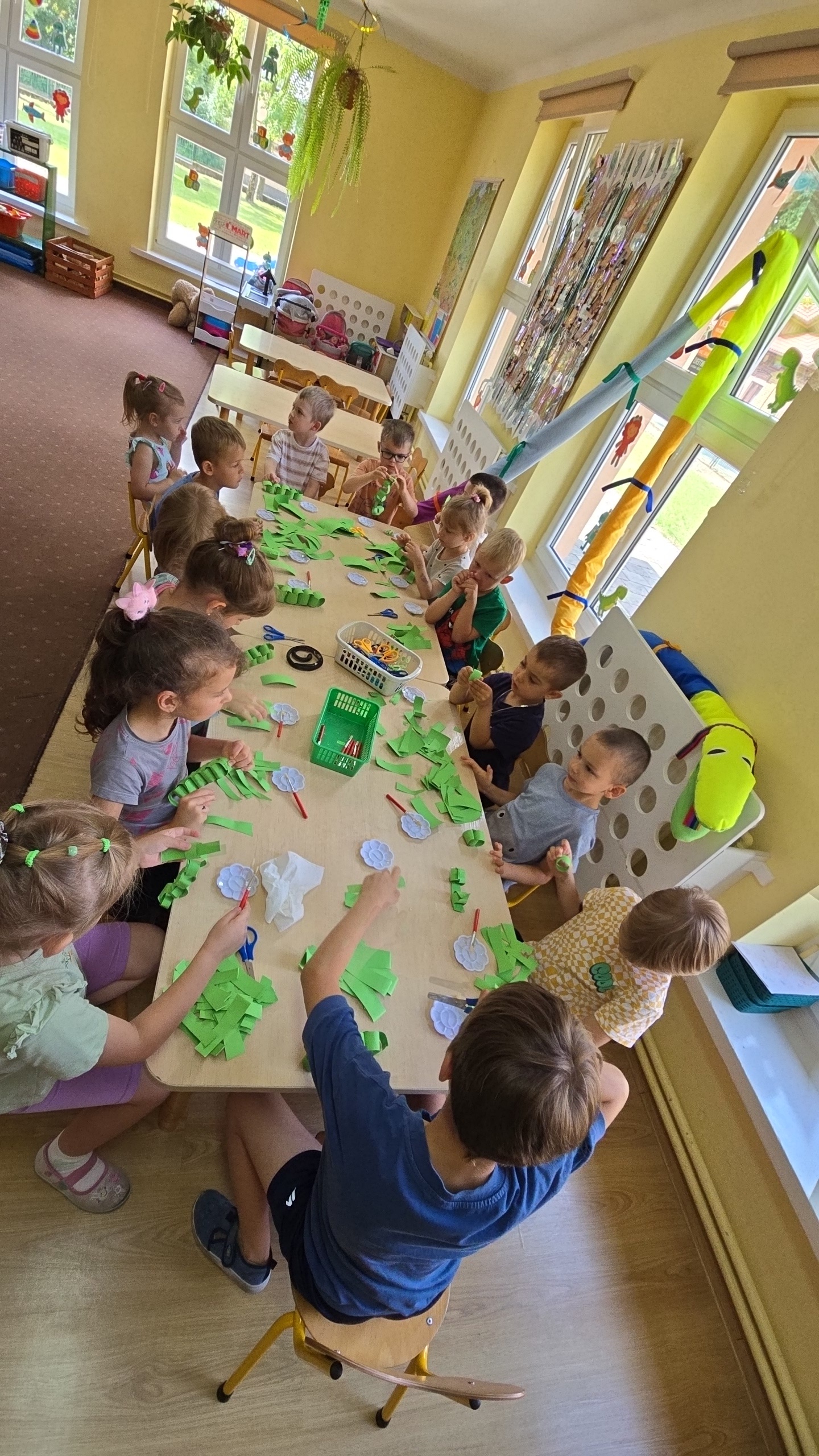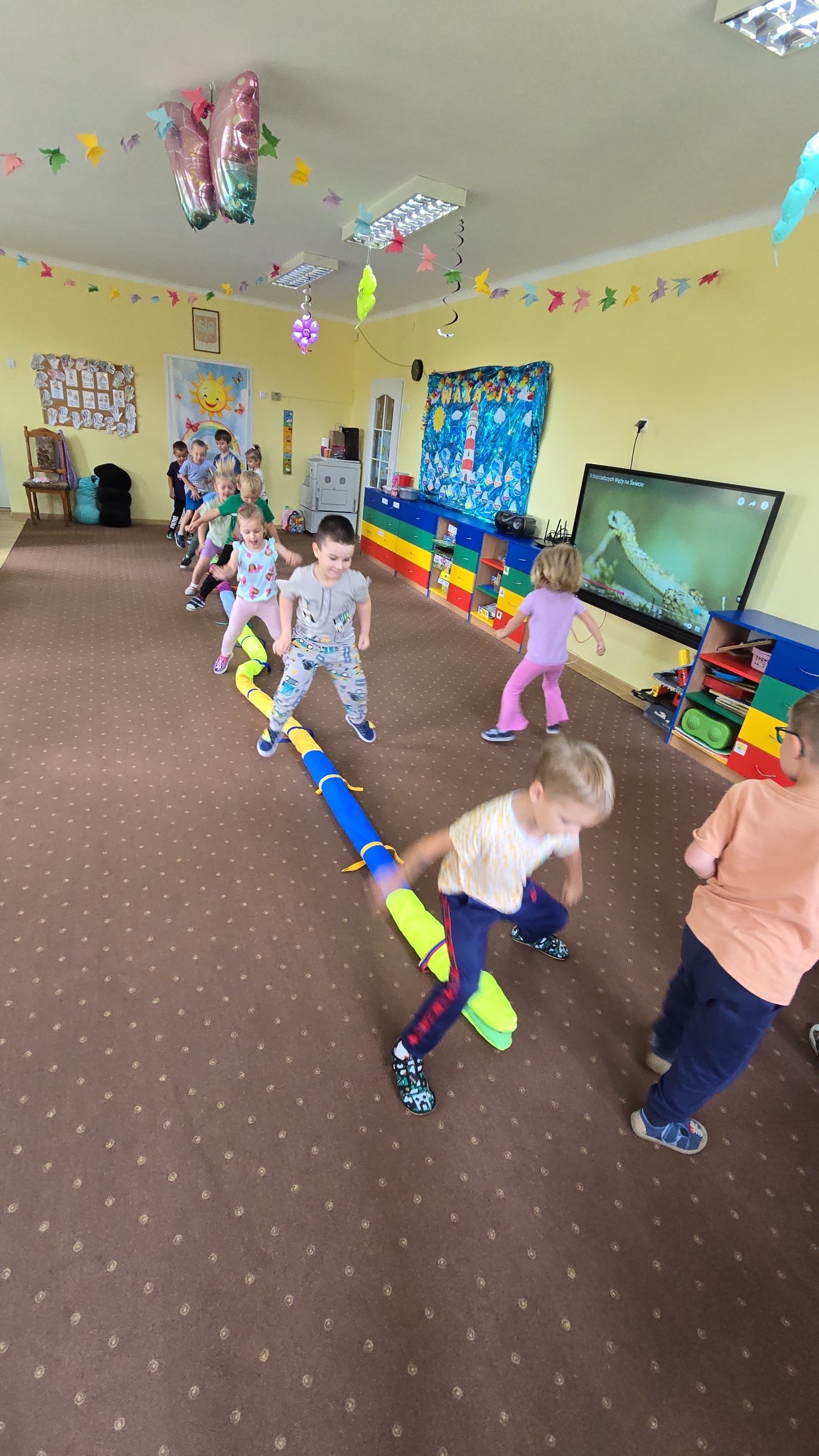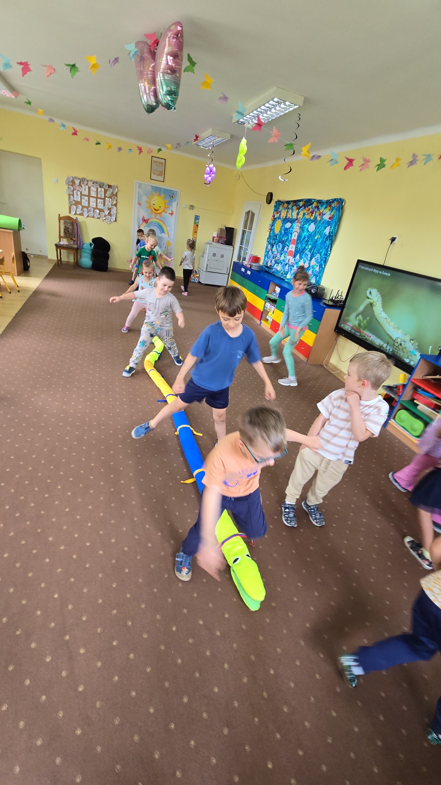 Dzieci z zaciekawieniem wysłuchały bajki edukacyjnej oraz same wykonały swoje wężę z papieru.