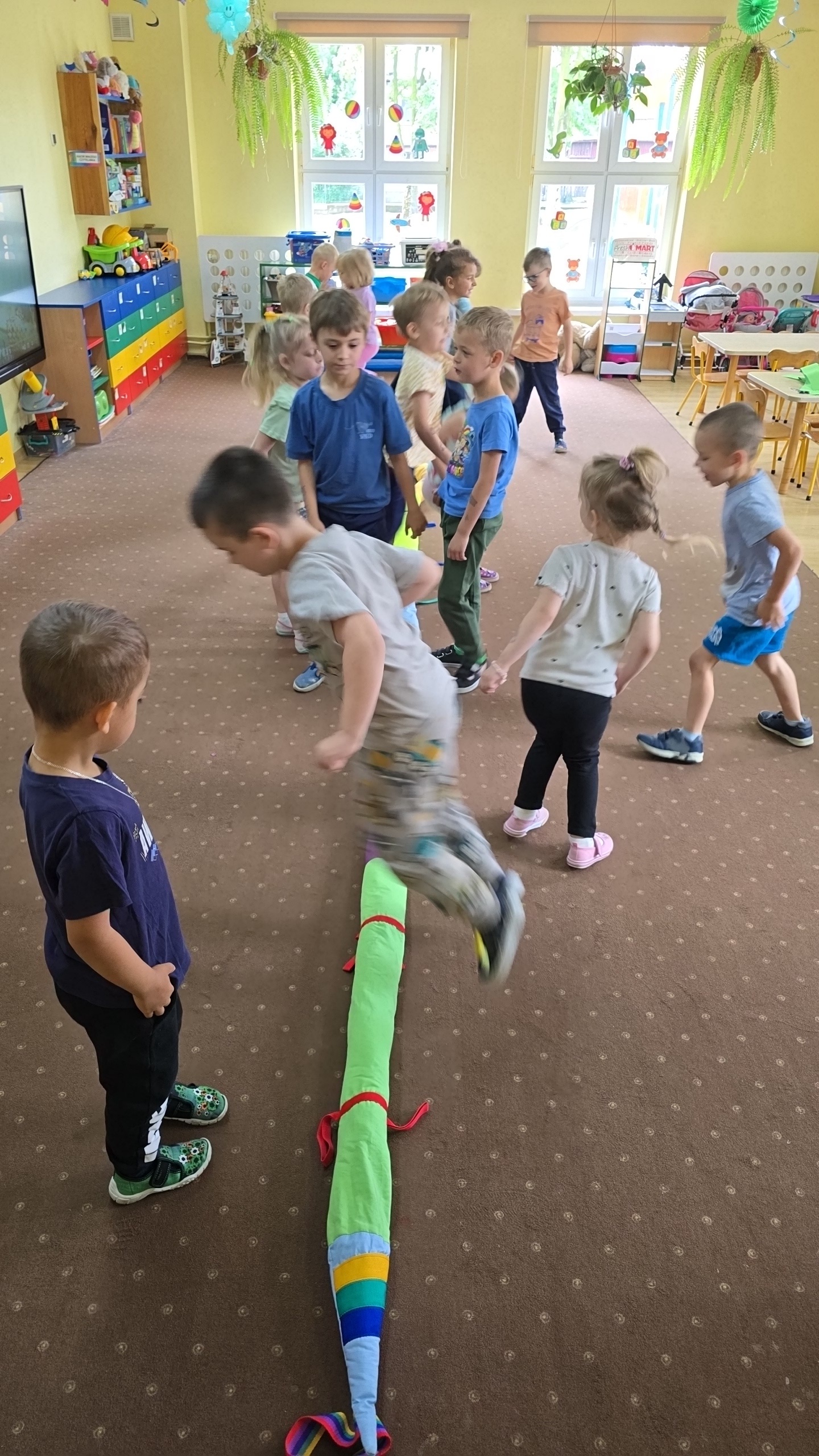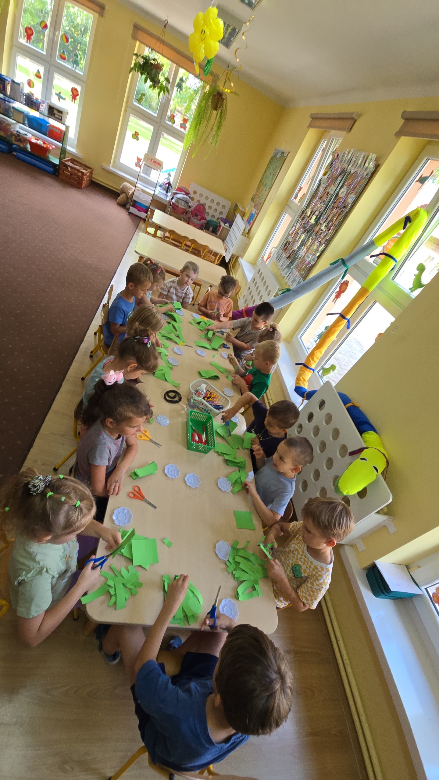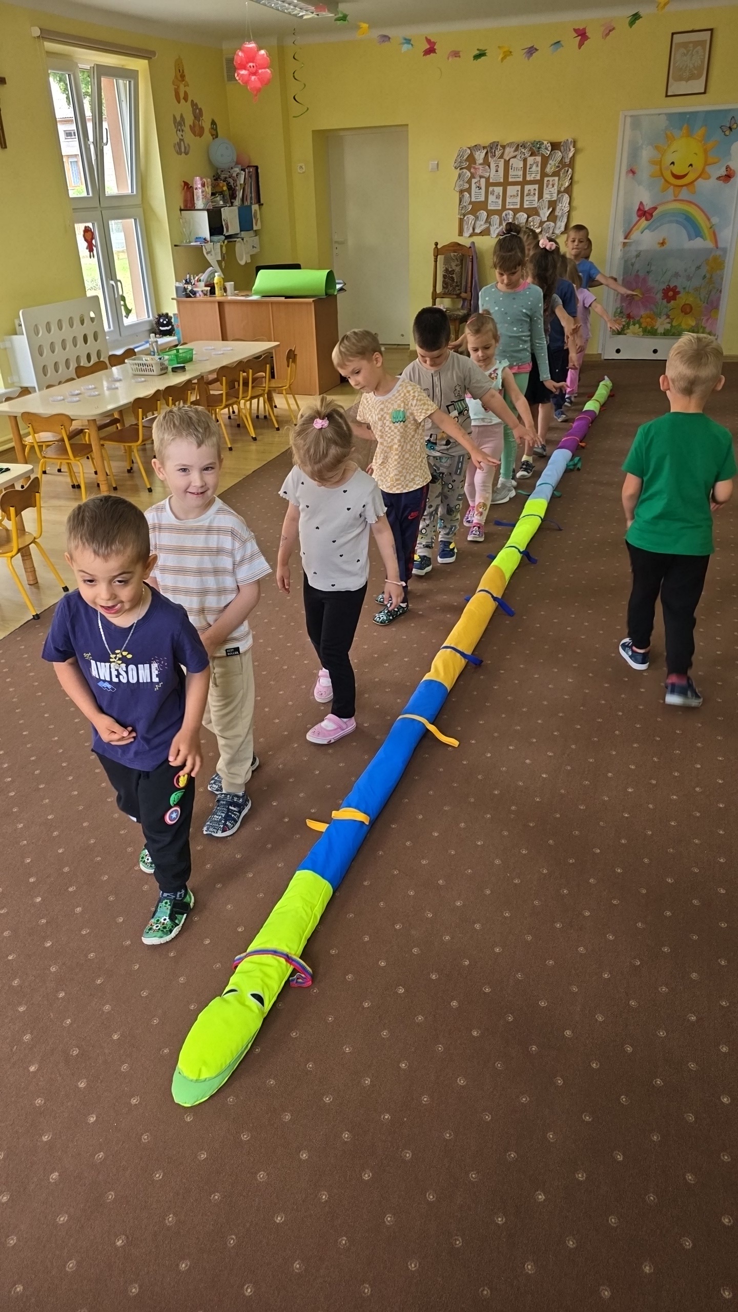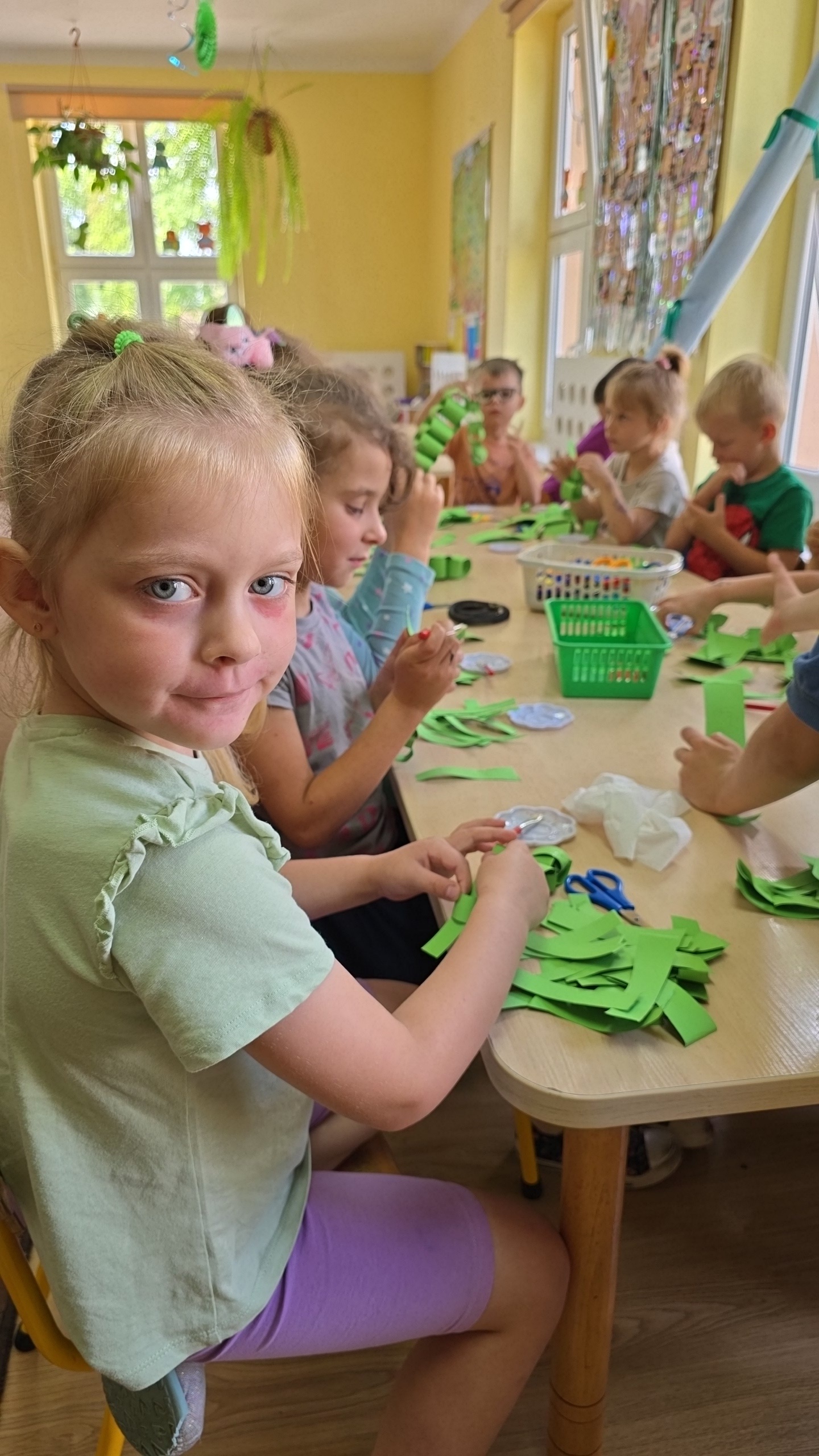 Dzieci z zaciekawieniem wysłuchały bajki edukacyjnej oraz same wykonały swoje wężę z papieru.