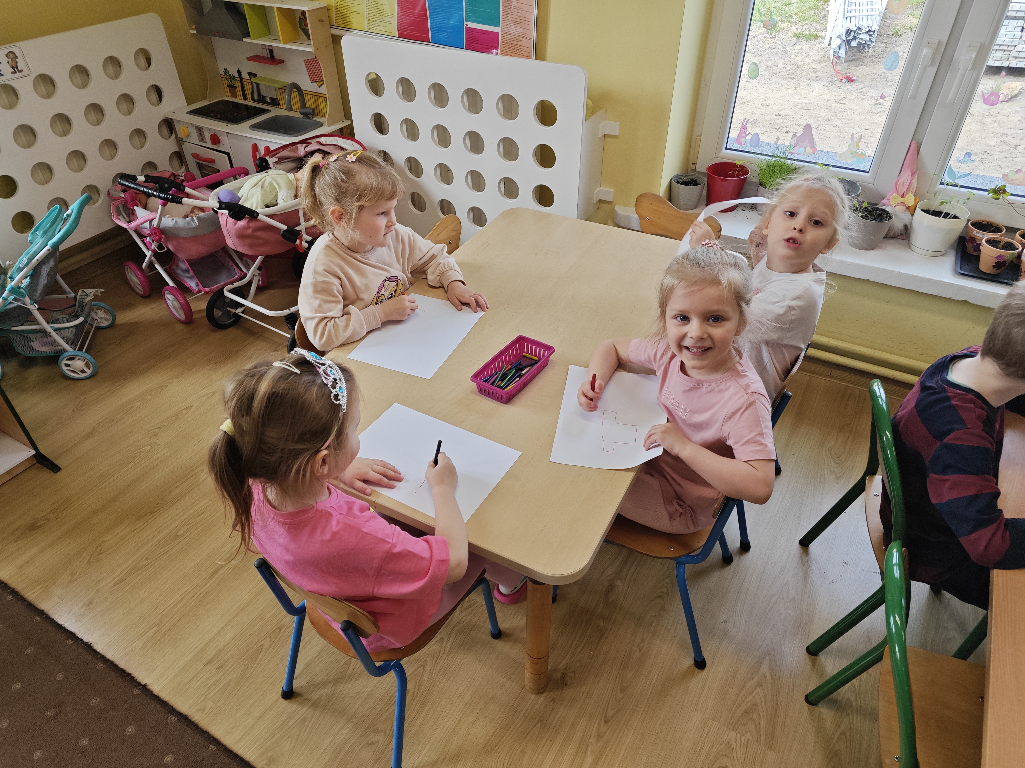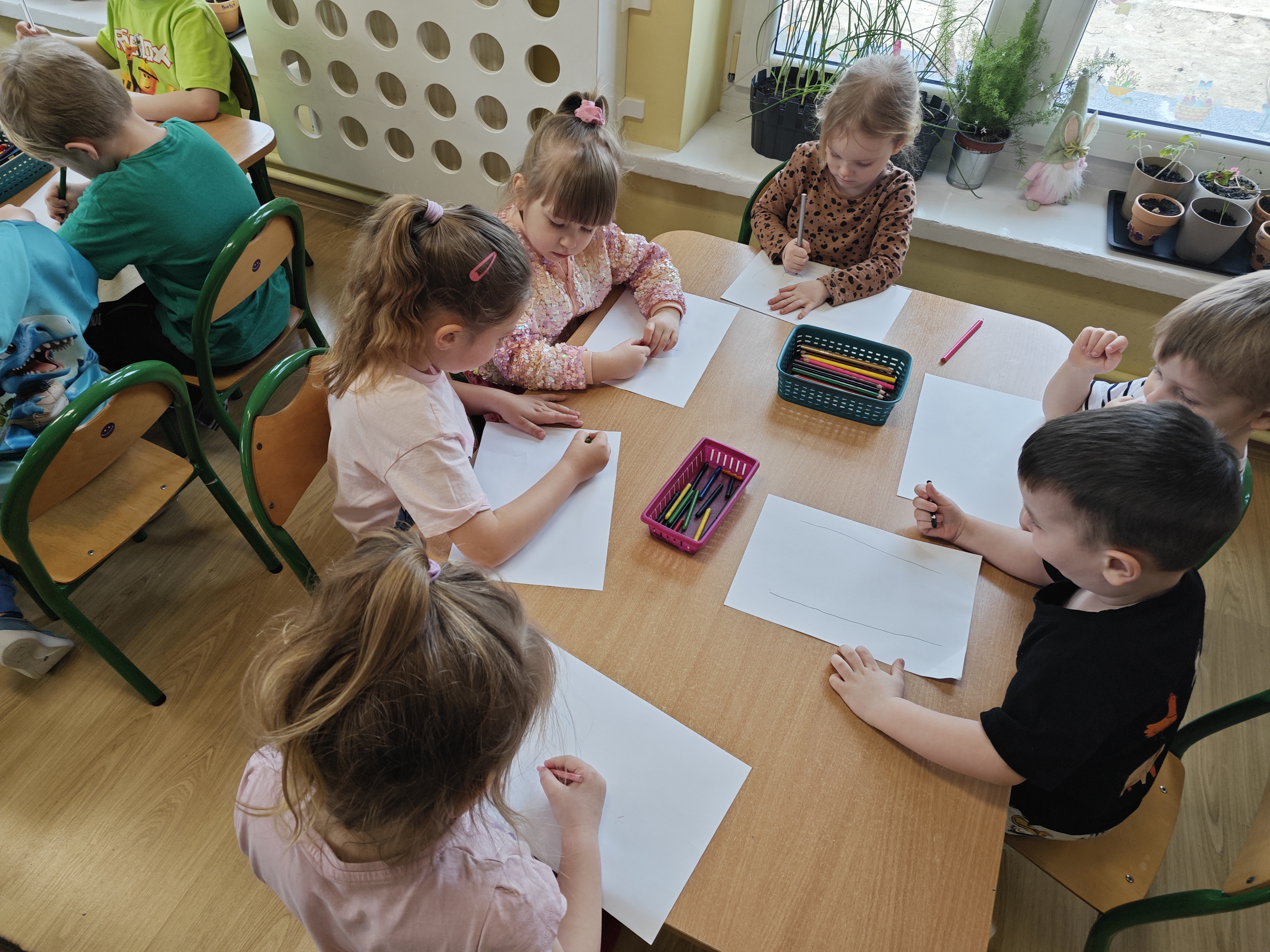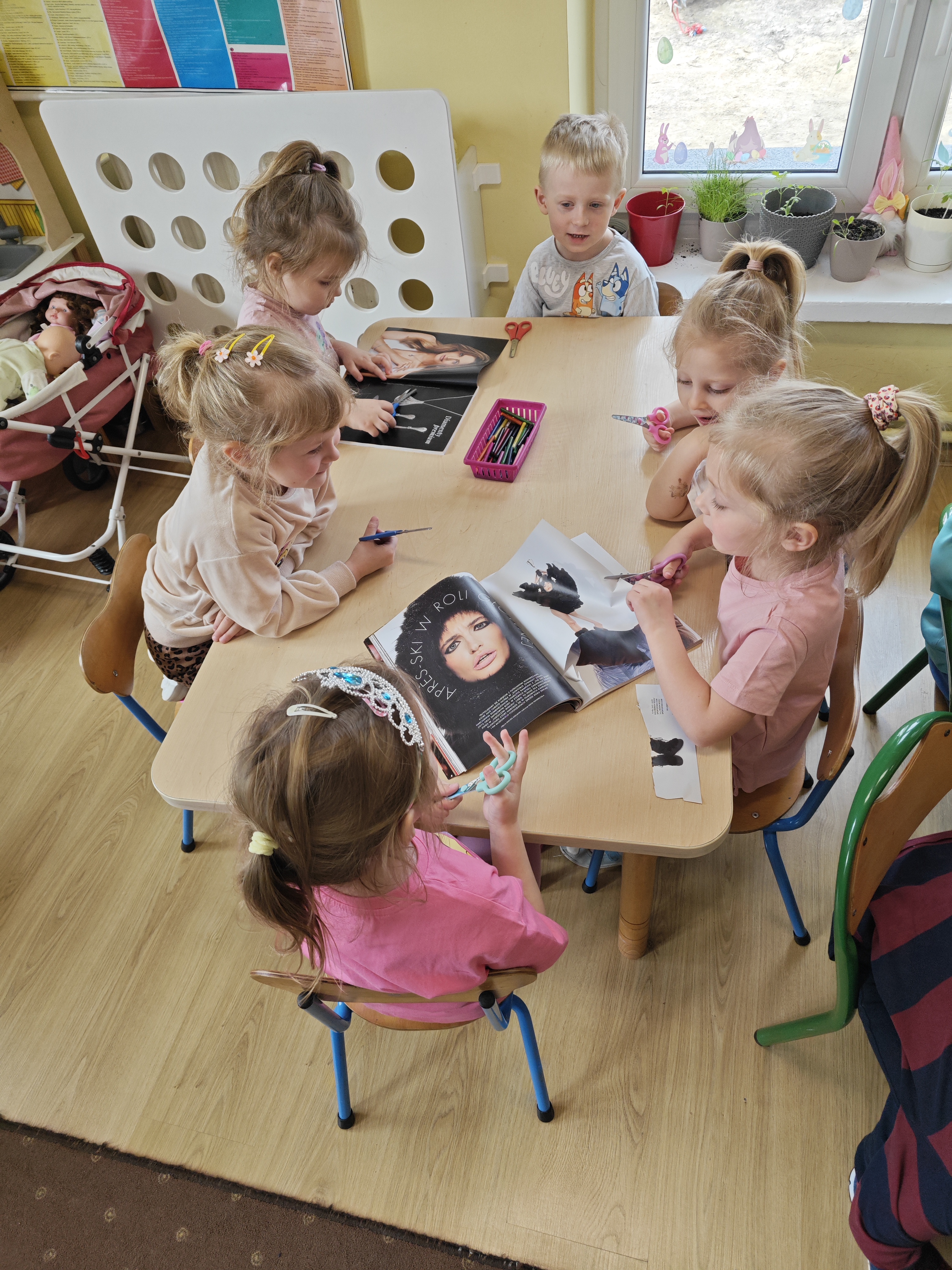 Na początek każde dziecko wykonało obrazek związany z ubraniem i tym samym zaczęliśmy prowadzić nasz grupowy album, do którego dołączyliśmy kolejne wycinki oraz prace.