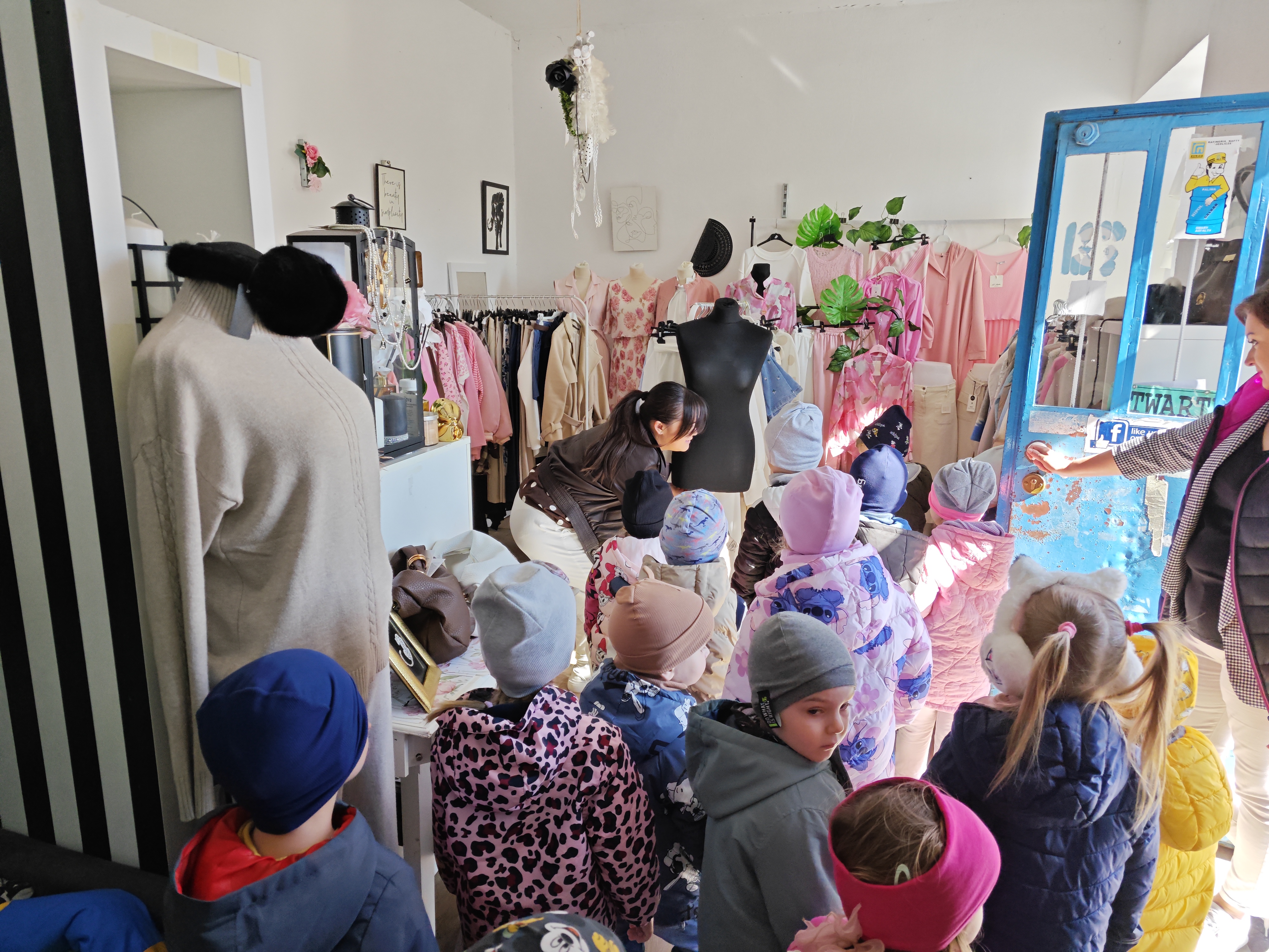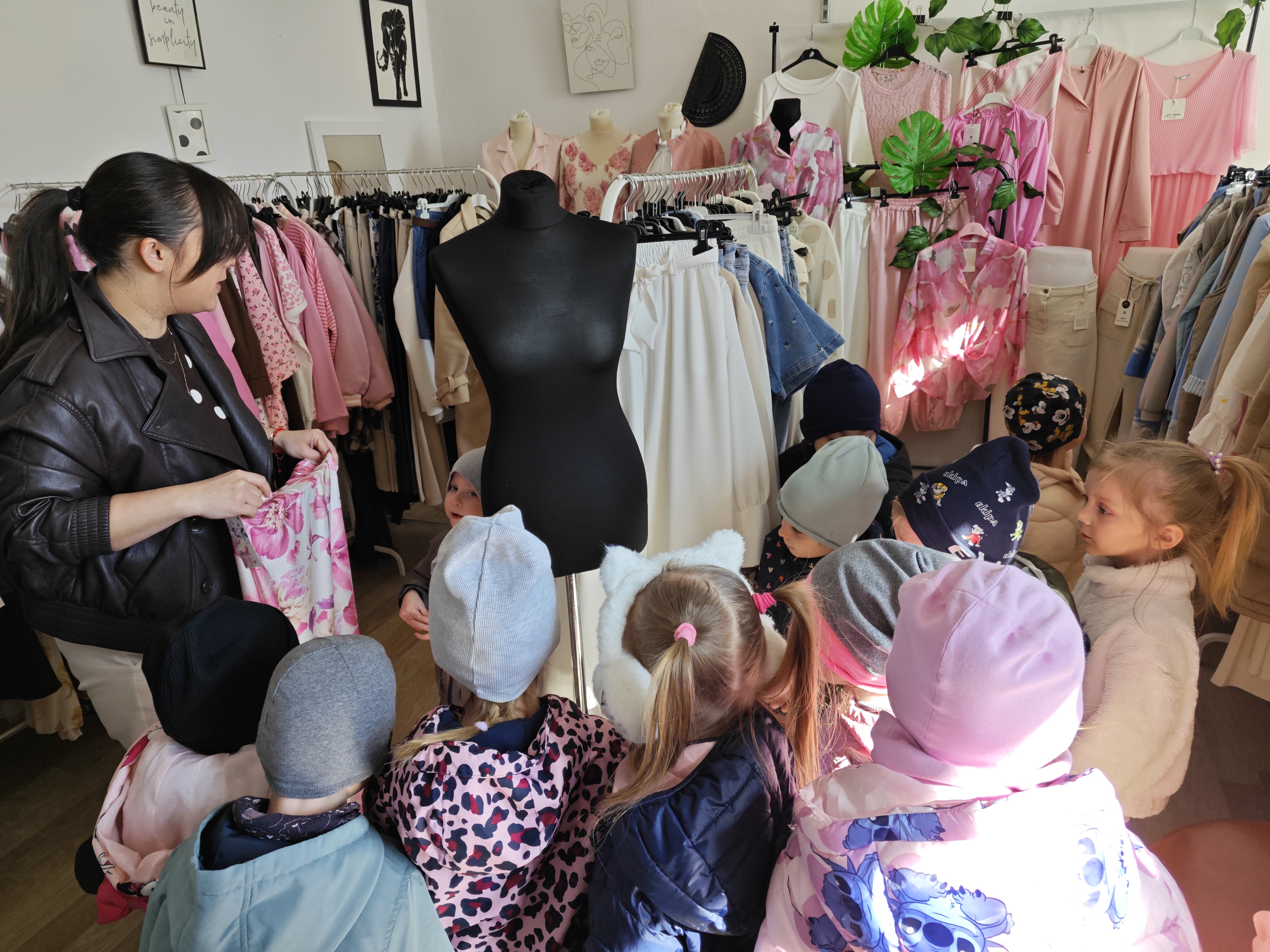 Na zakończenie projektu odwiedziliśmy sklep odzieżowy Claudia. Pani Klaudia Hong Van pozwoliła zwiedzić zakamarki swojego sklepu, pokazała nam najróżniejsze materiały, a także wystylizować sklepowego manekina.