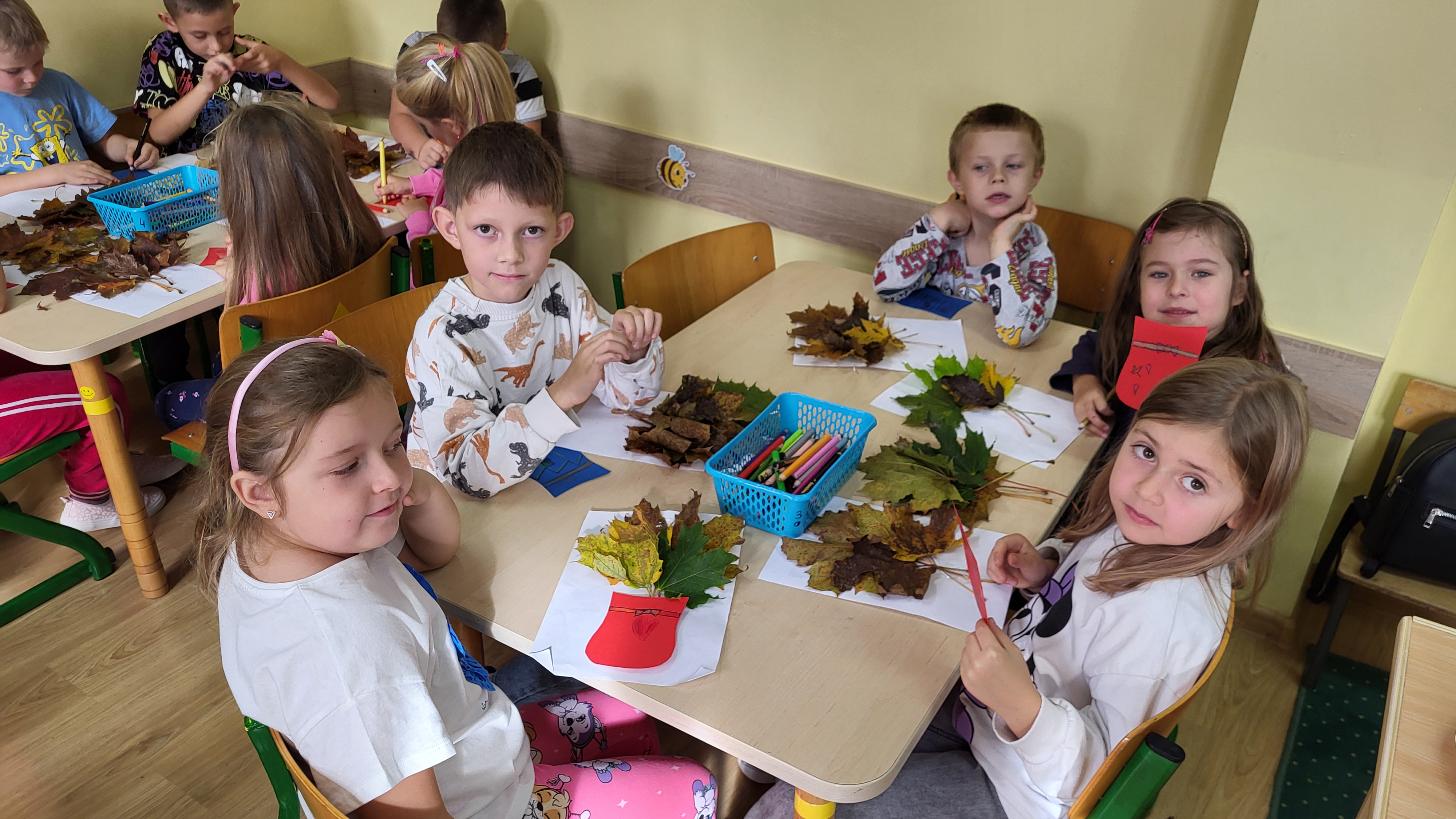 Po powrocie do przedszkola wykorzystaliśmy swoje zbiory do wykonania pracy plastycznej :)