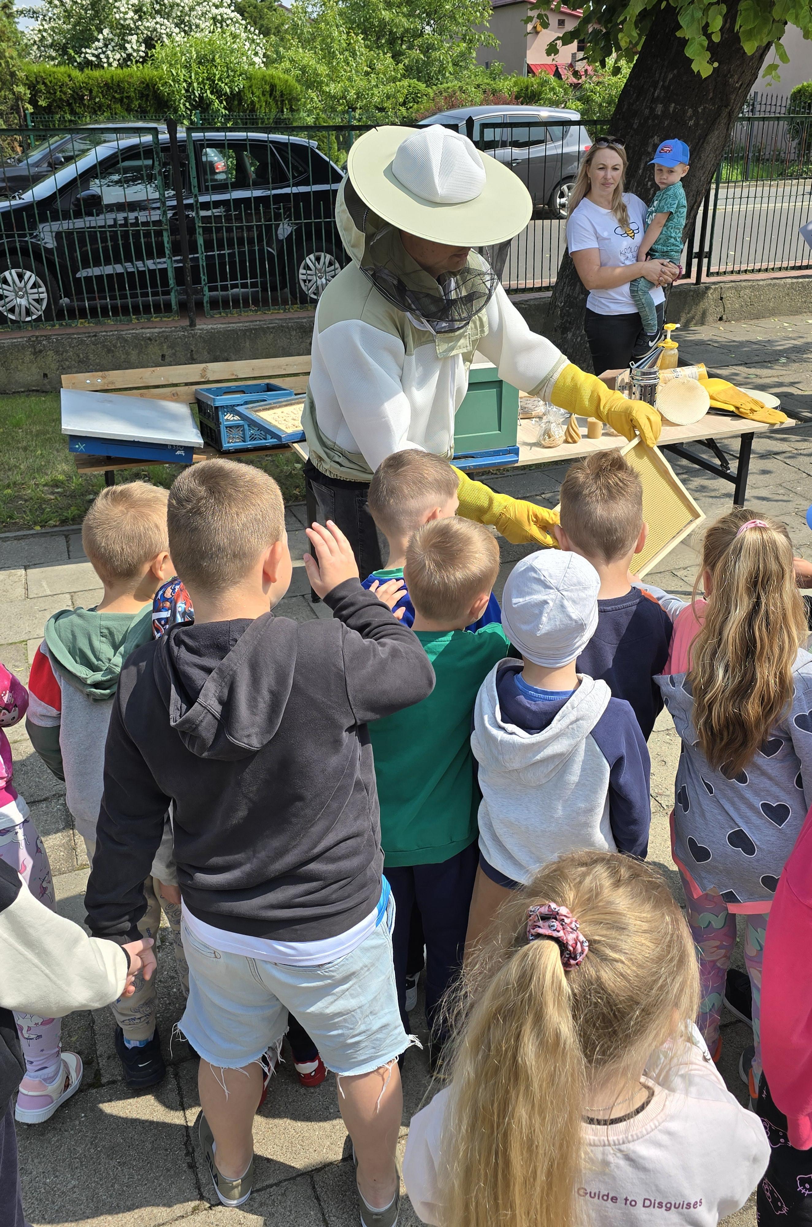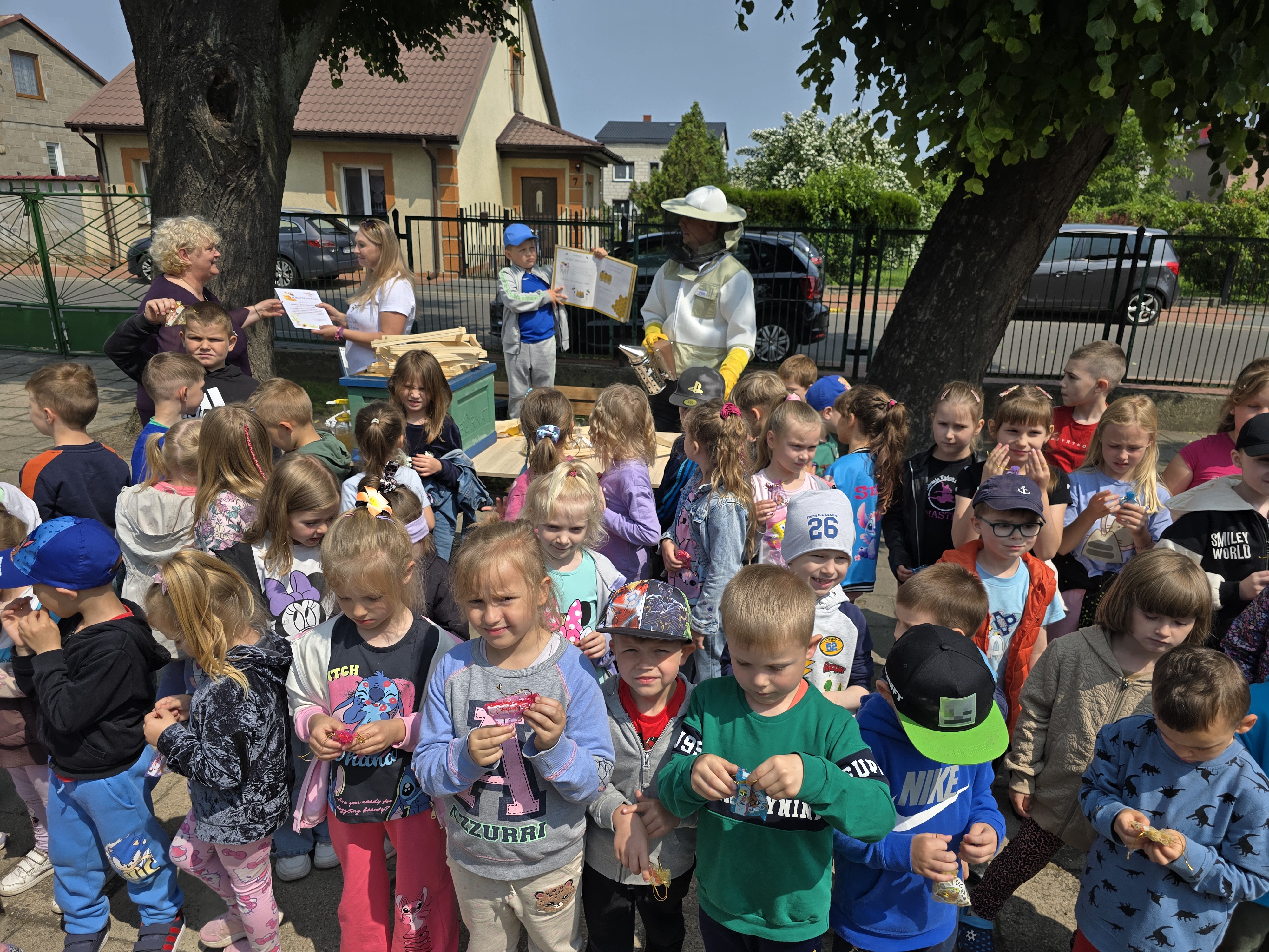 Dowiedzieliśmy się wielu ciekawych rzeczy na temat pracy pszczelarza, znaczenia owadów dla przyrody i człowieka, właściwości zdrowotnych miodu oraz bezpieczeństwa w kontakcie z pszczołami. To było przeciekawe spotkanie, które bardzo spodobało sie naszym przedszkolakom.