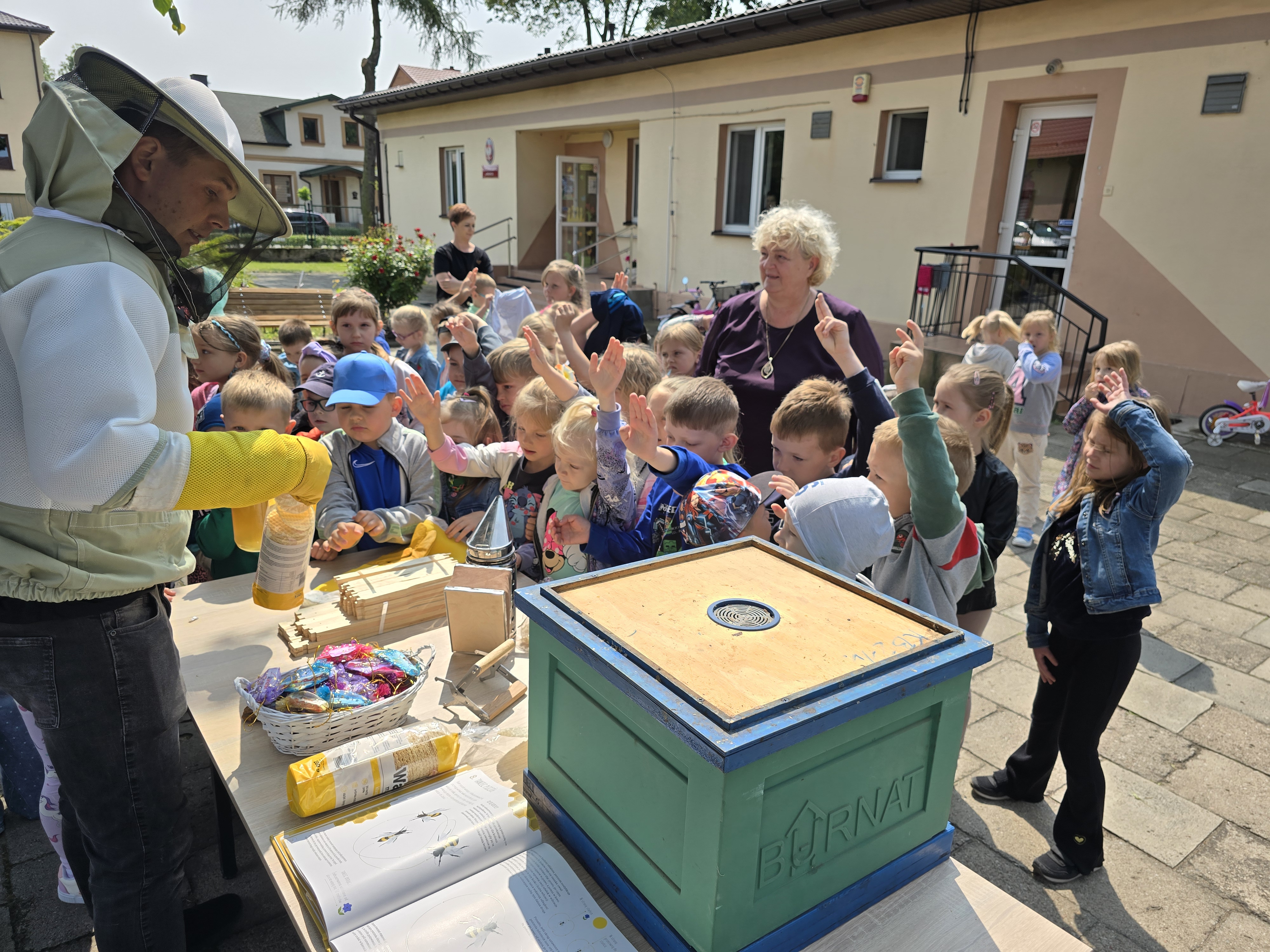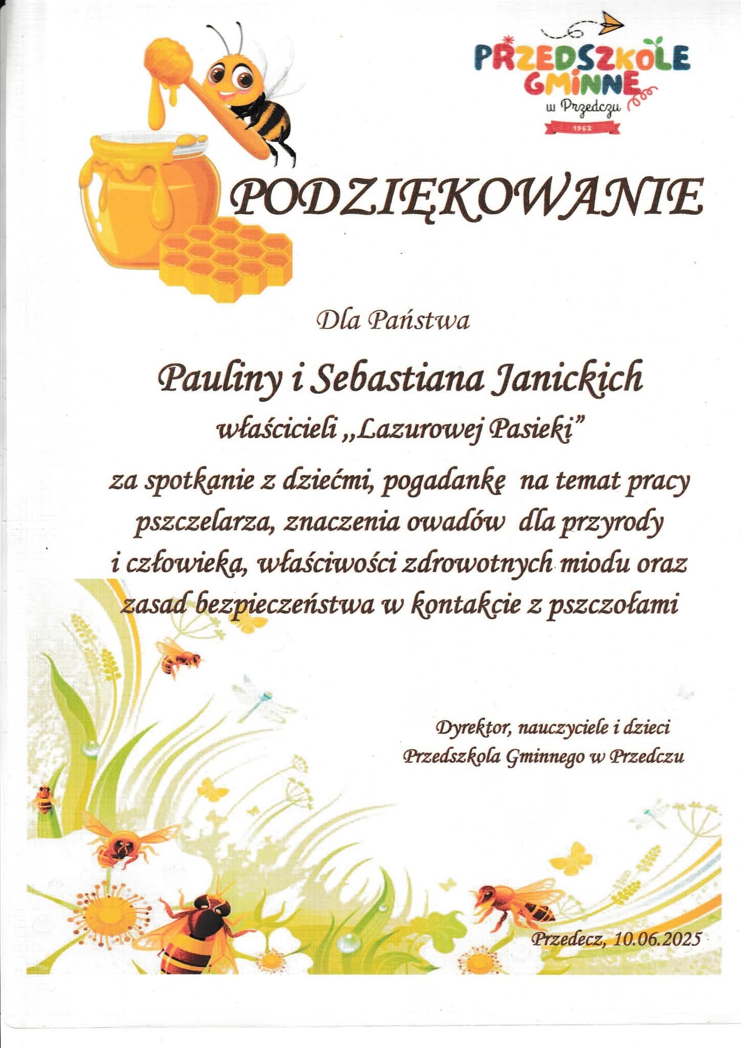 10 czerwca 2025 gościliśmy w naszym przedszkolu Państwa Paulinę i Sebastiana Janickich, właścicieli "Lazurowej Pasieki".