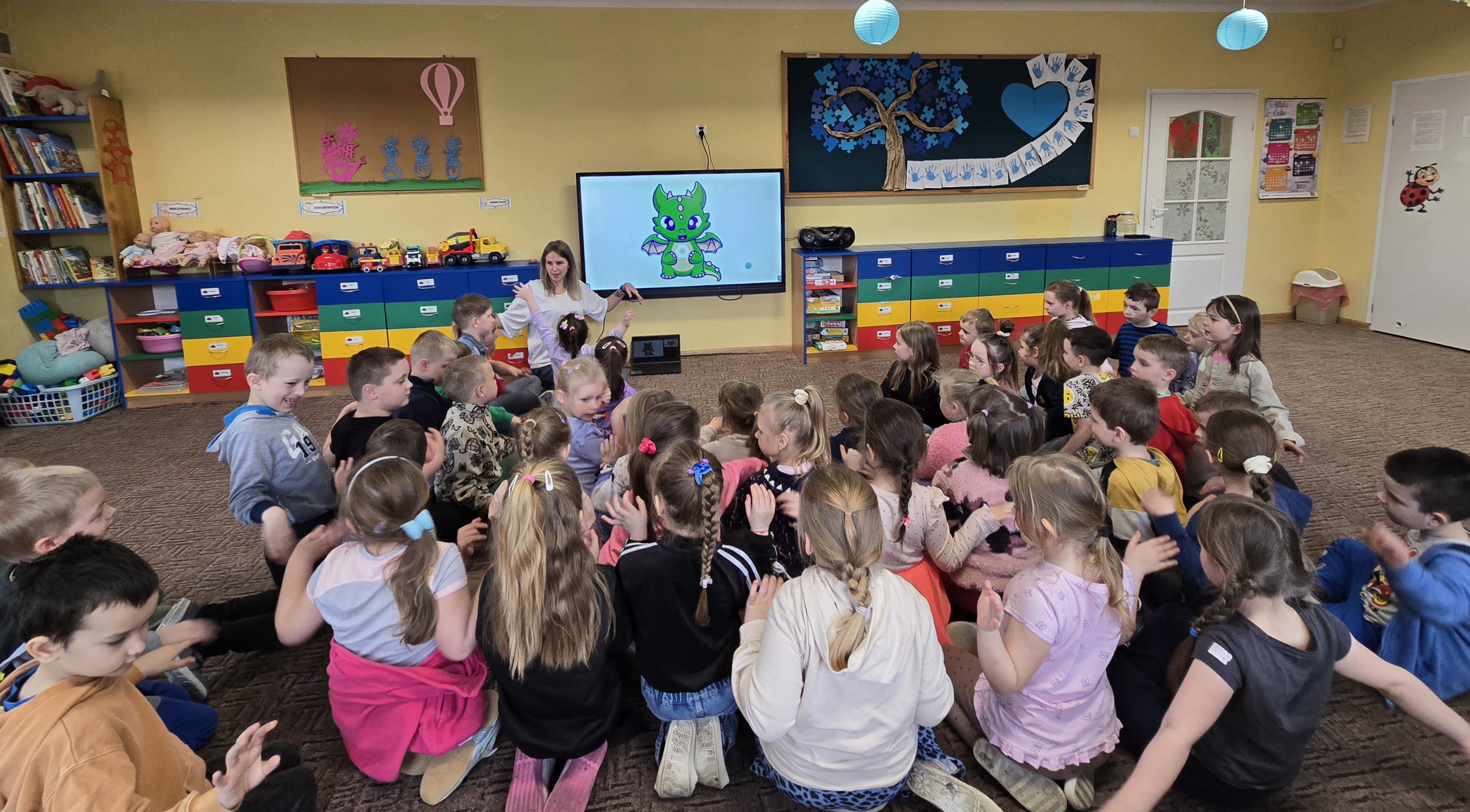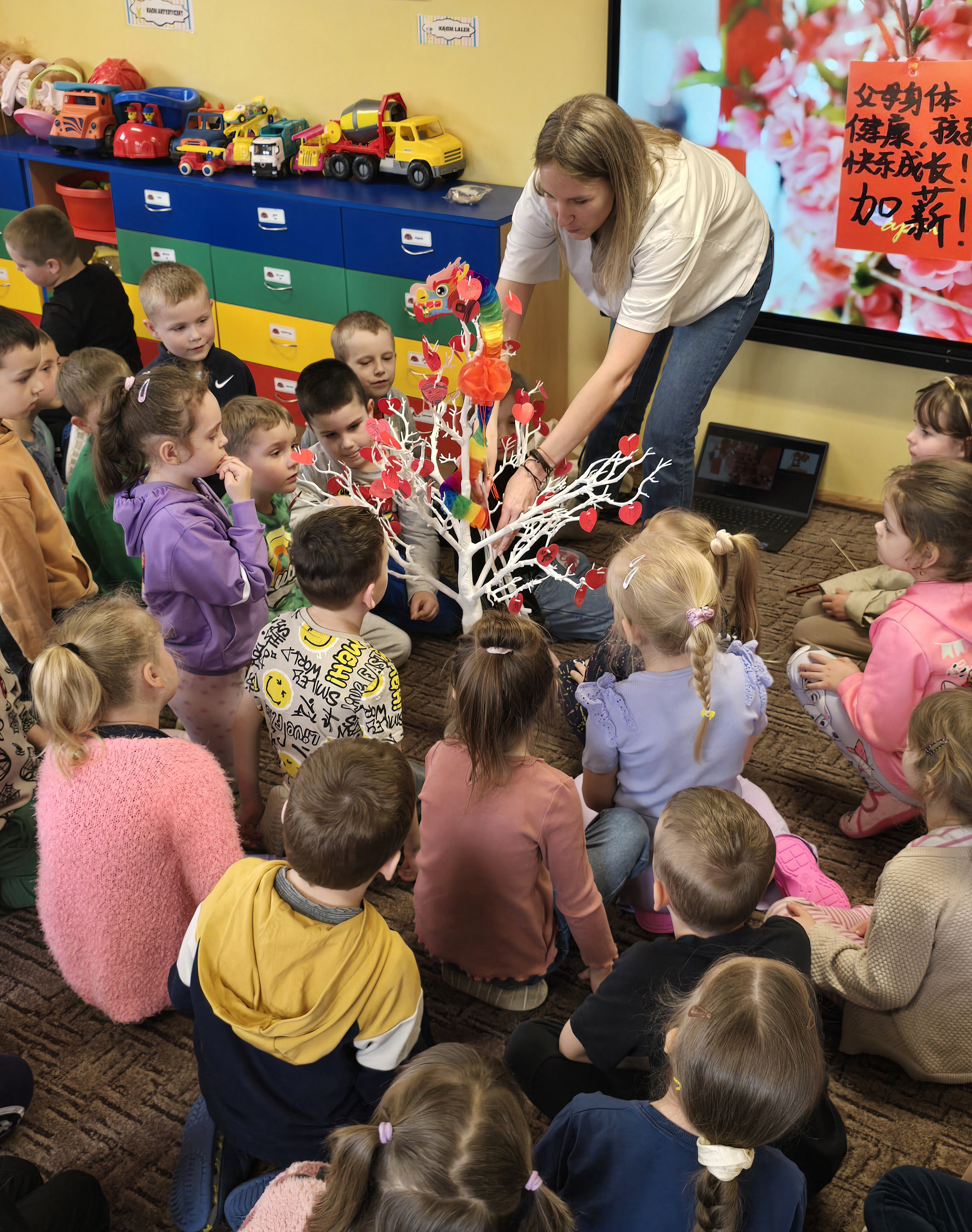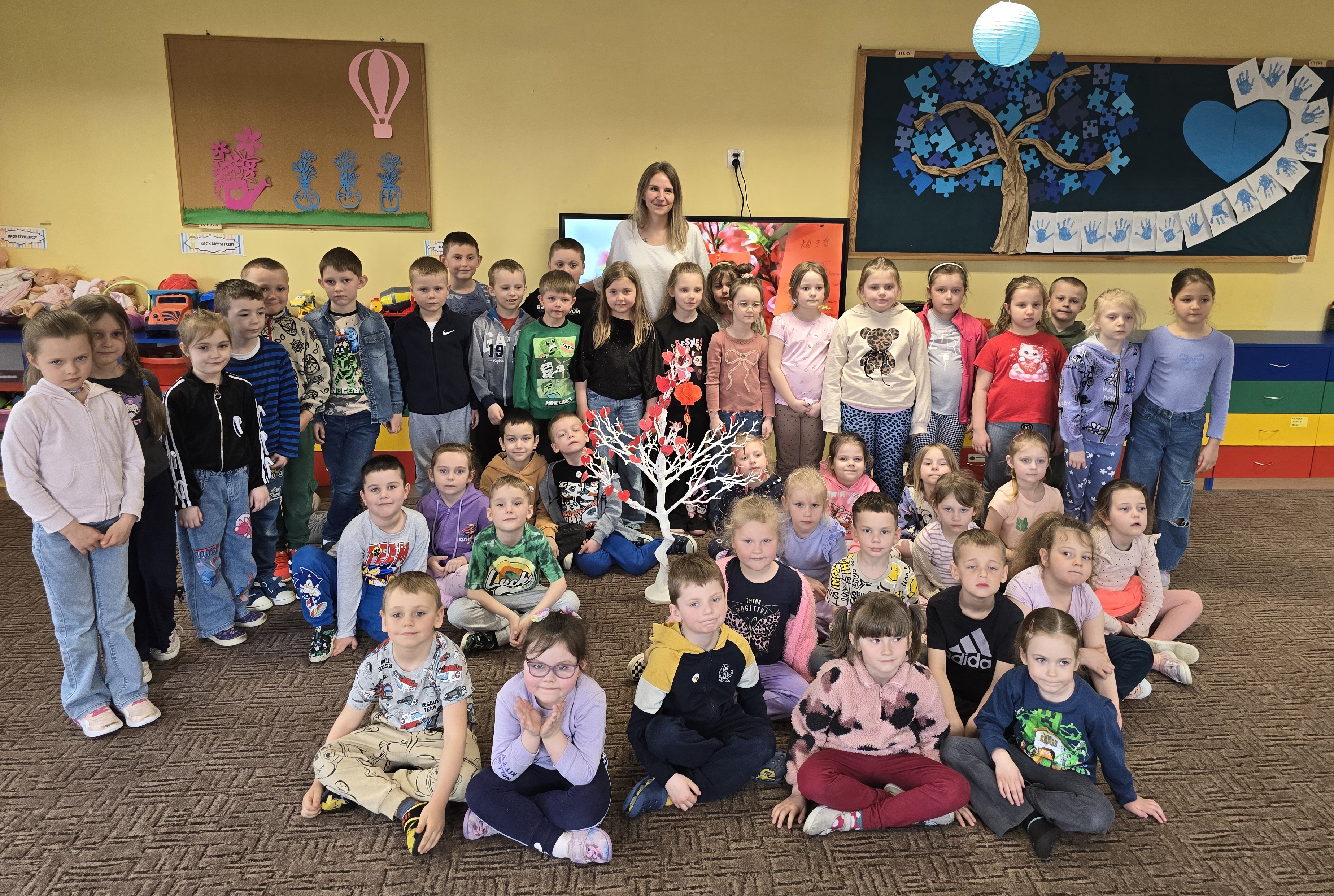 Na koniec, w nawiązaniu do chińskich tradycji, szczególnie podczas Święta Latarni lub Chińskiego Nowego Roku, dzieci narysowały lub zapisały na czerwonych karteczkach życzenia i umieściły je w pobliżu wizerunku Smoka. Ogromnie dziękujemy.