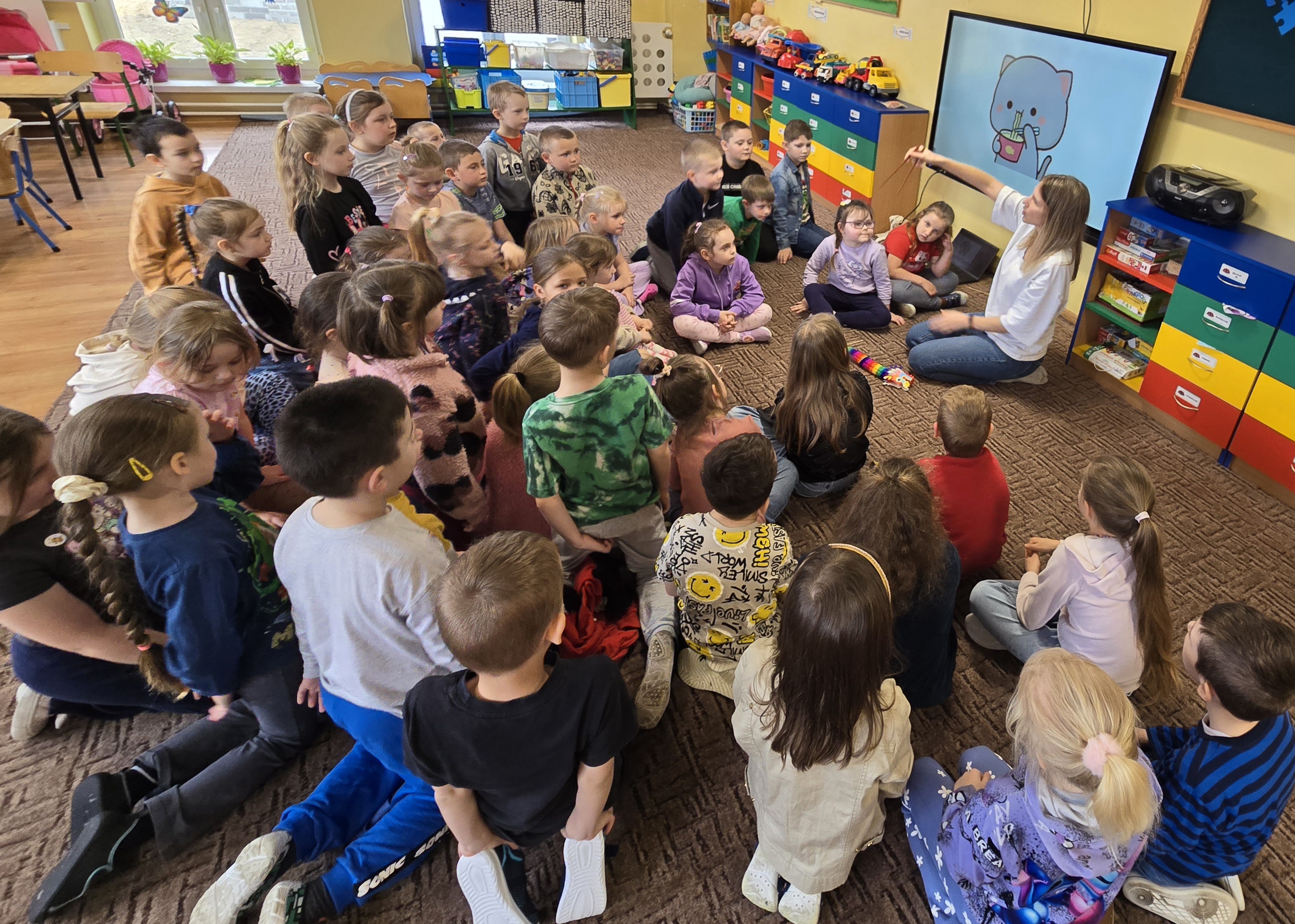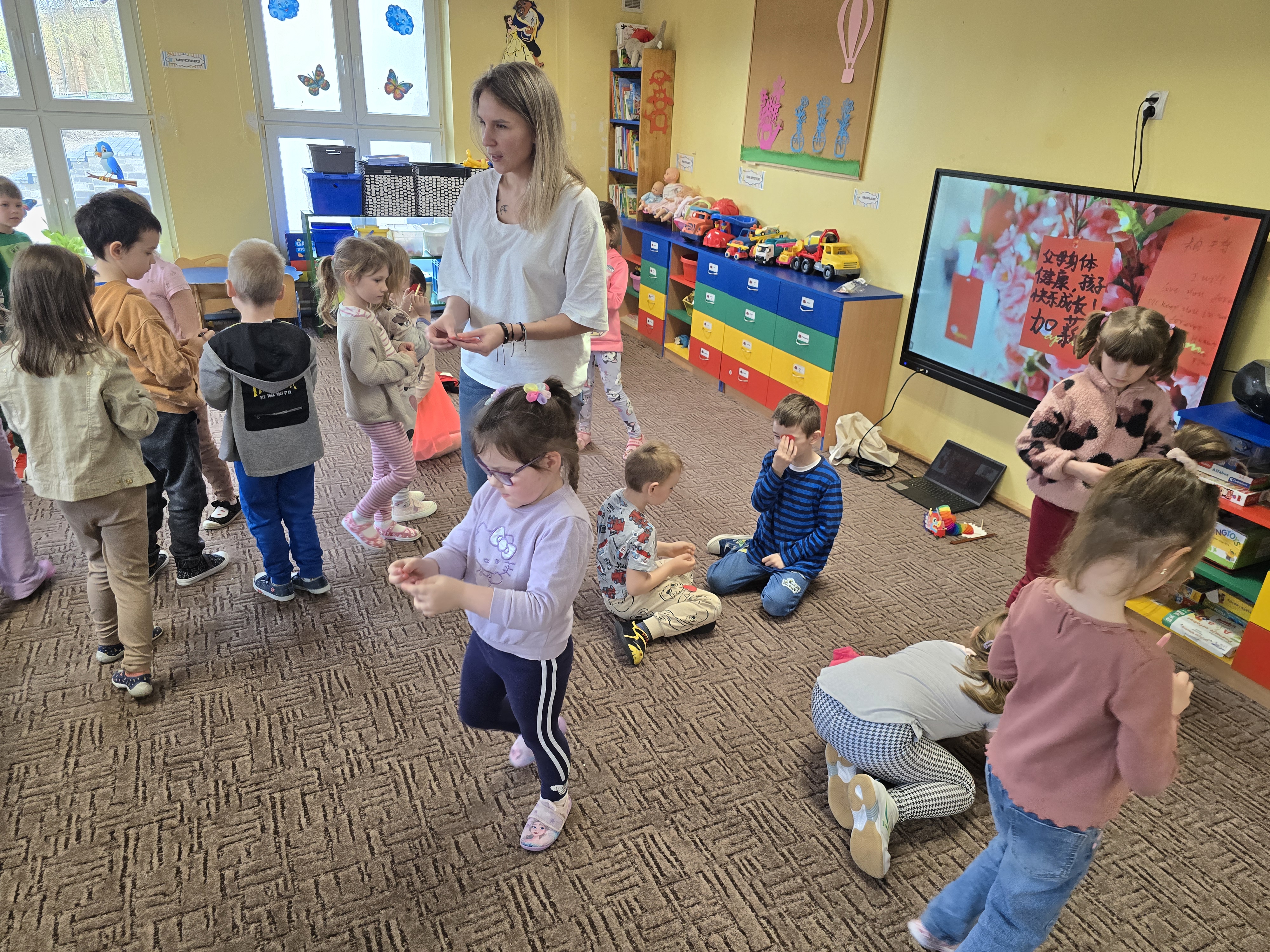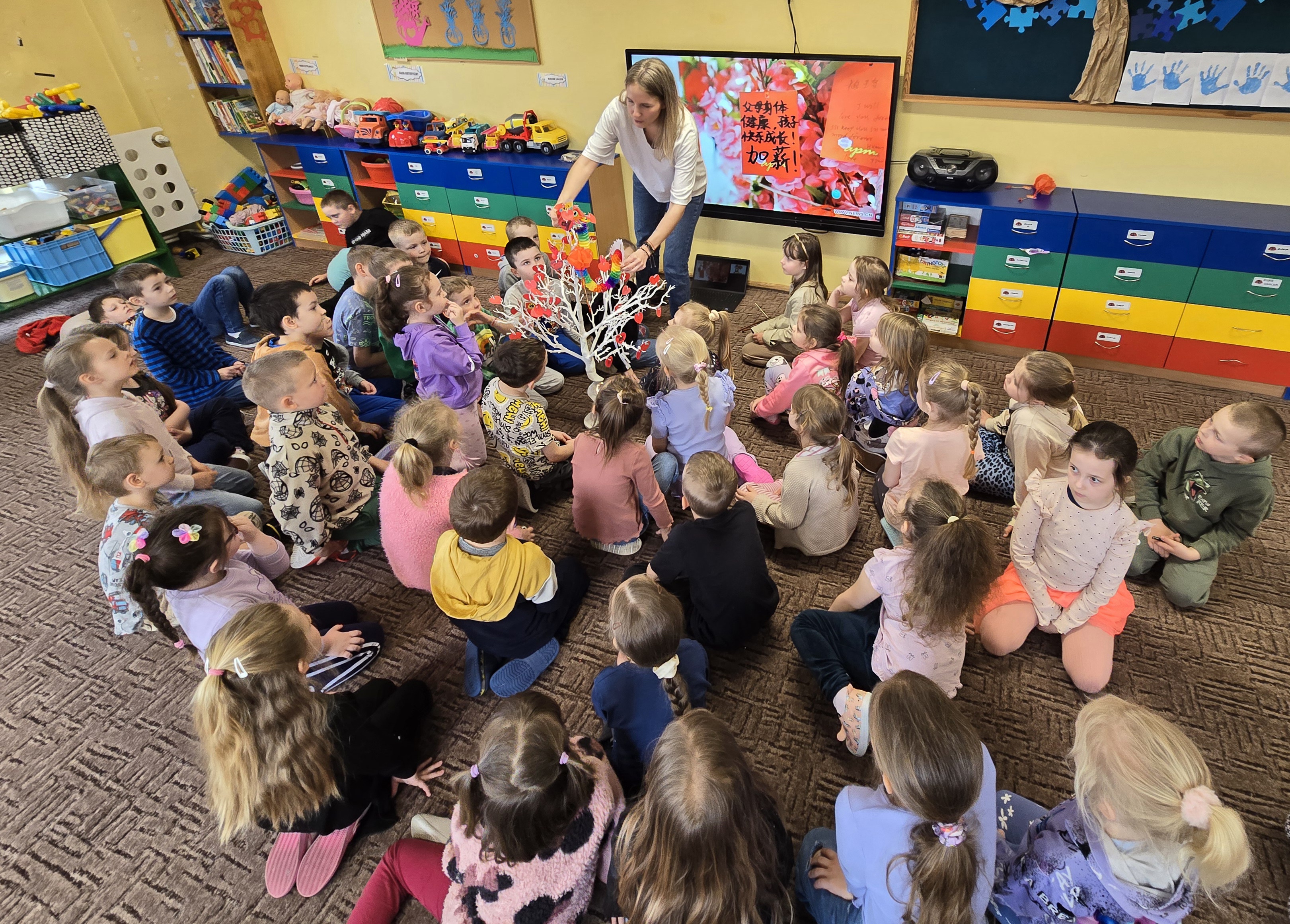 Nasze przedszkole odwiedziła Pani Aleksandra Brzostek-Przybyszewska, wykładowca jezyka chińskiego na UMK w Toruniu. Przybliżyła ona dzieciom historię i kulturę Chin, przedtawiła Postać Smoka oraz pismo chińskie, uważane za jeden z najstarszych systemów zapisu na świecie. Dzieci mogły też sprawności posługiwania się patyczkami.