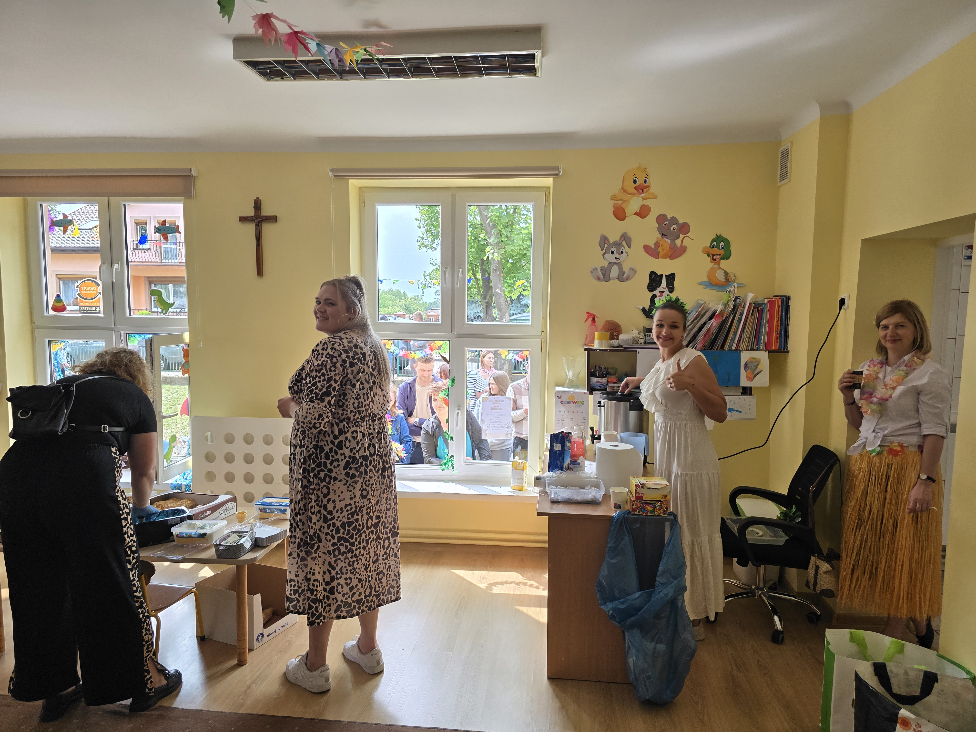 Uroczystość ta też nie mogła odbyć sie bez dużego zaangażowania Rodziców, którzy zajęli sie prowadzeniem kawiarenki; wydawaniem: kiełbasek z grilla, hot -dogów, waty cukrowej oraz wykonywaniem warkoczyków, malowaniem twarzy i tatuażami. Serdecznie dziękujemy !