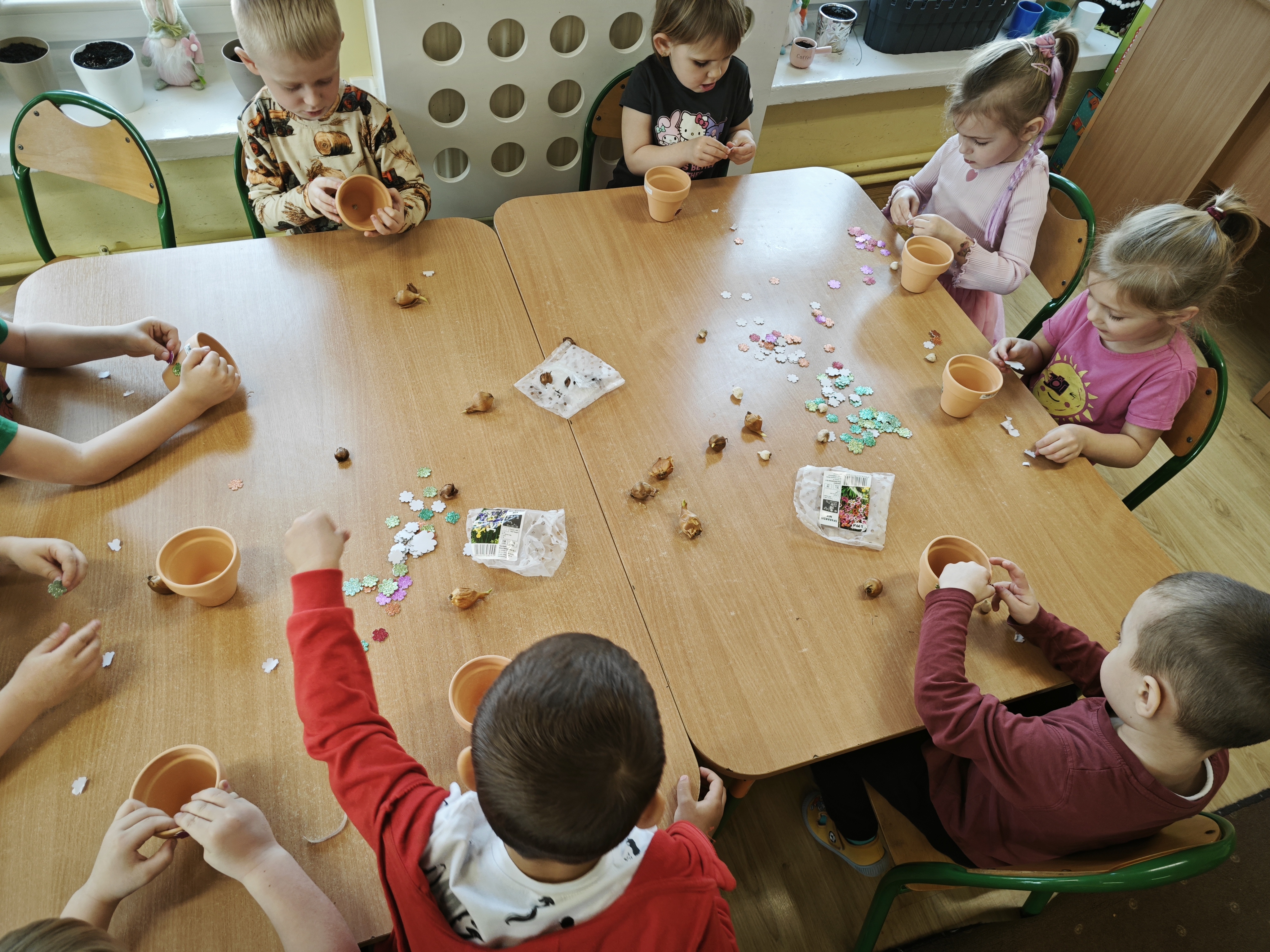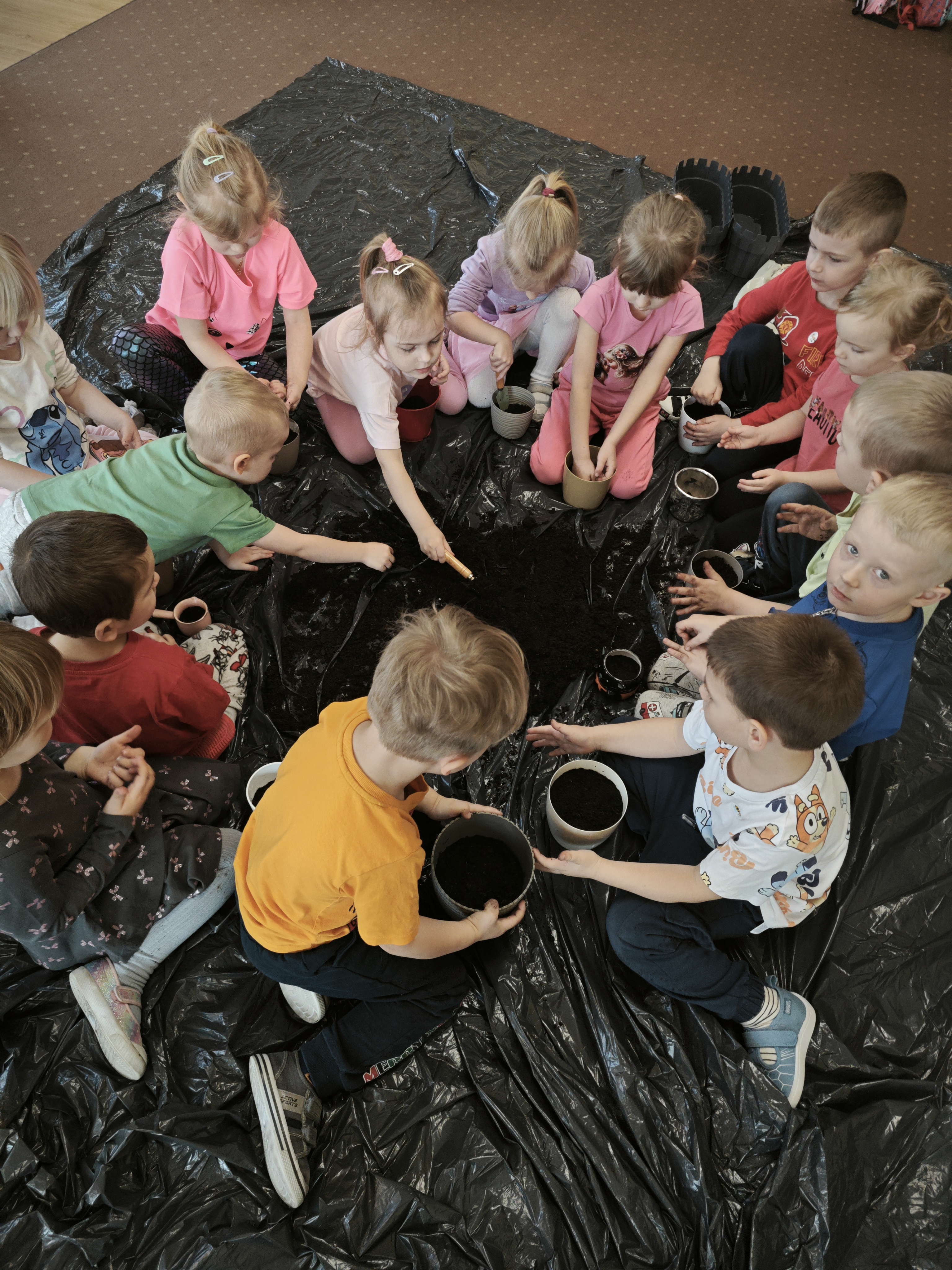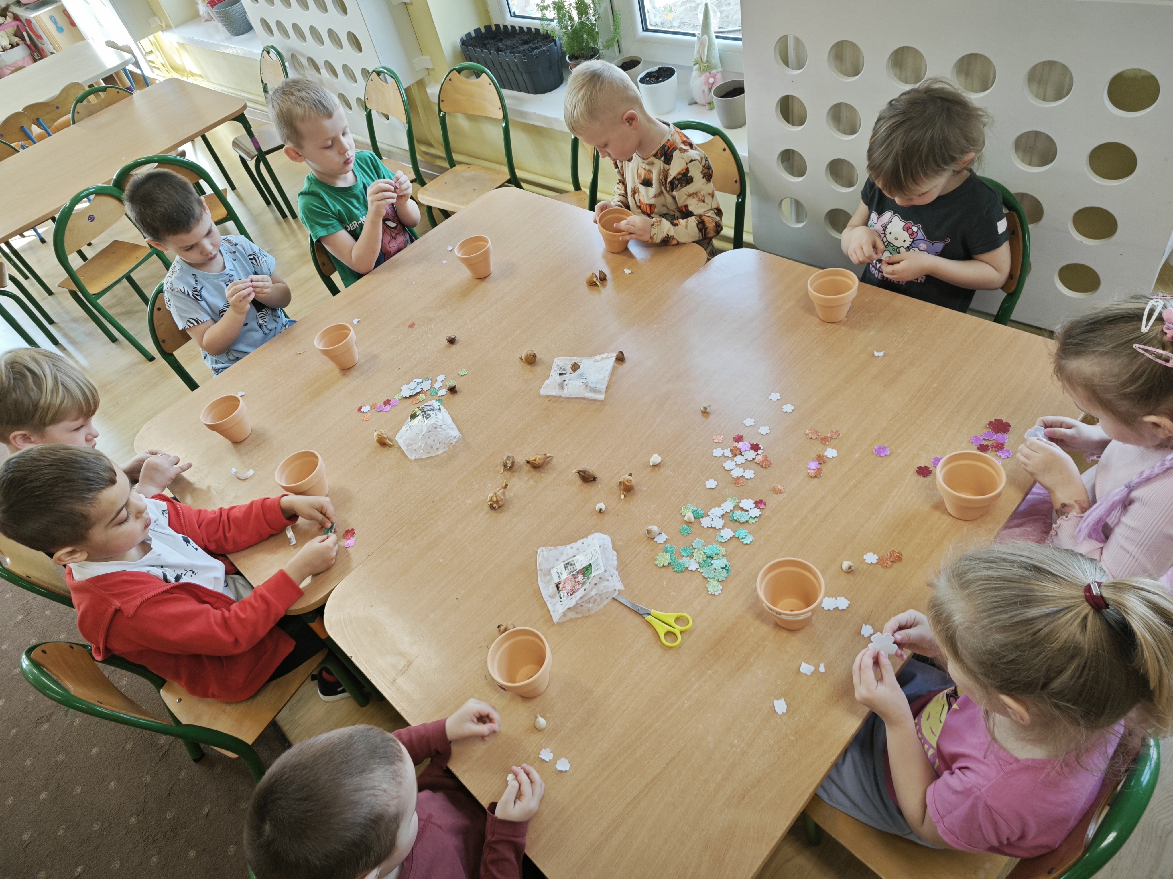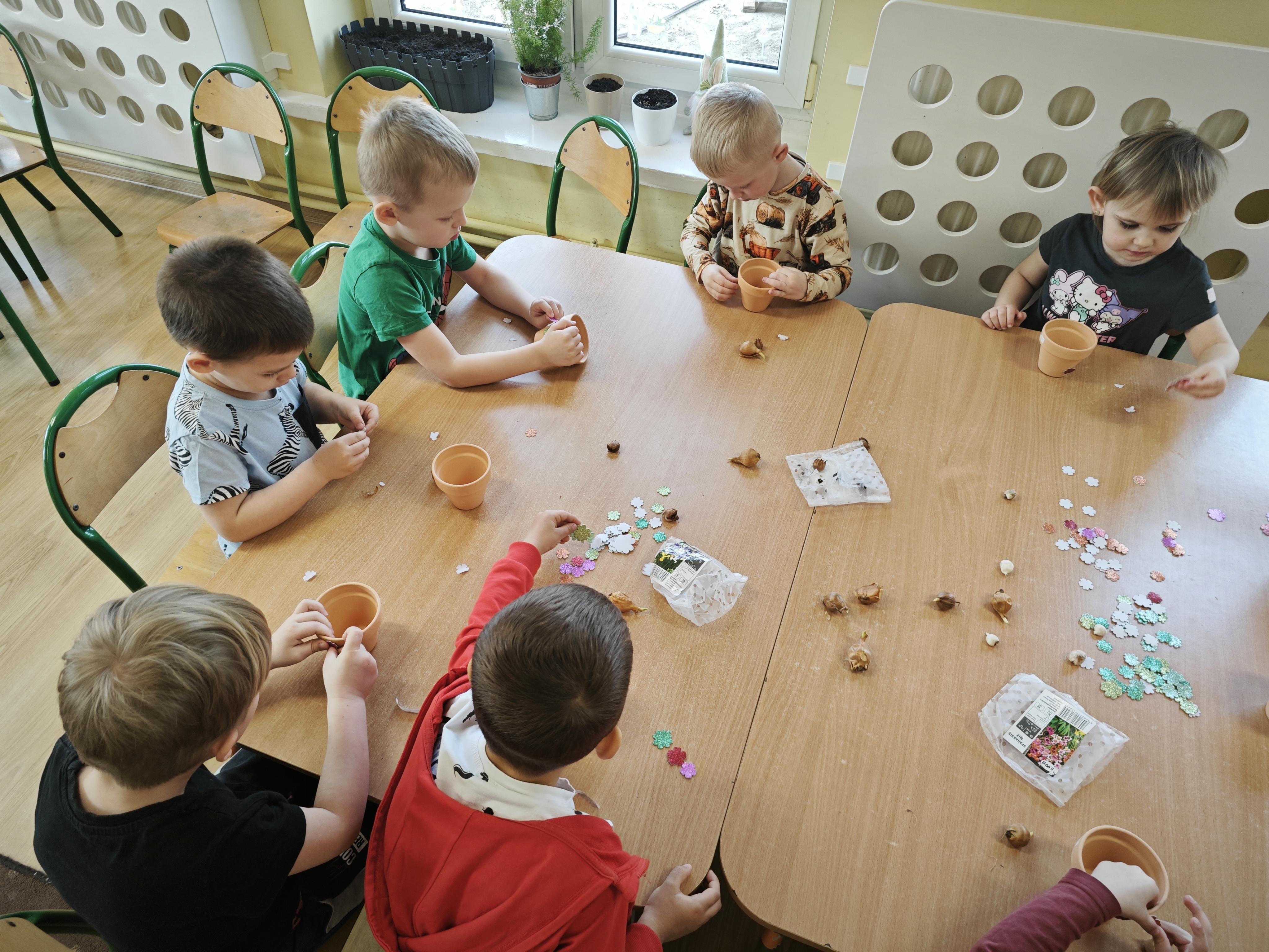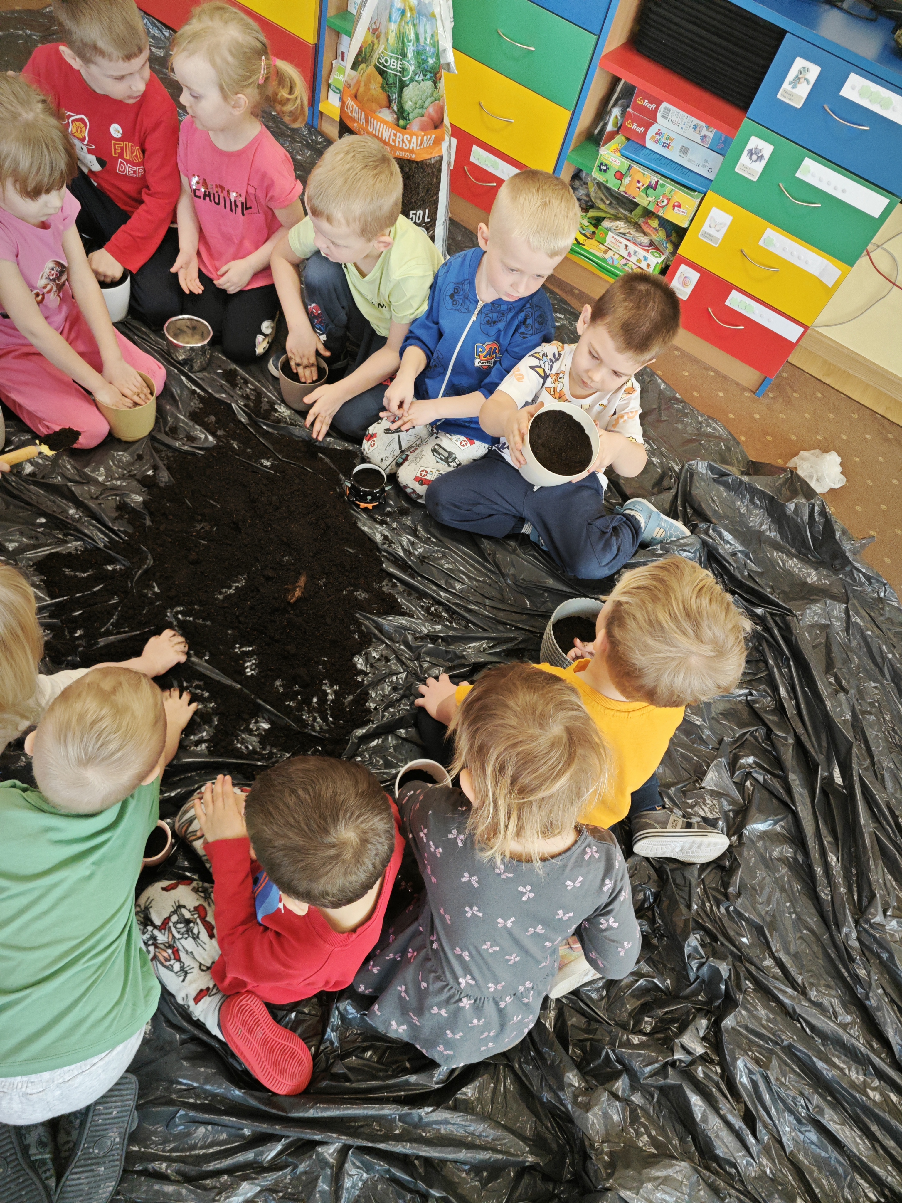 Powoli przygotowujemy się do wiosny. W tym roku urządziliśmy ogródek przedszkolny w naszej sali. Posadziliśmy sałatę, pomidory czy majeranek, a także stworzyliśmy kwietną rabatkę. Dzieci z zaangażowaniem brały udział w zajęciach.