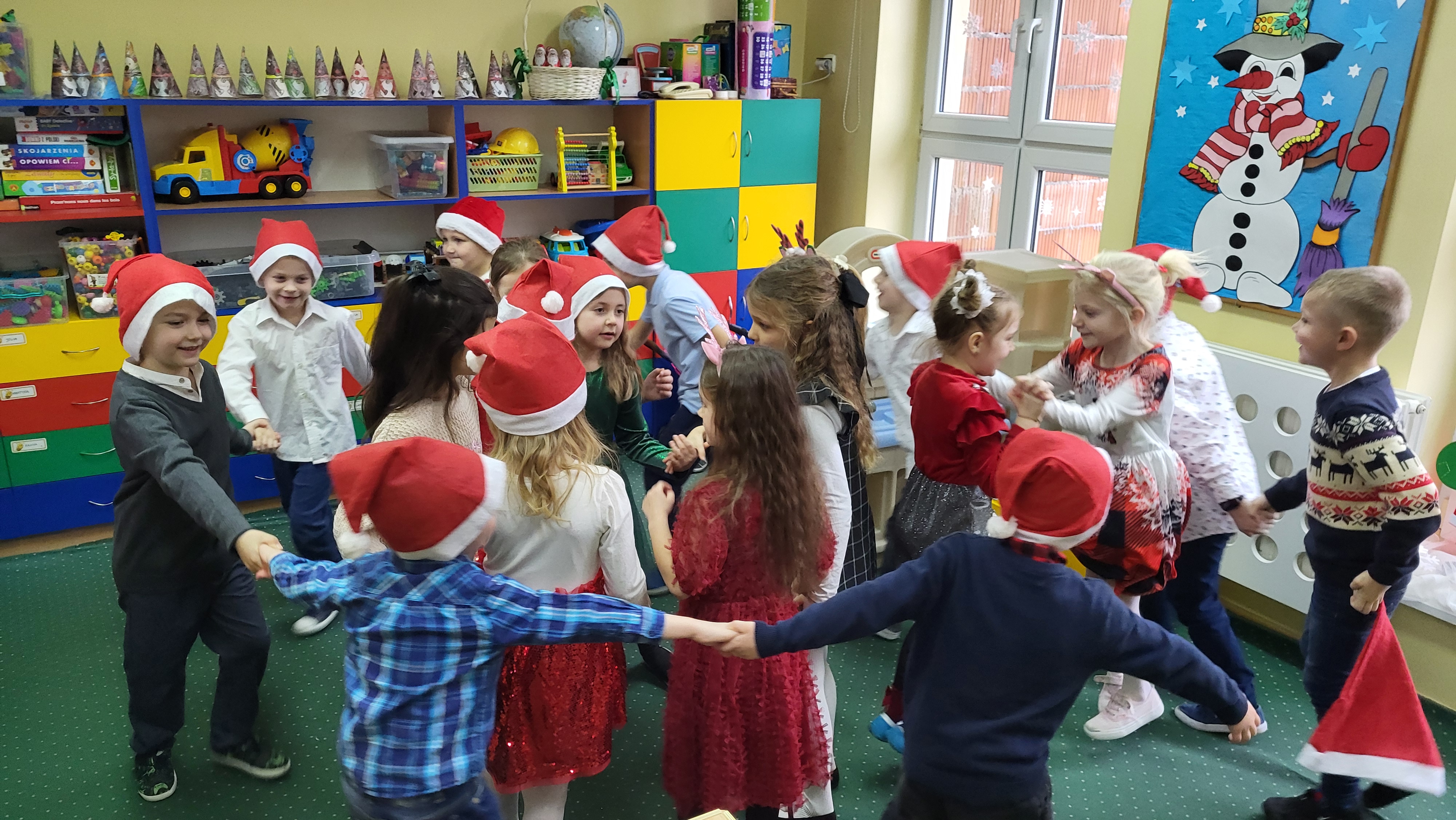 Dzieci z ogromnym zaangażowaniem zaśpiewały kilka kolęd po czym wszyscy wspólnie złożyliśmy sobie życzenia bożonarodzeniowe.