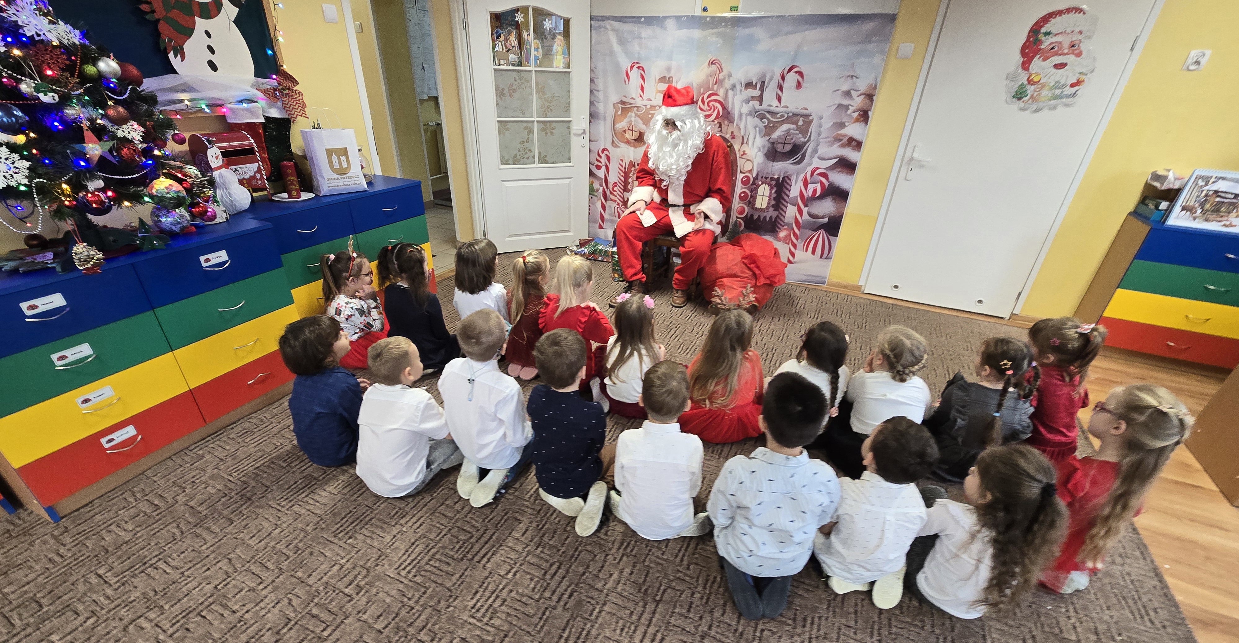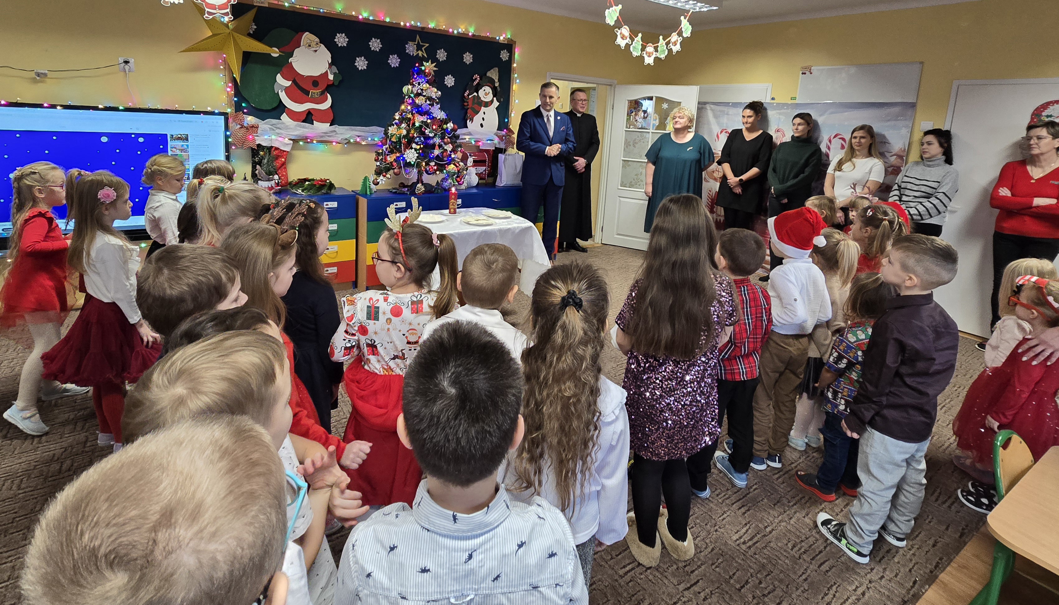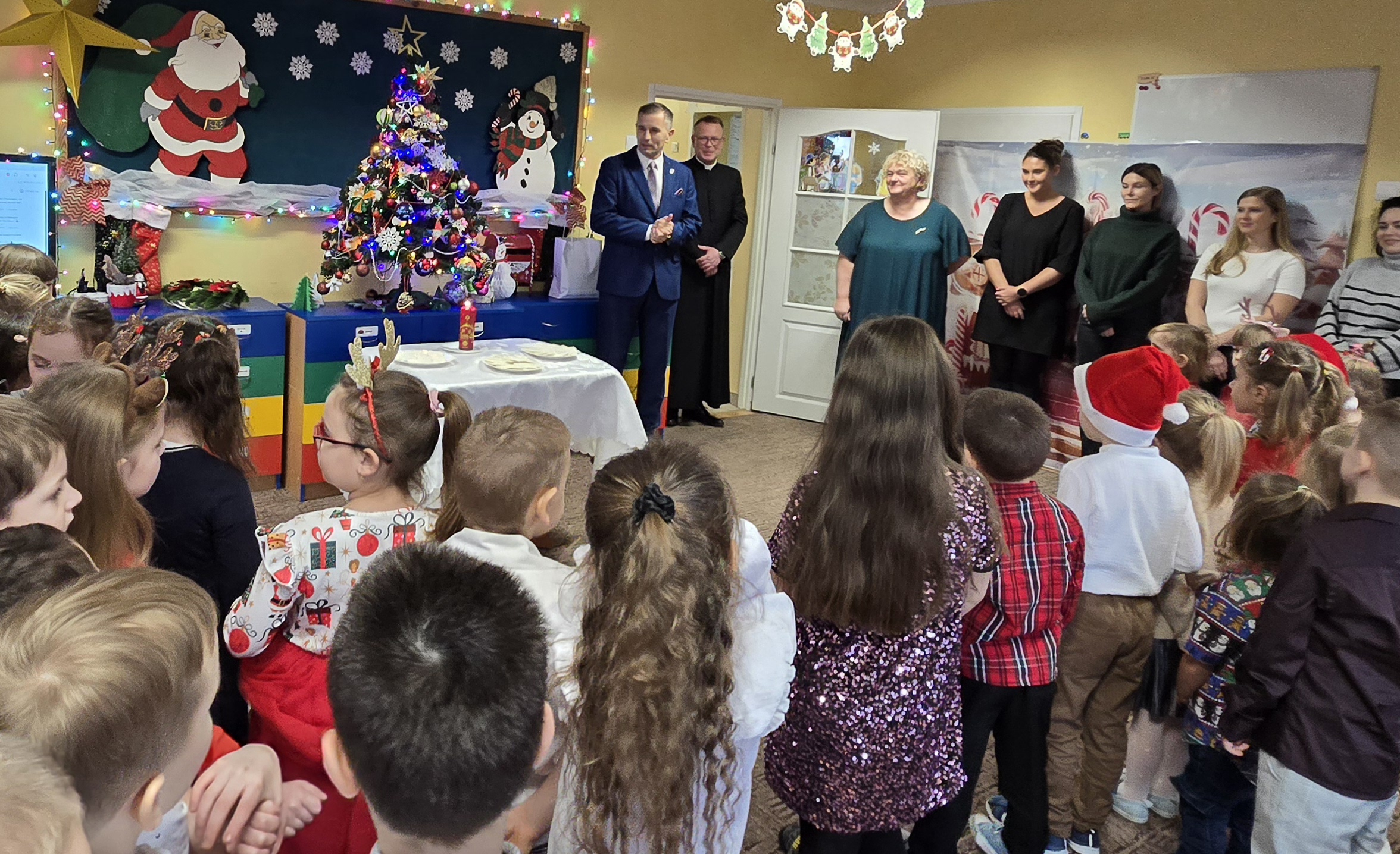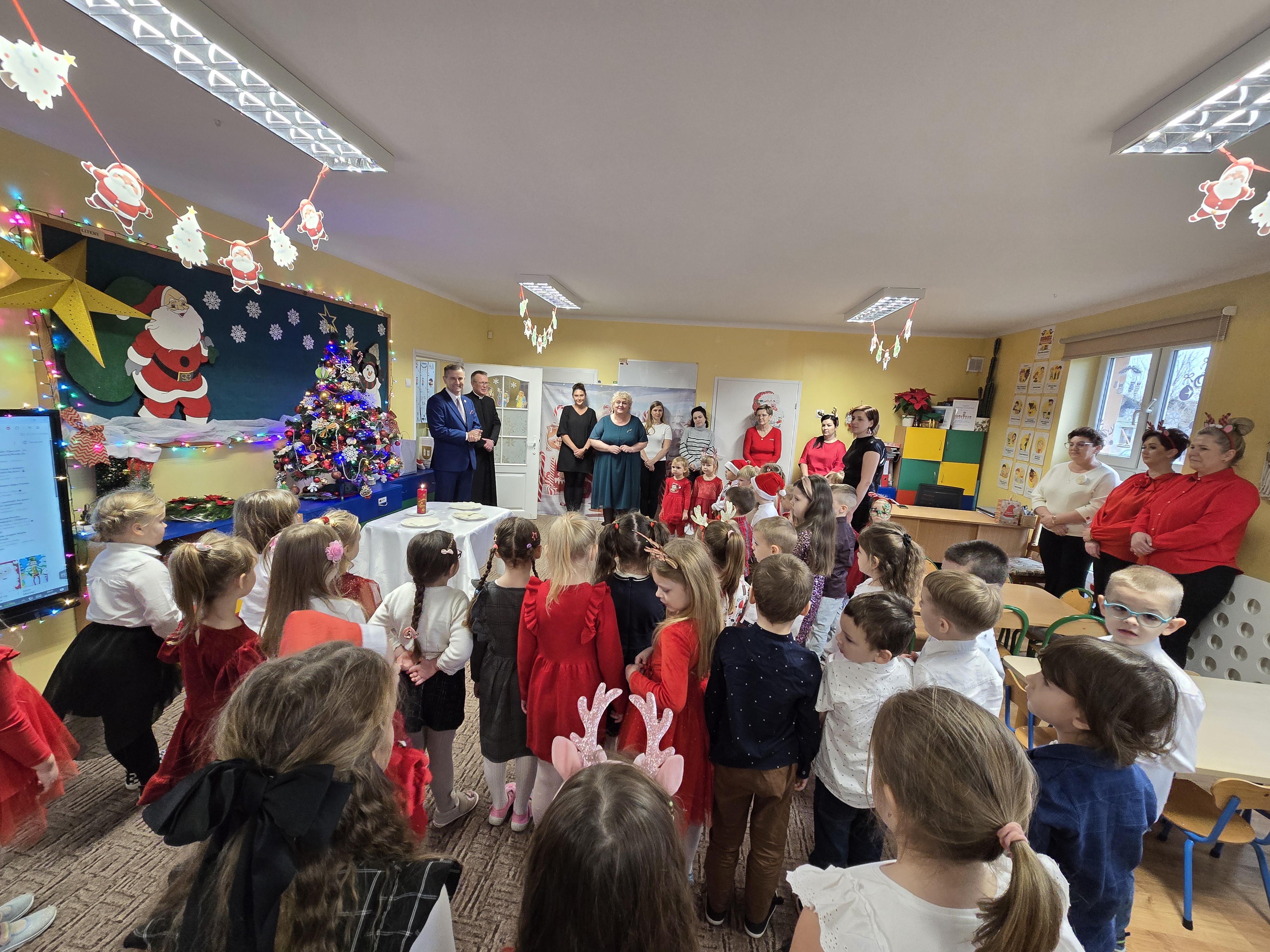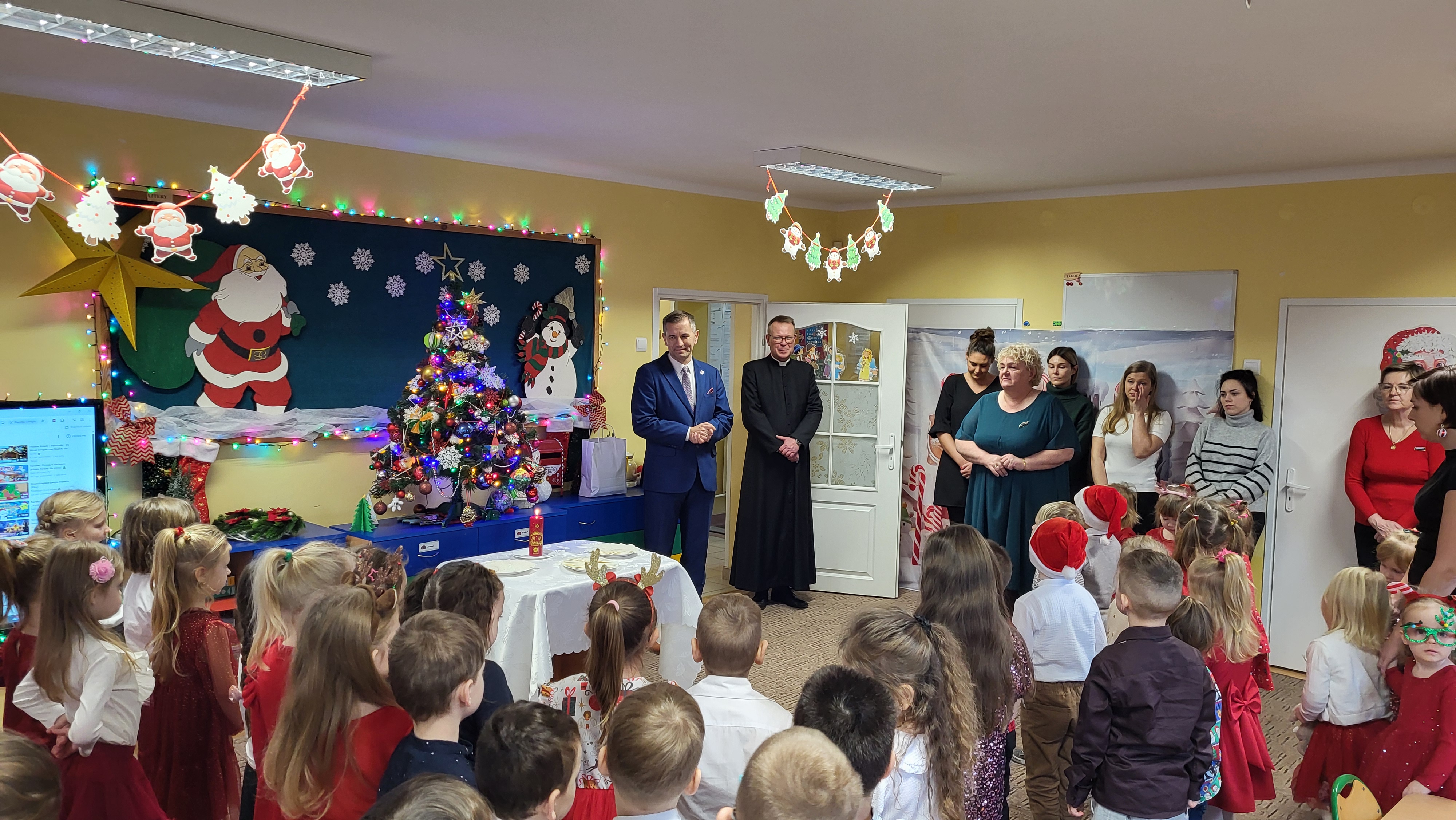 Podczas spotkania mieliśmy zaszczyt gościć: Pana Jarosława Sobańskiego - Burmistrza Miasta i Gminy Przedecz, Ksiądza Remigiusza Karolaka - Proboszcza Parafii Przedecz, Przedstawicielki Rady Rodziców oraz wyczekiwanego przez dzieci Mikołaja.