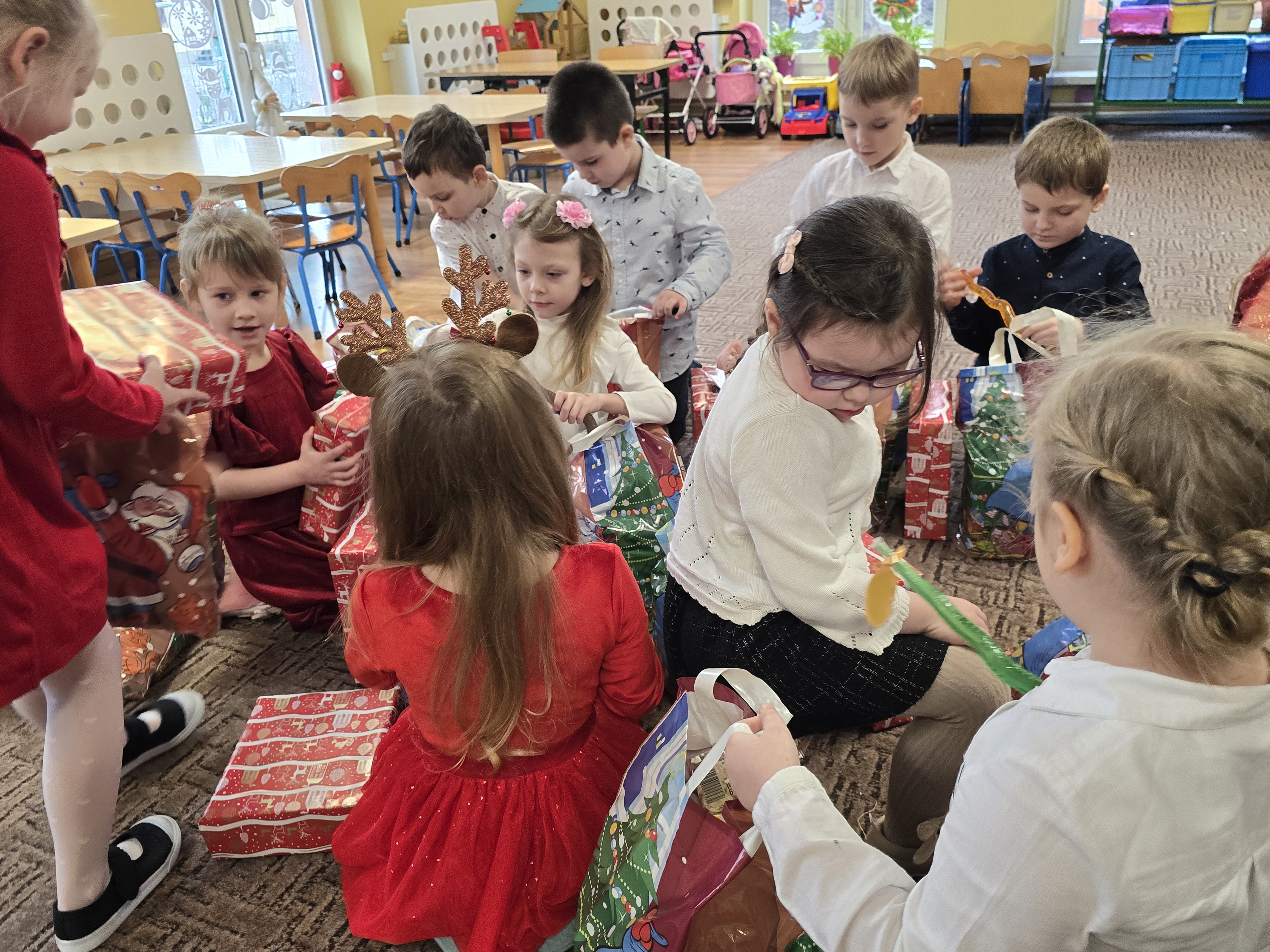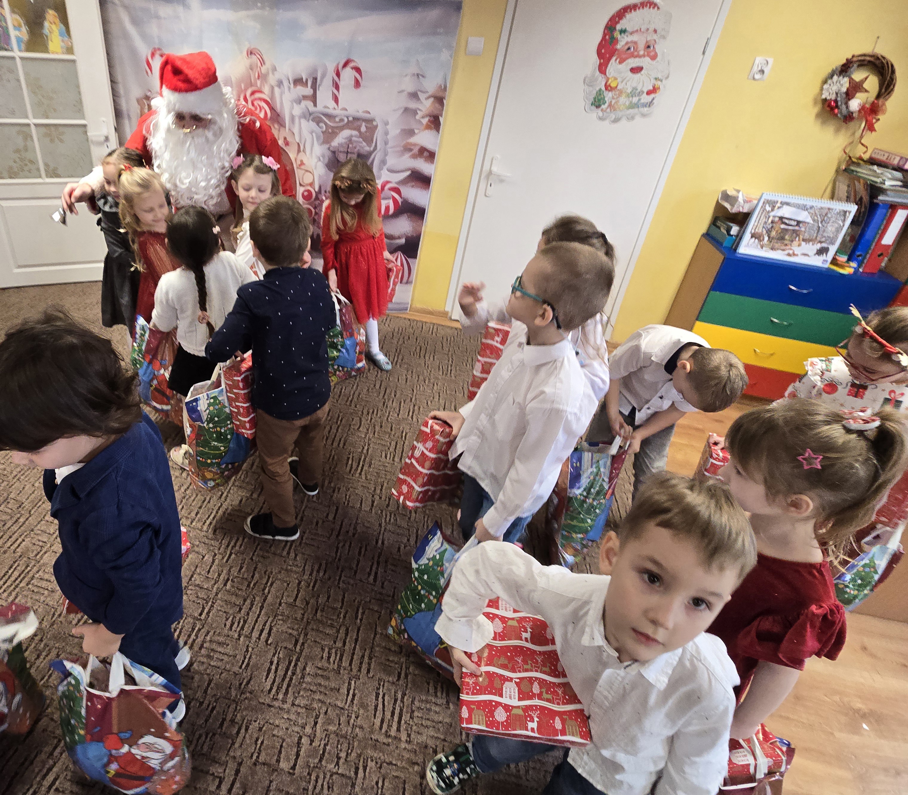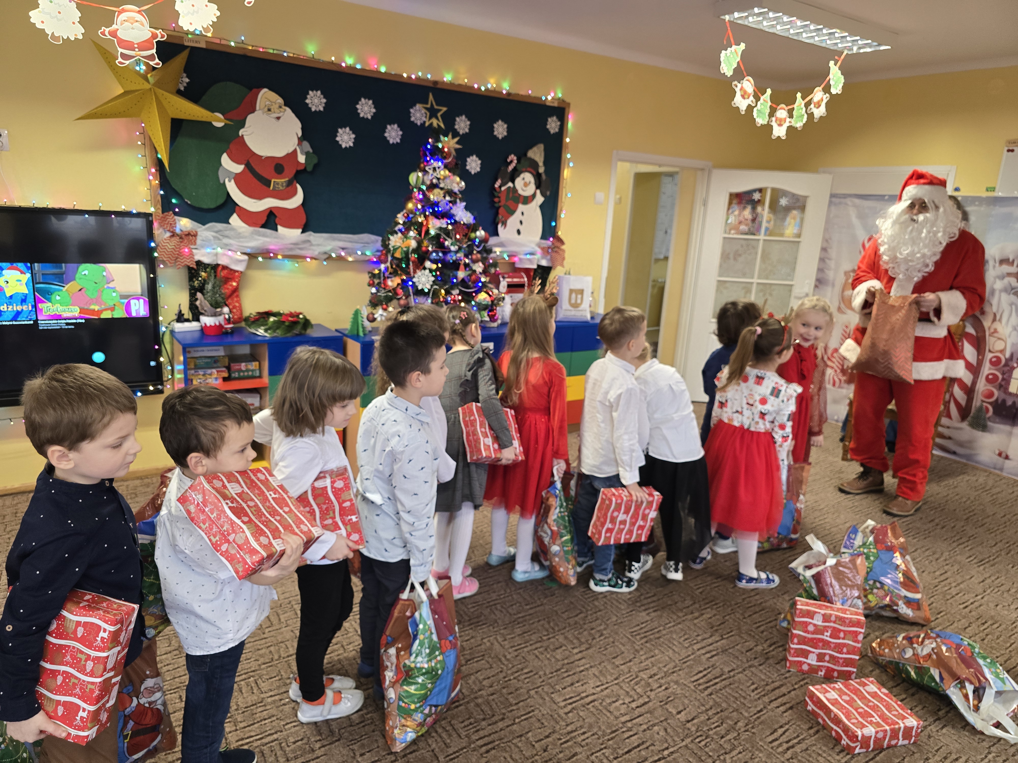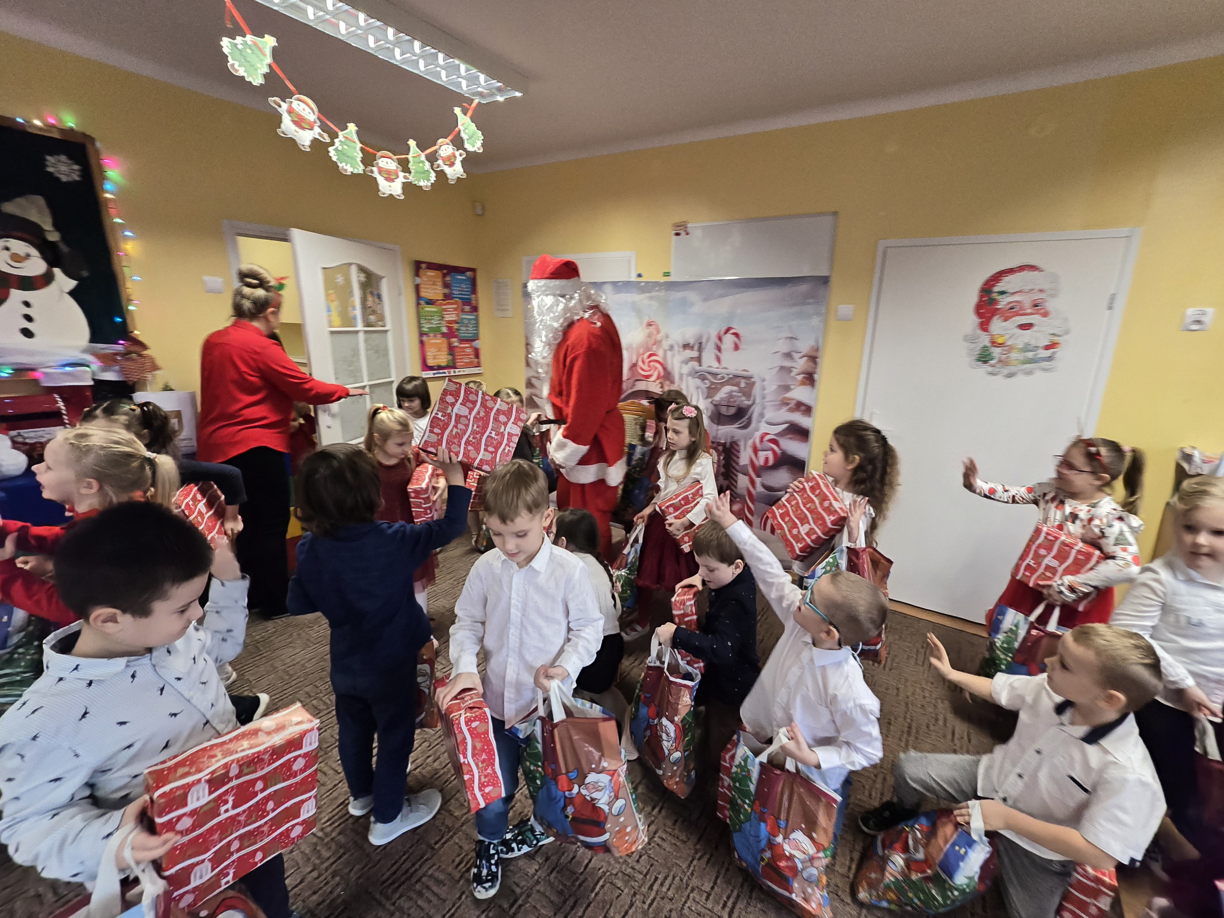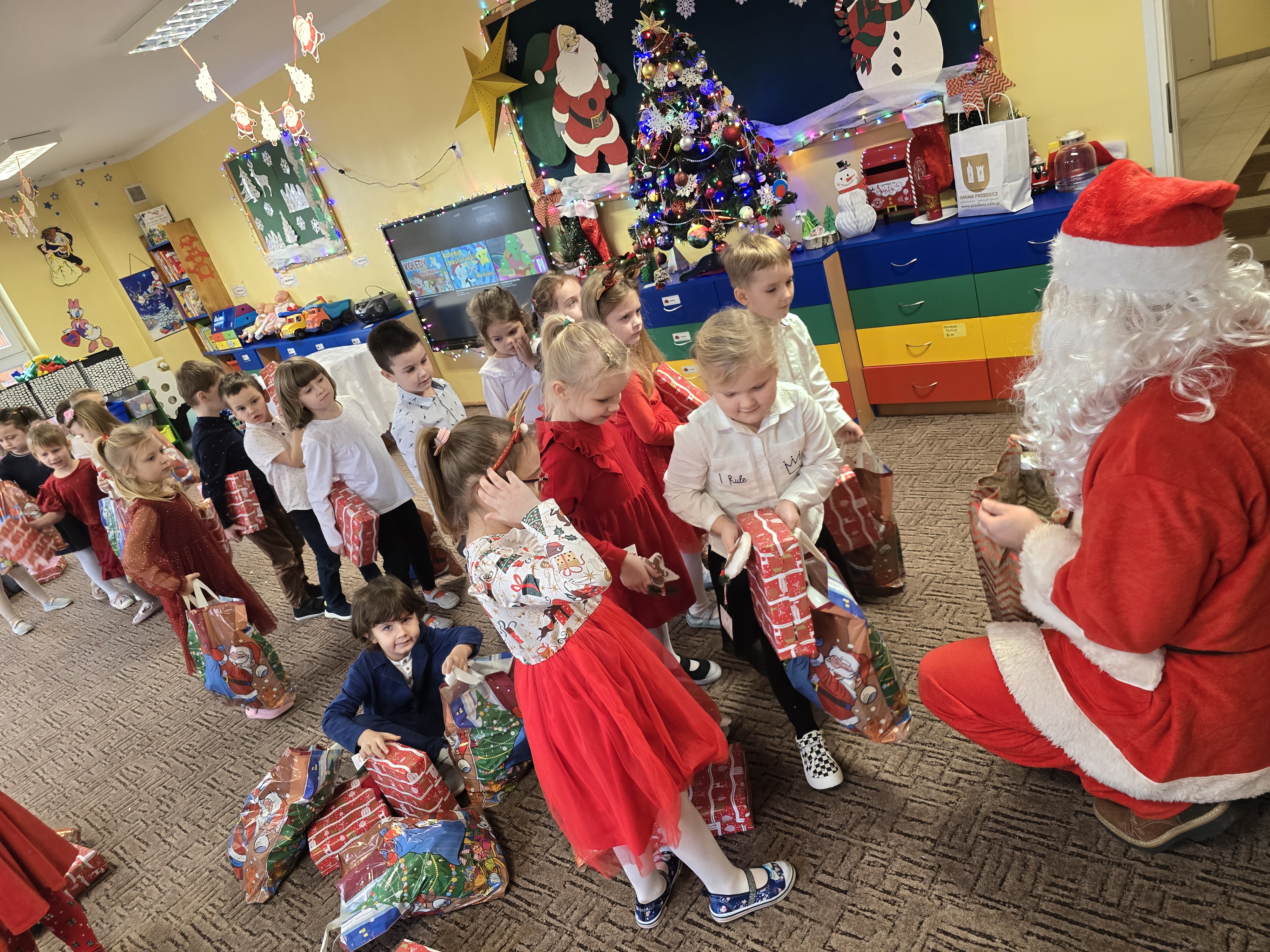 Mikołaj jak zawsze obdarował dzieci dużymi paczkami. Był to emocjonujący, radosny dzień.