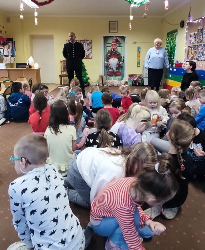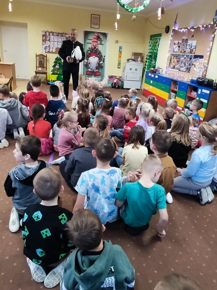 Górnik opowiedział o swojej codziennej pracy, obowiązkach oraz zasadach bezpieczeństwa podczas zjazdów na dół kopalni. Dzieci dowiedziały się, na jakich głębokościach prowadzone są prace, jakie maszyny wykorzystywane są do wydobycia oraz jak wygląda współczesna technologia stosowana w polskim górnictwie solnym.