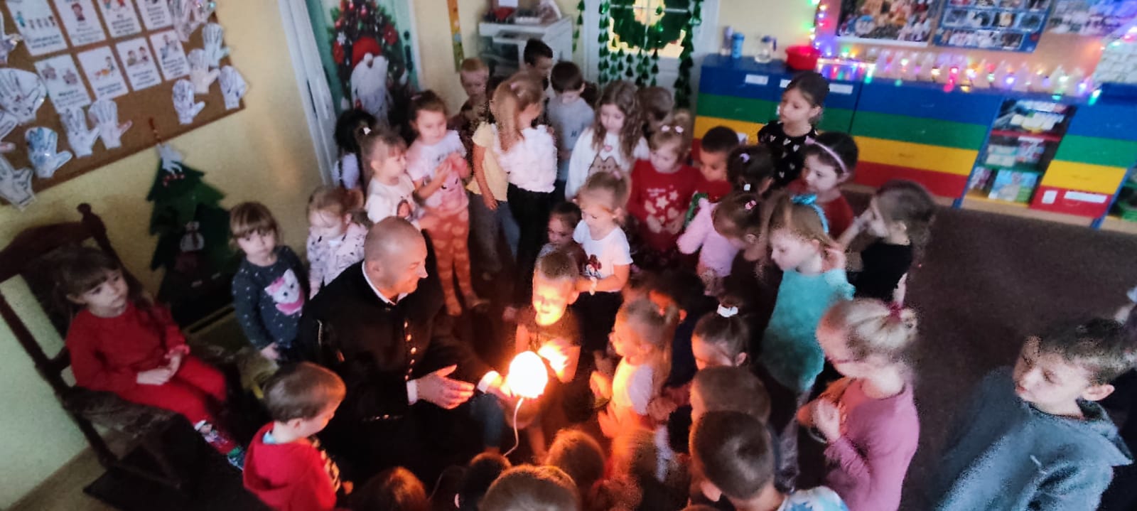18 grudnia 2025 roku w naszym przedszkolu odbyło się spotkanie z górnikiem pracującymi w Kopalni Soli w Kłodawie – jednej z najstarszych i najgłębszych czynnych kopalni soli w Polsce. Wizyta ta była wyjątkową okazją do poznania specyfiki pracy pod ziemią oraz historii wydobycia soli kamiennej.