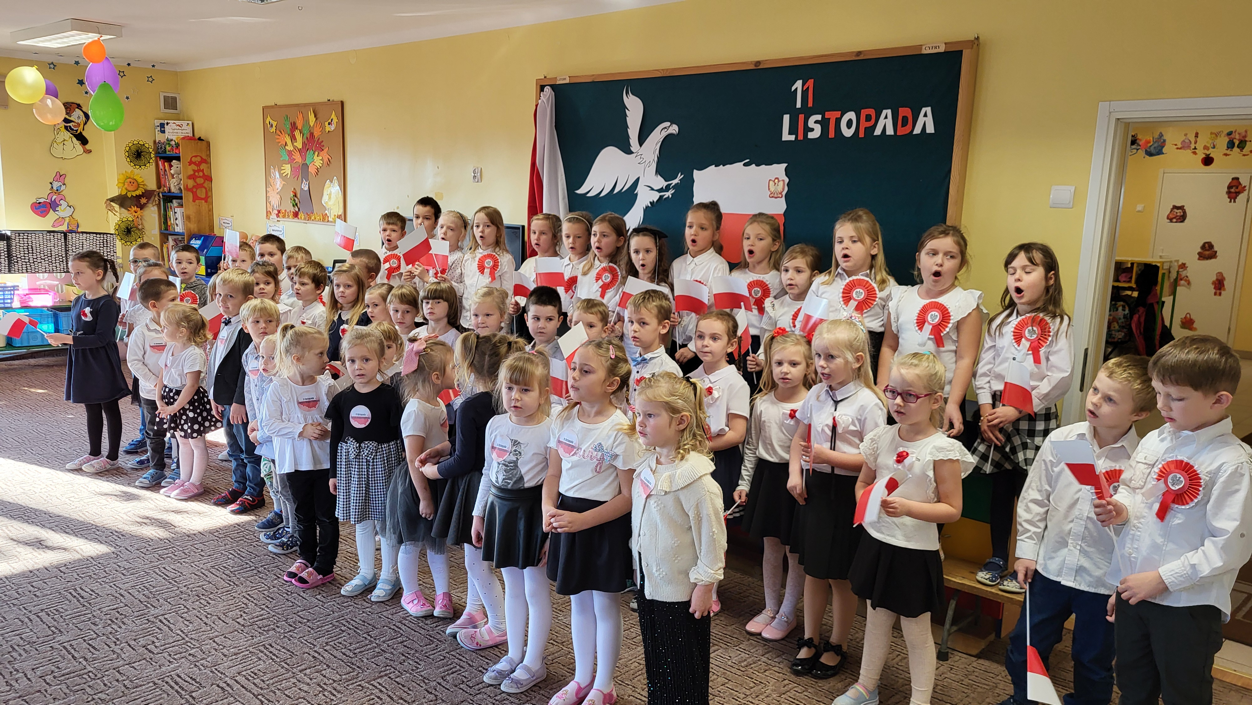 W piątek 07.11.2025r Nasze Przedszkole wzięło udział w kolejnej edycji akcji Ministerstwa Edukacji Narodowej - "Szkoła do Hymnu". Akcja ta powstała z okazji 100 rocznicy odzyskania przez Polskę niepodległości i od 2018 roku stała się piękną tradycją. Dzieci i nauczyciele w ostatni dzień roboczy przed Narodowym Świętem Niepodległości o symbolicznej godzinie 11:11 zaśpiewali „Mazurka Dąbrowskiego”. W ten sposób chcemy włączyć społeczność przedszkolną we wspólne świętowanie kolejnej rocznicy odzyskania przez Polskę niepodległości. Ponadto dzieci pięknie wyrecytowały wiersz Władysława Bełzy "Katechizm polskiego dziecka", wykonały prace plastyczne oraz obejrzały film edukacyjny poświęcony tematyce 11 listopada.