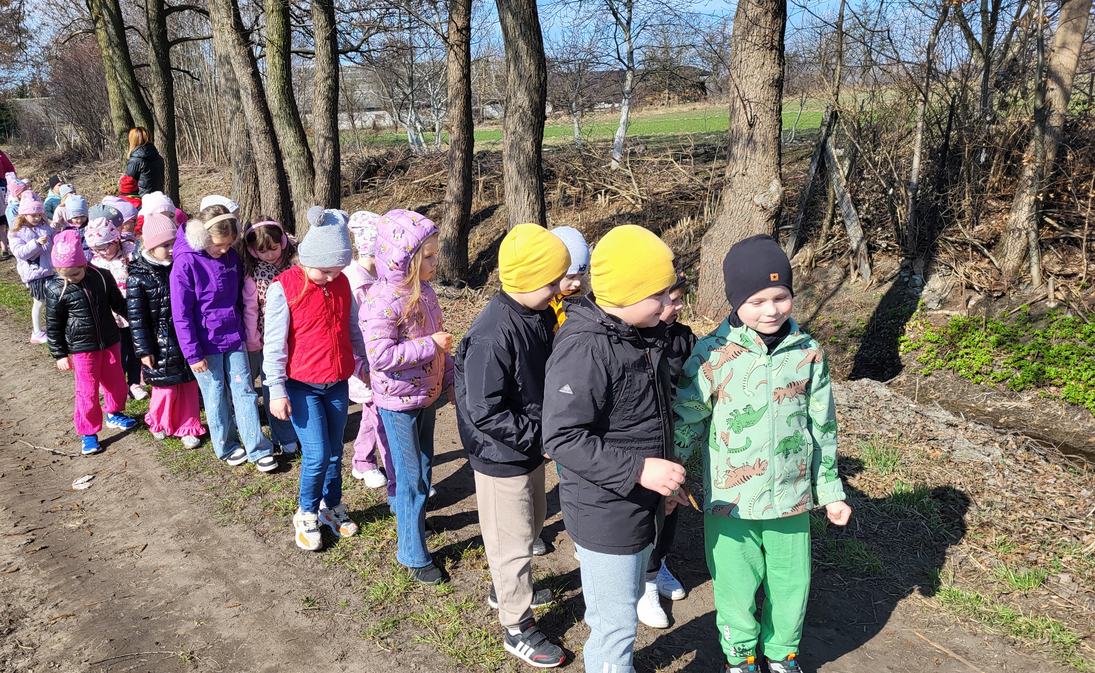 Szukanie oznak wiosny to obserwacja budzącej się do życia przyrody. Dziś nasze przedszkolaki zamieniły się w prawdziwych odkrywców! Wybraliśmy się na wiosenny spacer, aby sprawdzić, czy zima planuje nas opuścić. Choć wiatr jeszcze bywa chłodny, słońce świeciło tak mocno, że humory dopisywały nam od samego wyjścia z sali. Postanowiliśmy poszukać oznak wiosny na pobliskich polach, łąkach, w pobliżu jeziora przedeckiego oraz rzeki Noteć, płynącej przez naszą malowniczą miejscowość.