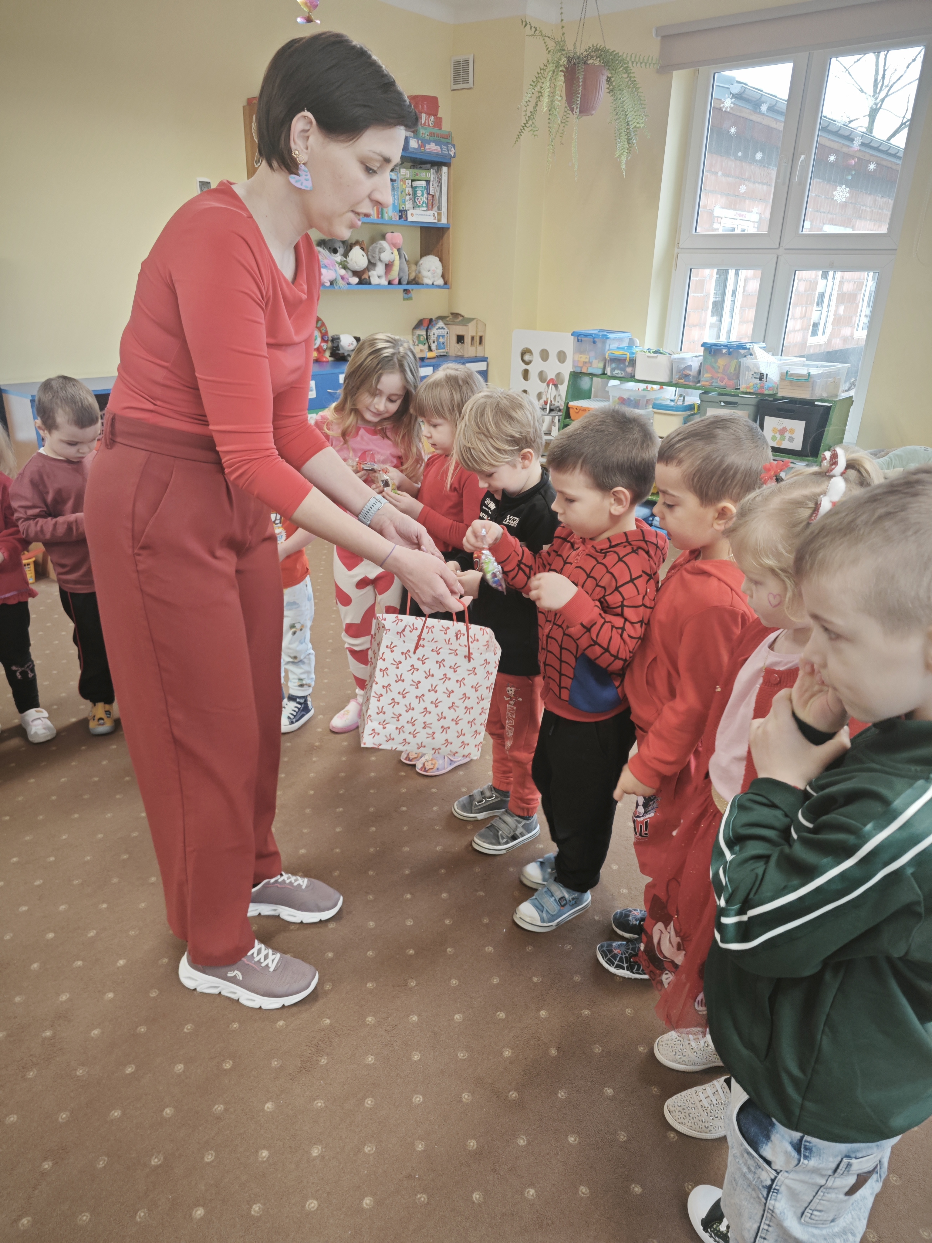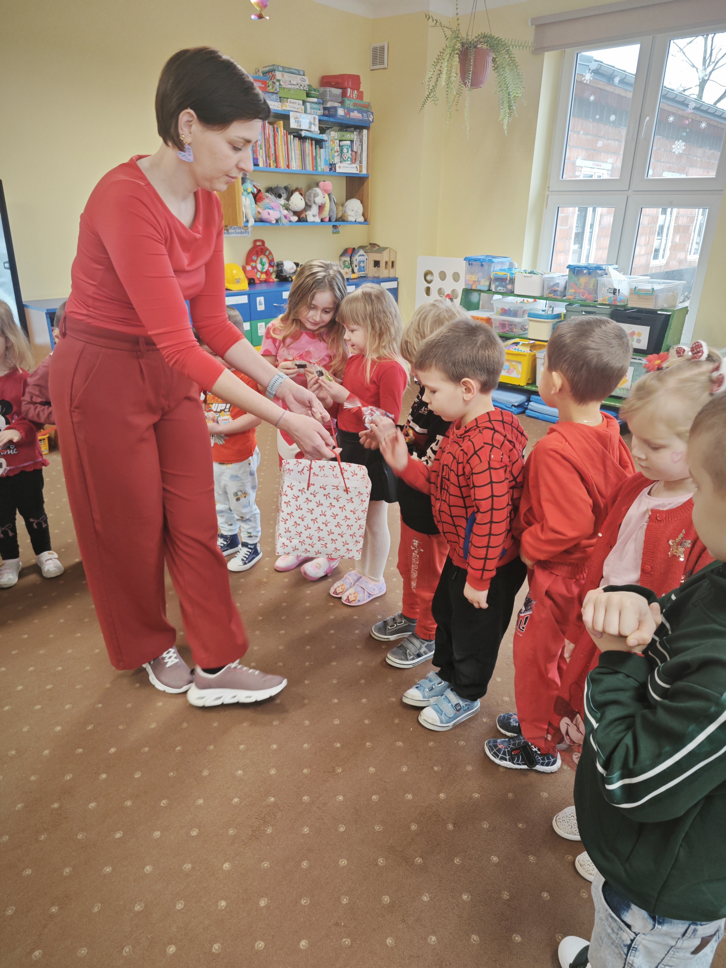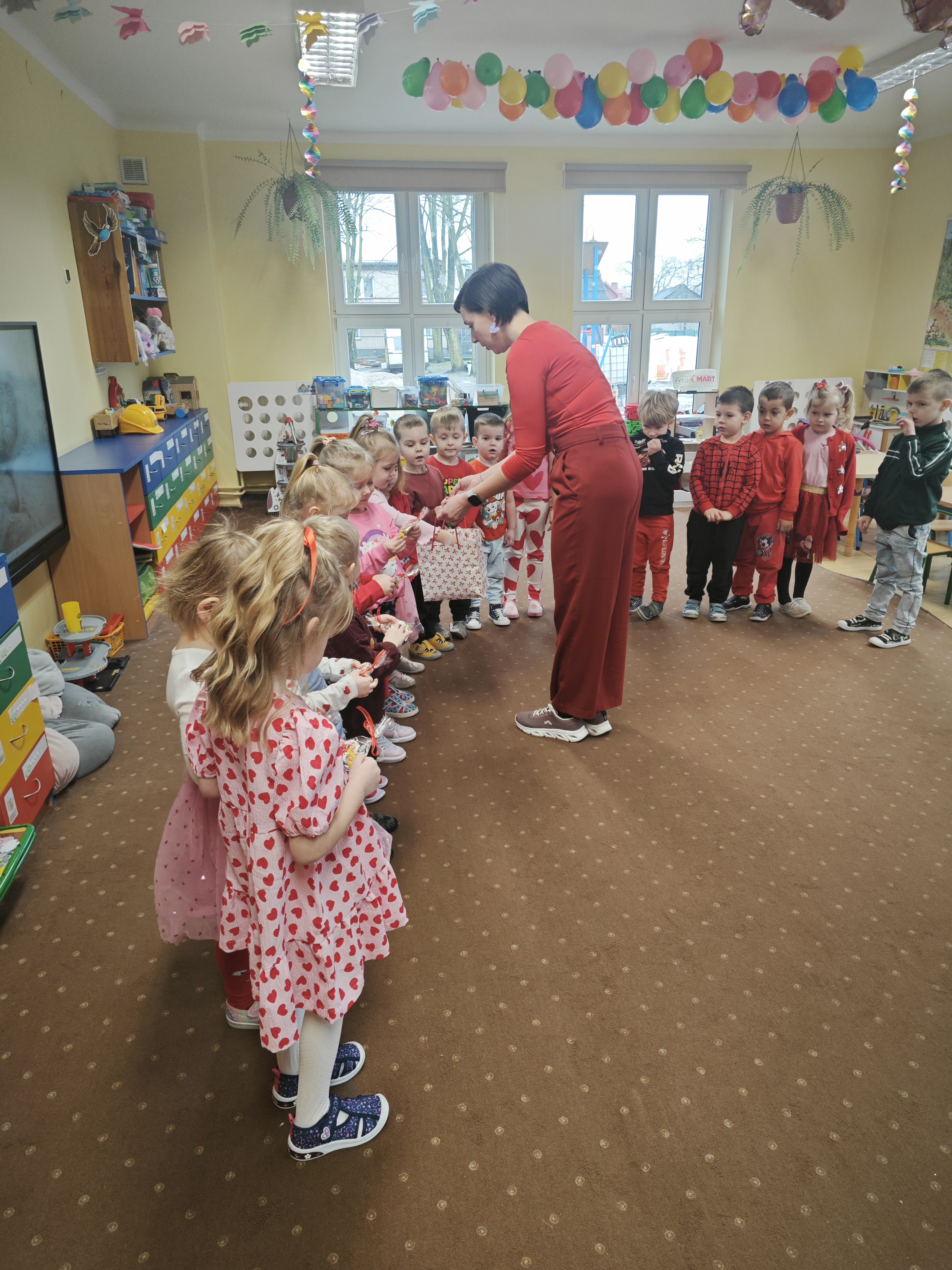Na koniec otrzymały małe, walentynkowe upominki, które przygotowali Rodzice, naszej grupy (za co bardzo Państwu dziękuję) .