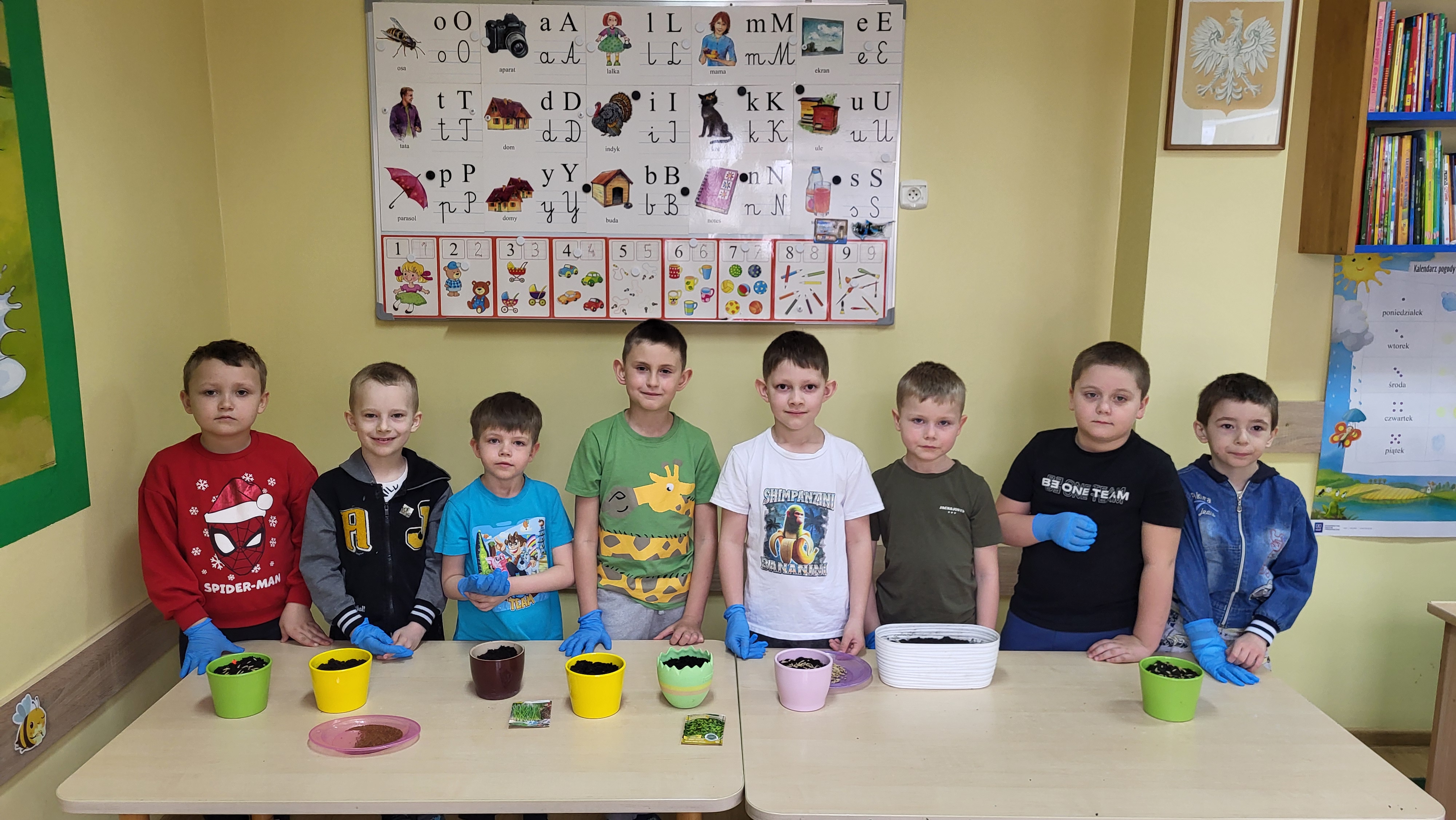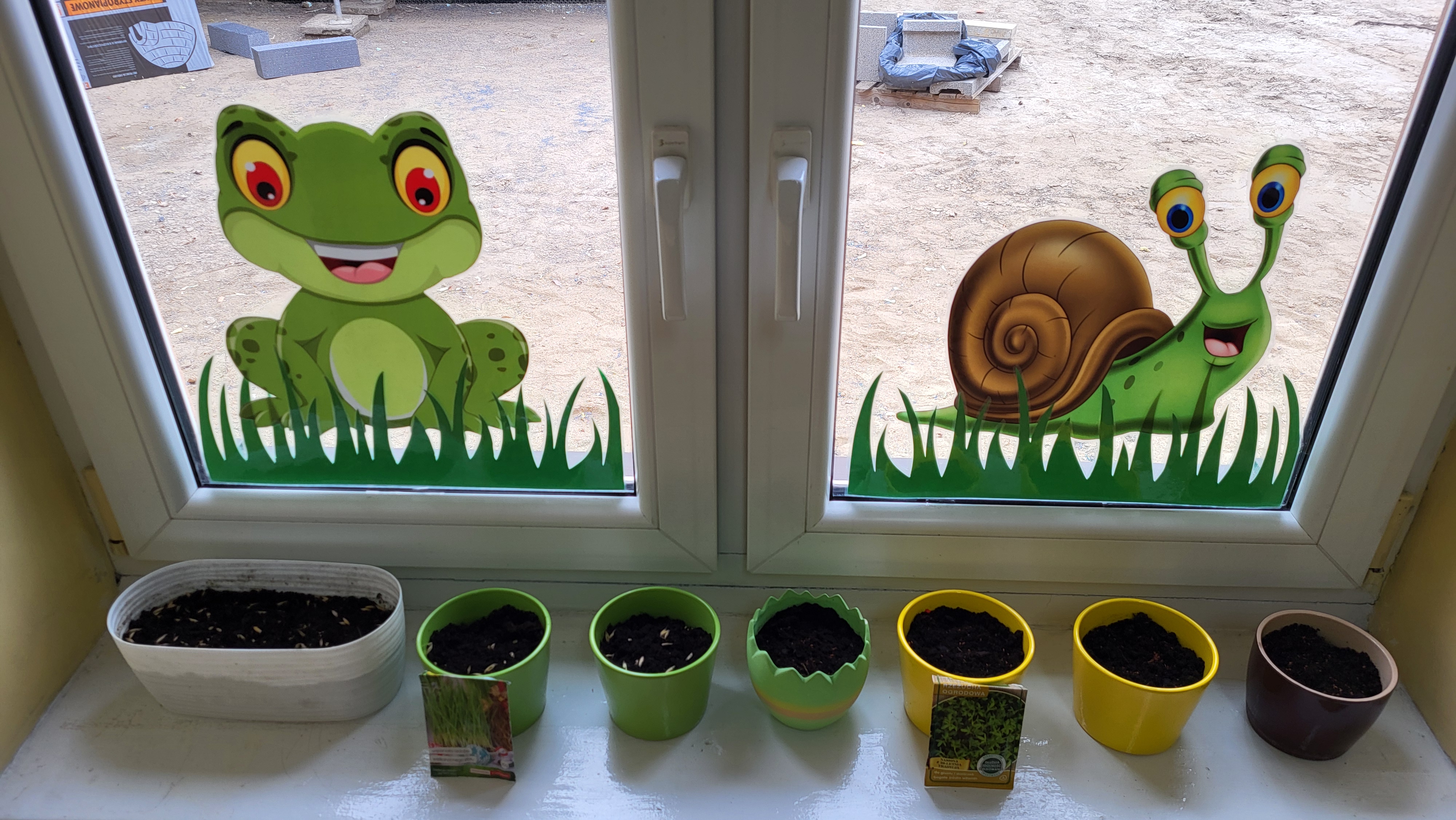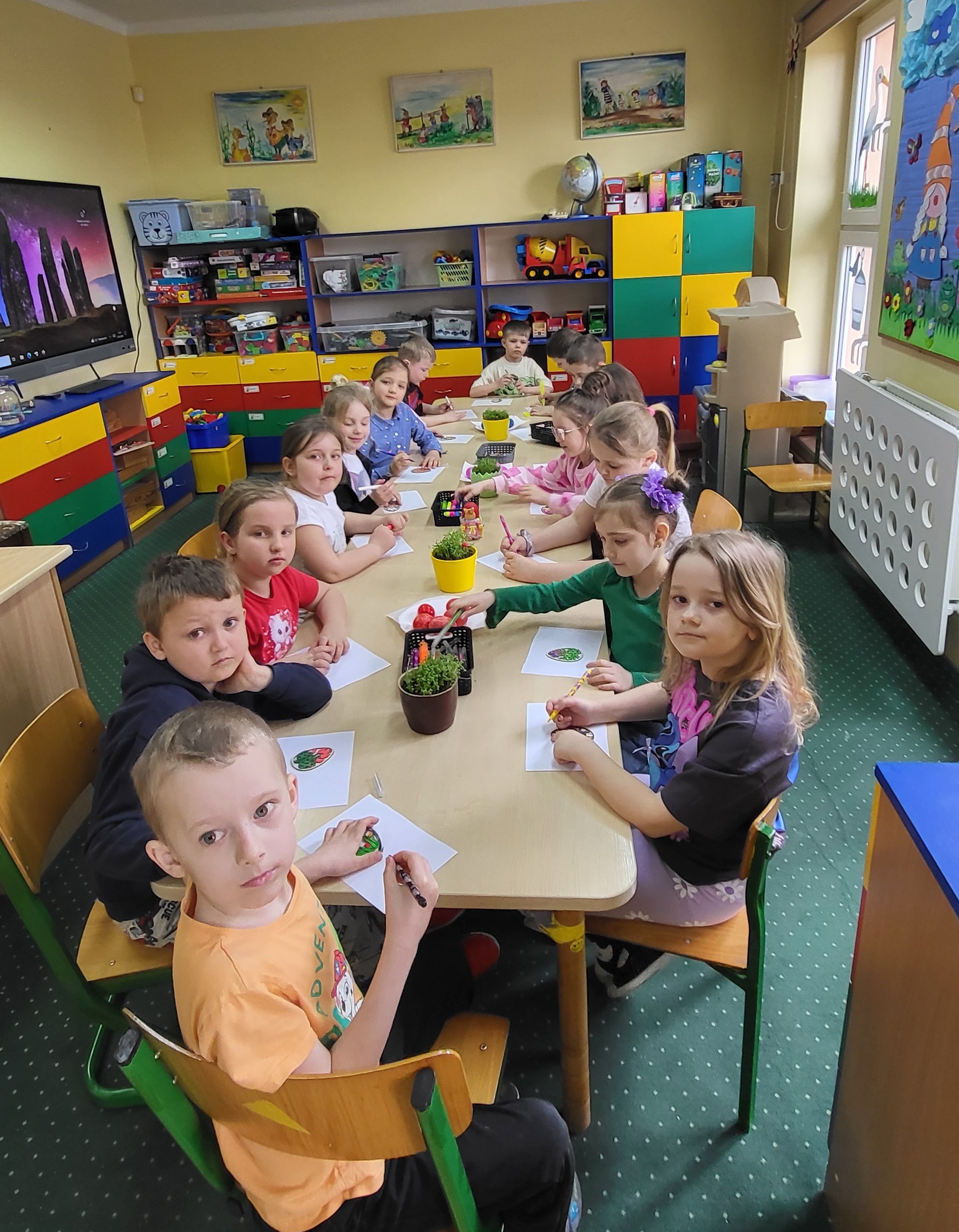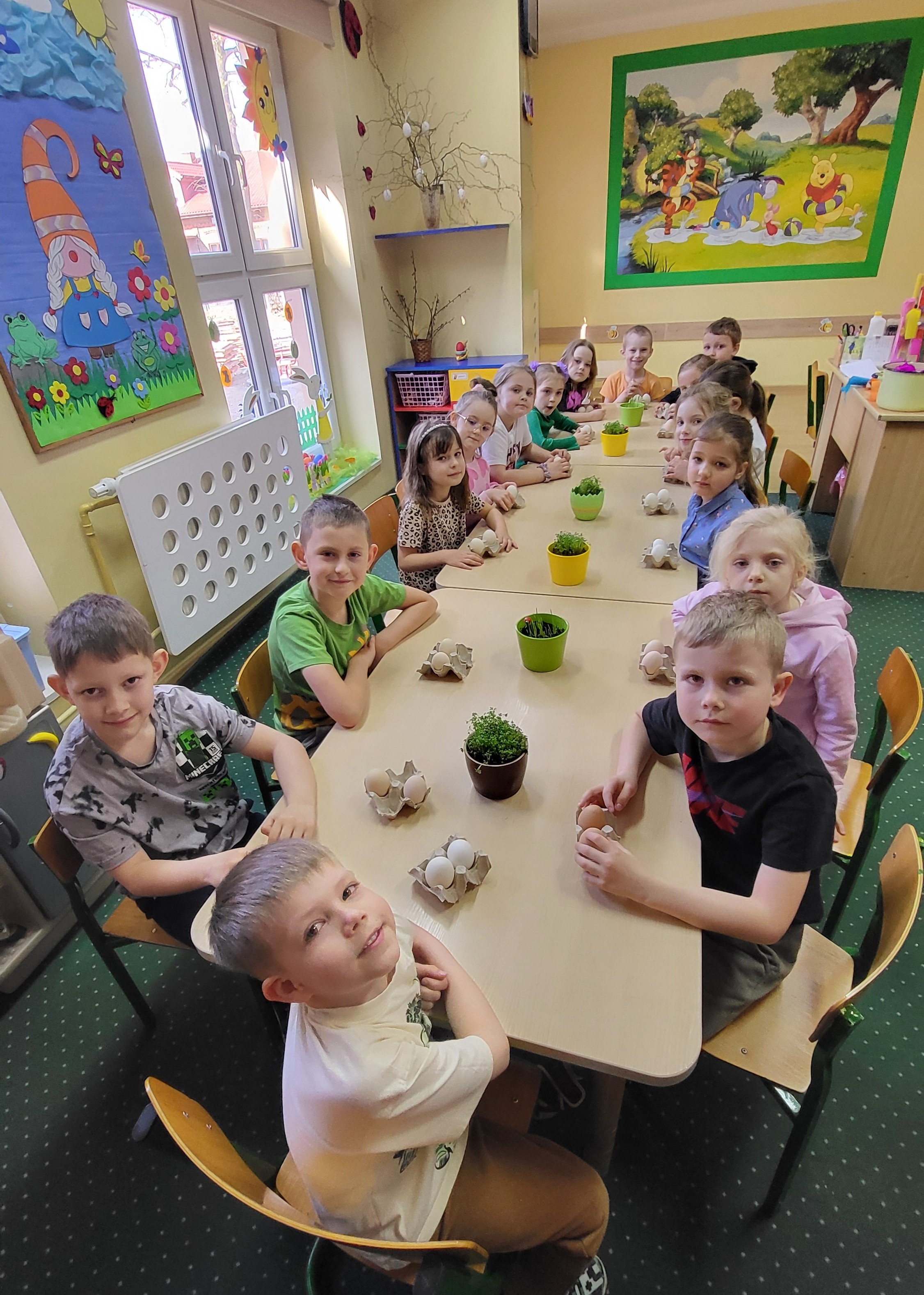 Rozpoczęliśmy od siania rzeżuchy i owsa – dzieci z zapałem przygotowywały doniczki i wysiewały nasiona, codziennie obserwując, jak roślinki rosną. Dzięki temu nie tylko uczyły się cierpliwości i systematyczności, ale też poznawały podstawy dbania o rośliny.