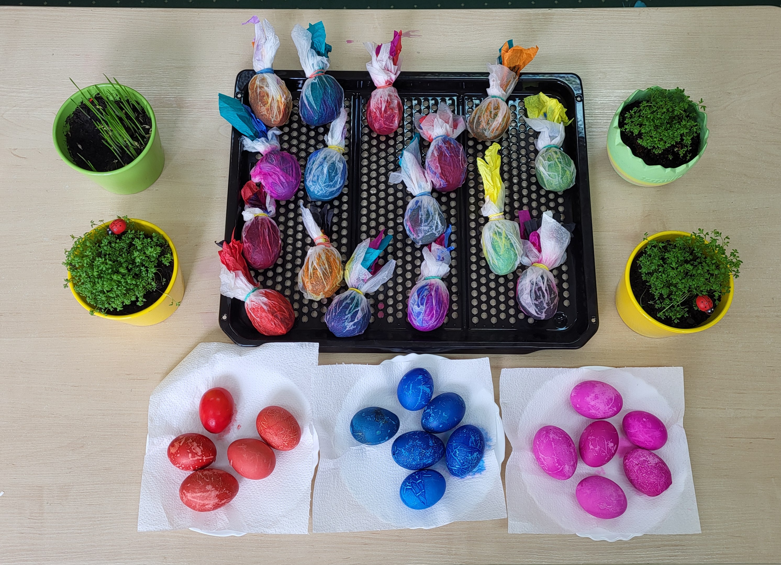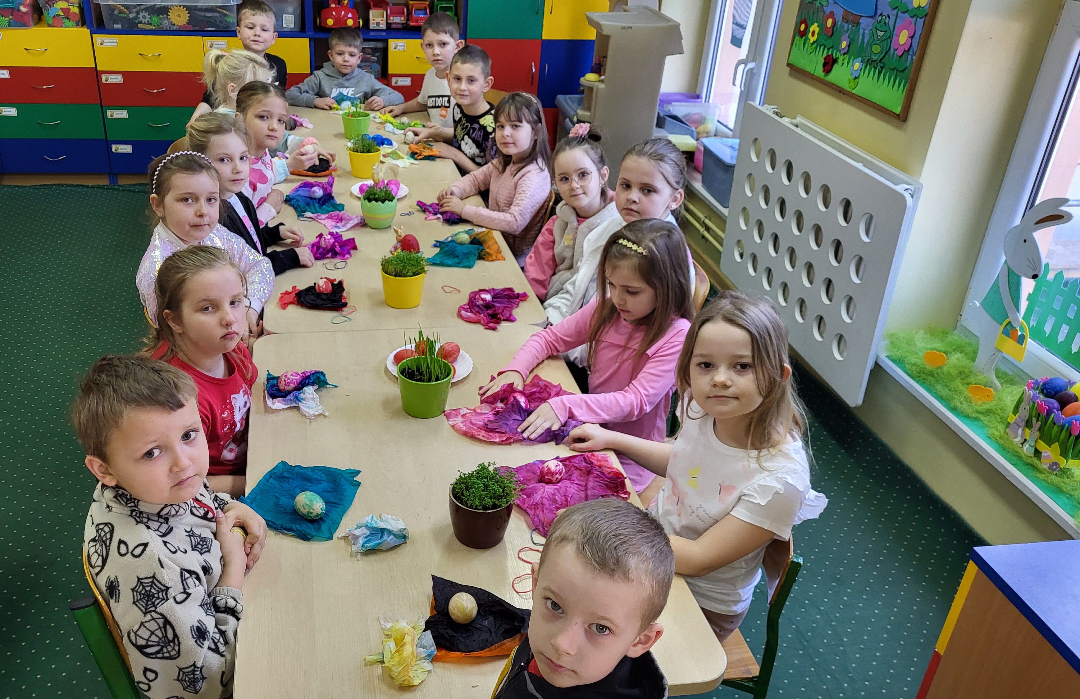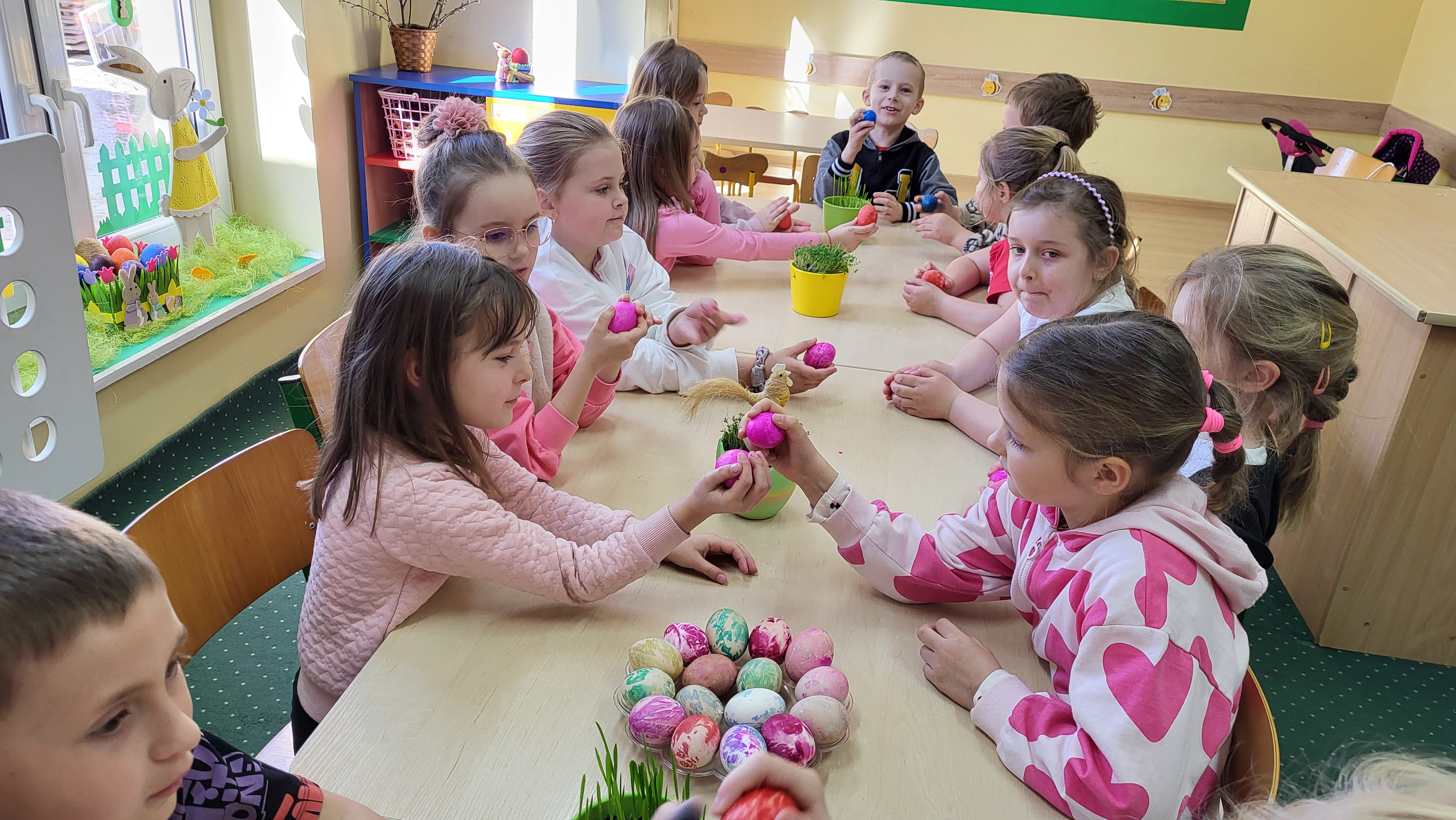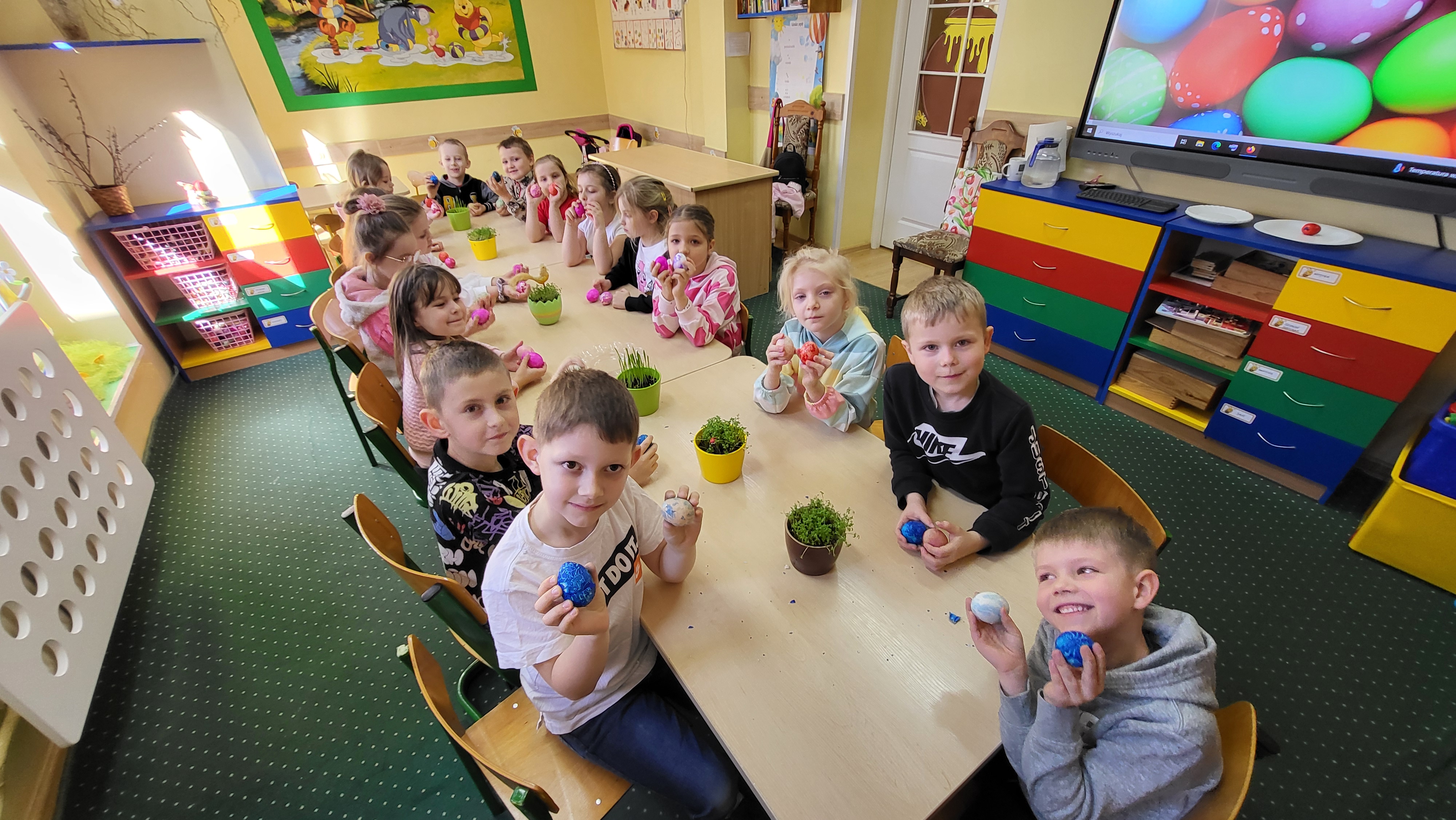 W tygodniu poprzedzającym Święta Wielkanocne nasze przedszkole zamieniło się w prawdziwą wiosenną pracownię! W ramach zajęć dydaktycznych i zabaw tematycznych Pszczółki miały okazję poznać wielkanocne tradycje, a także aktywnie włączyć się w przygotowania do tych radosnych świąt.