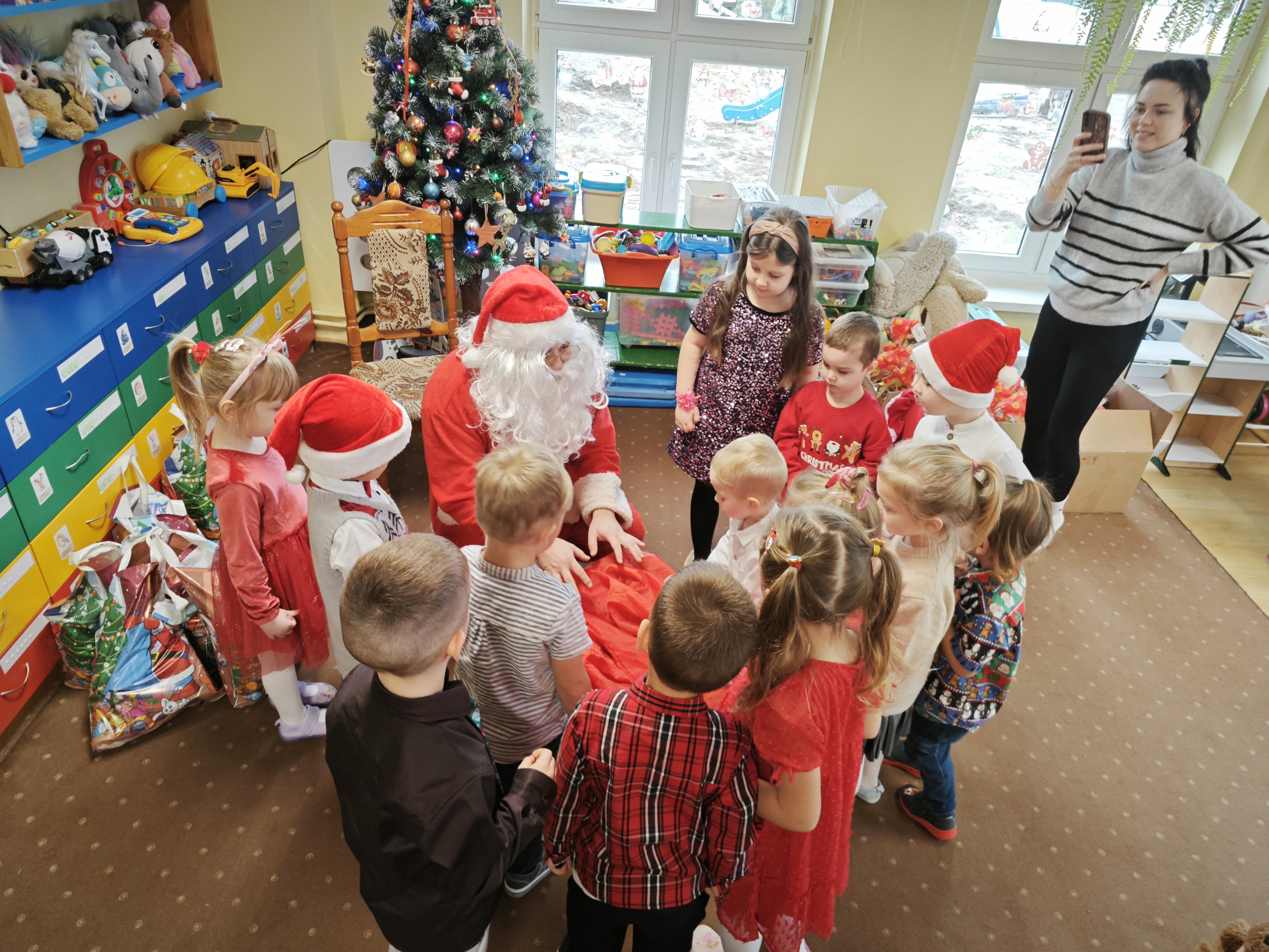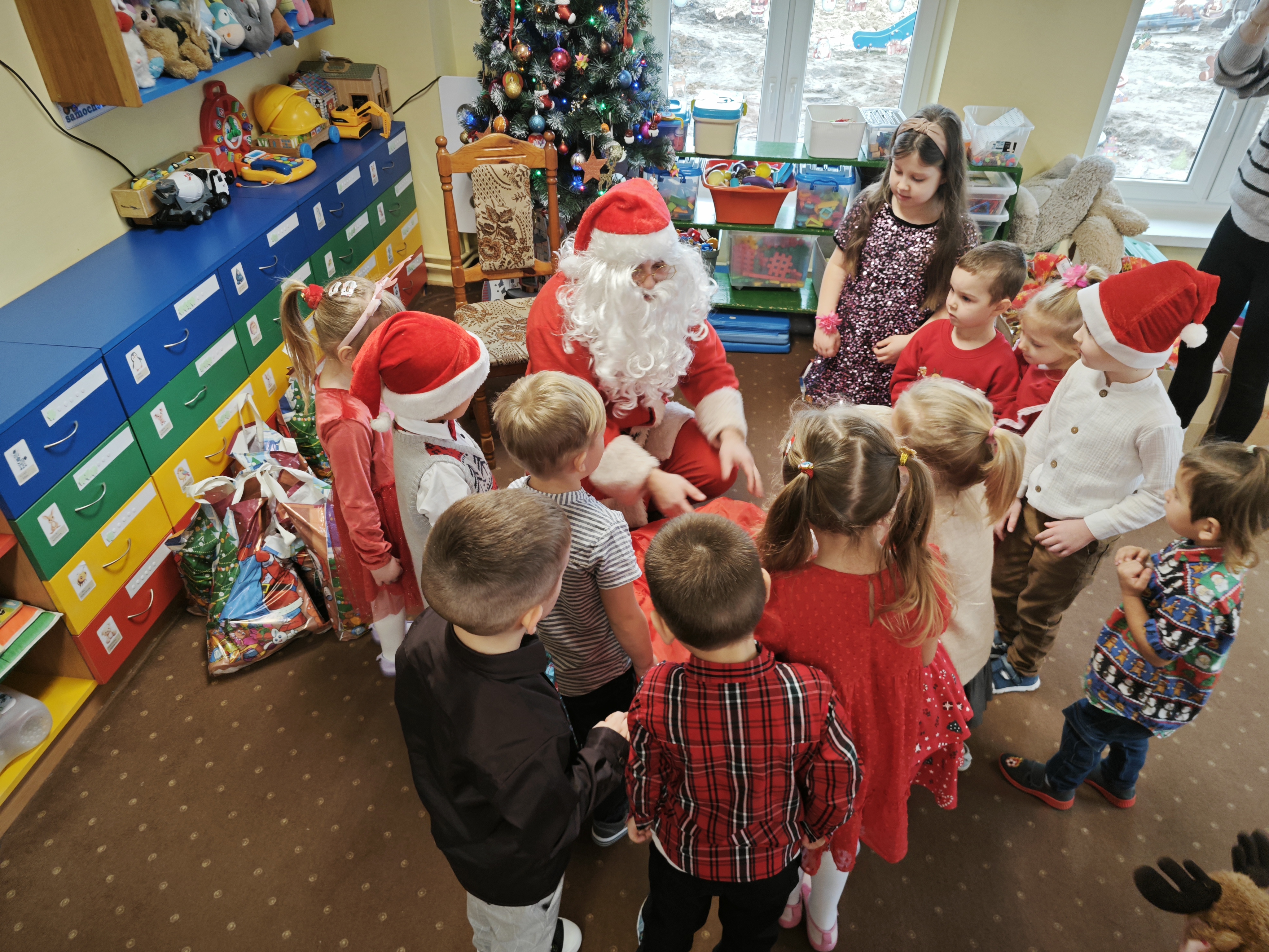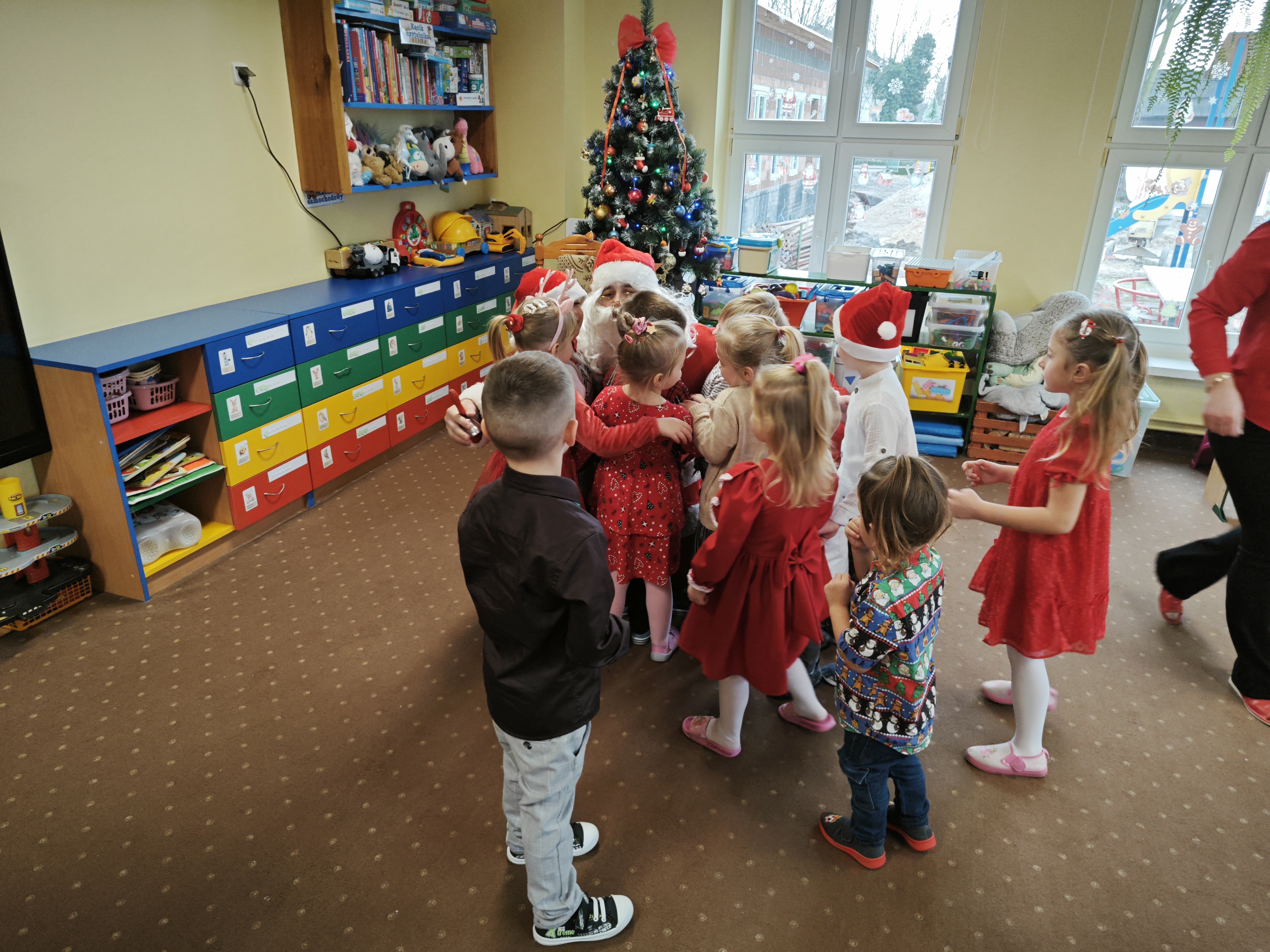 W naszym przedszkolu kolejny raz zjawił się Święty Mikołaj z ogromnym workiem prezentów! Jednakże zanim to nastąpiło wspólnie zaśpiewaliśmy kolędy oraz symbolicznie podzieliliśmy się opłatkiem :)
