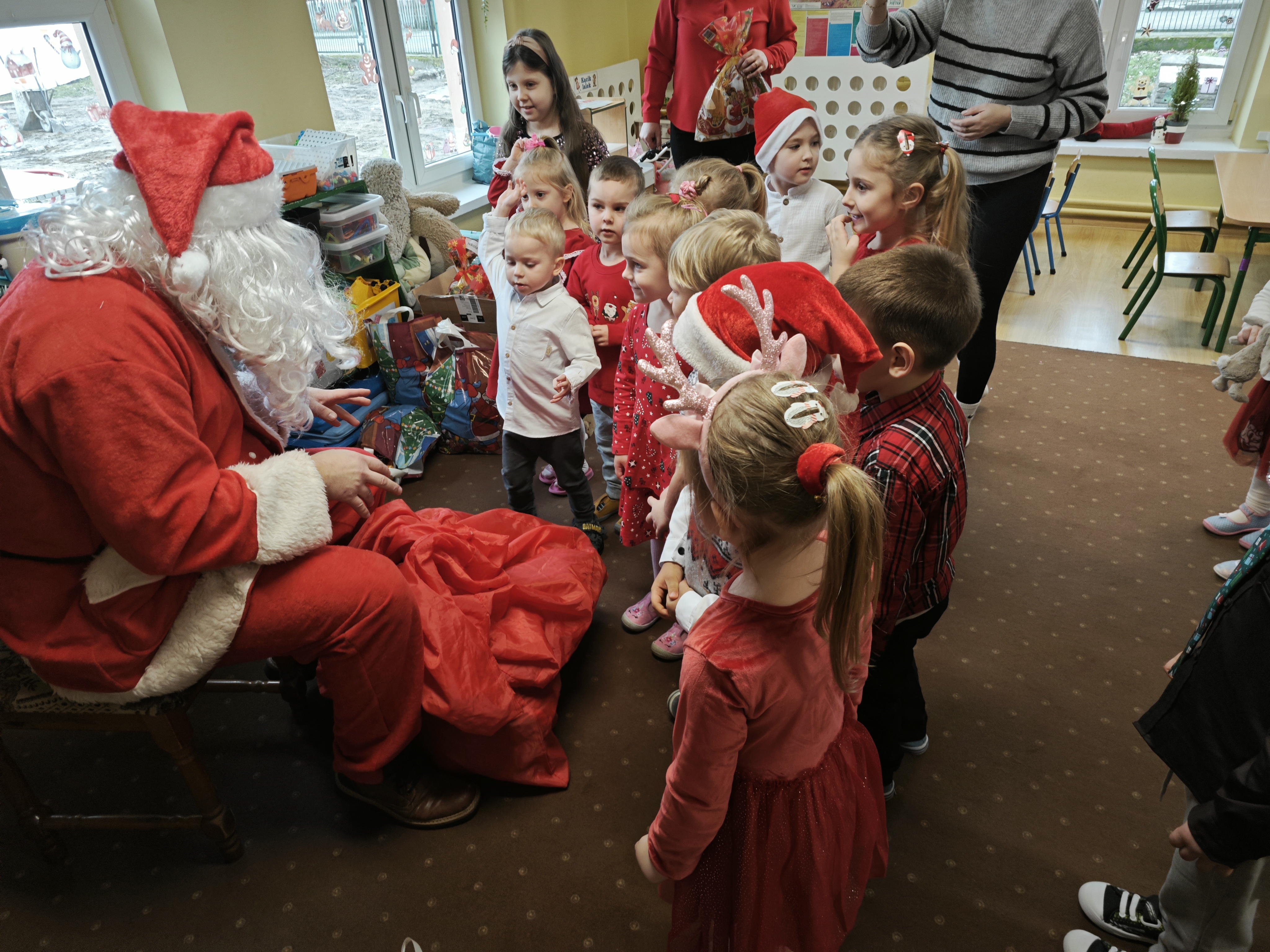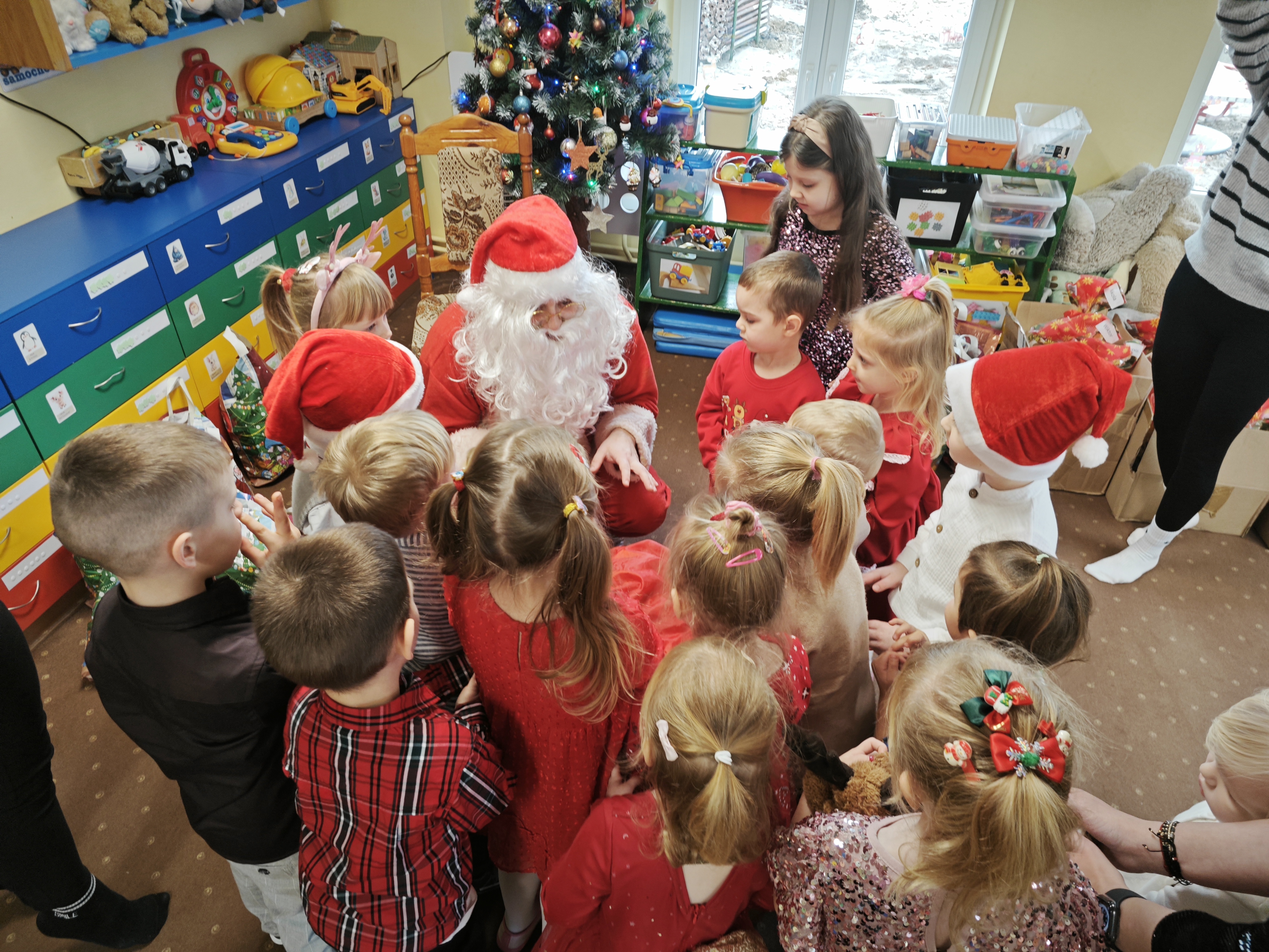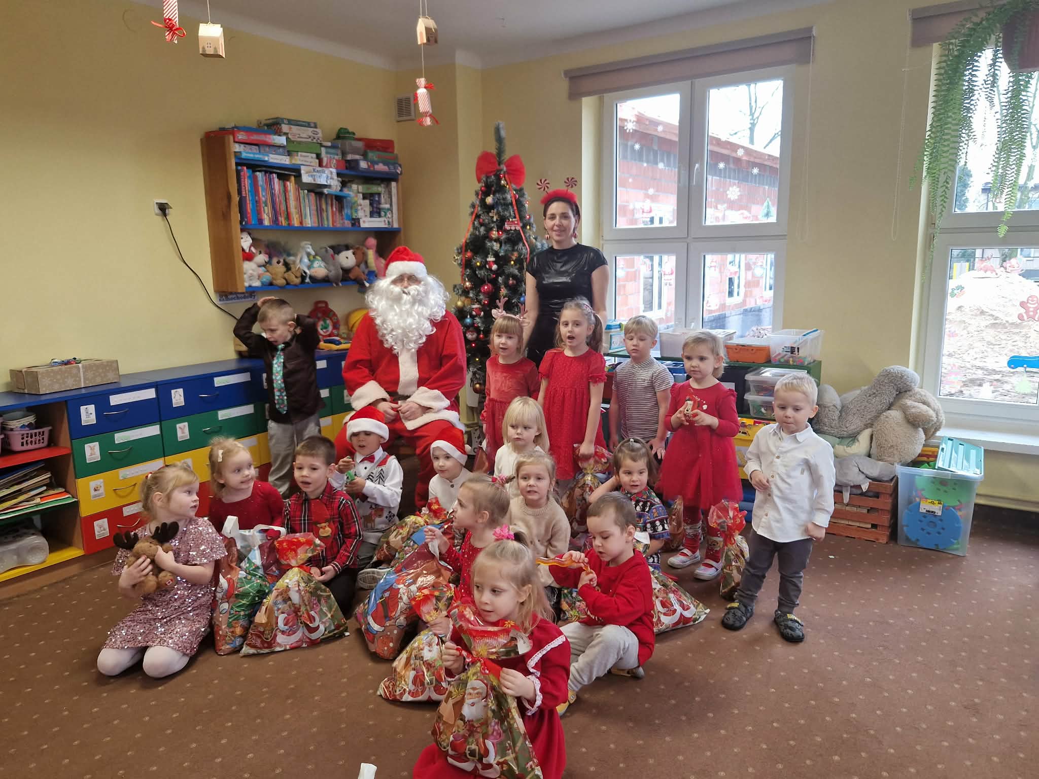 W naszym przedszkolu kolejny raz zjawił się Święty Mikołaj z ogromnym workiem prezentów! Jednakże zanim to nastąpiło wspólnie zaśpiewaliśmy kolędy oraz symbolicznie podzieliliśmy się opłatkiem :)