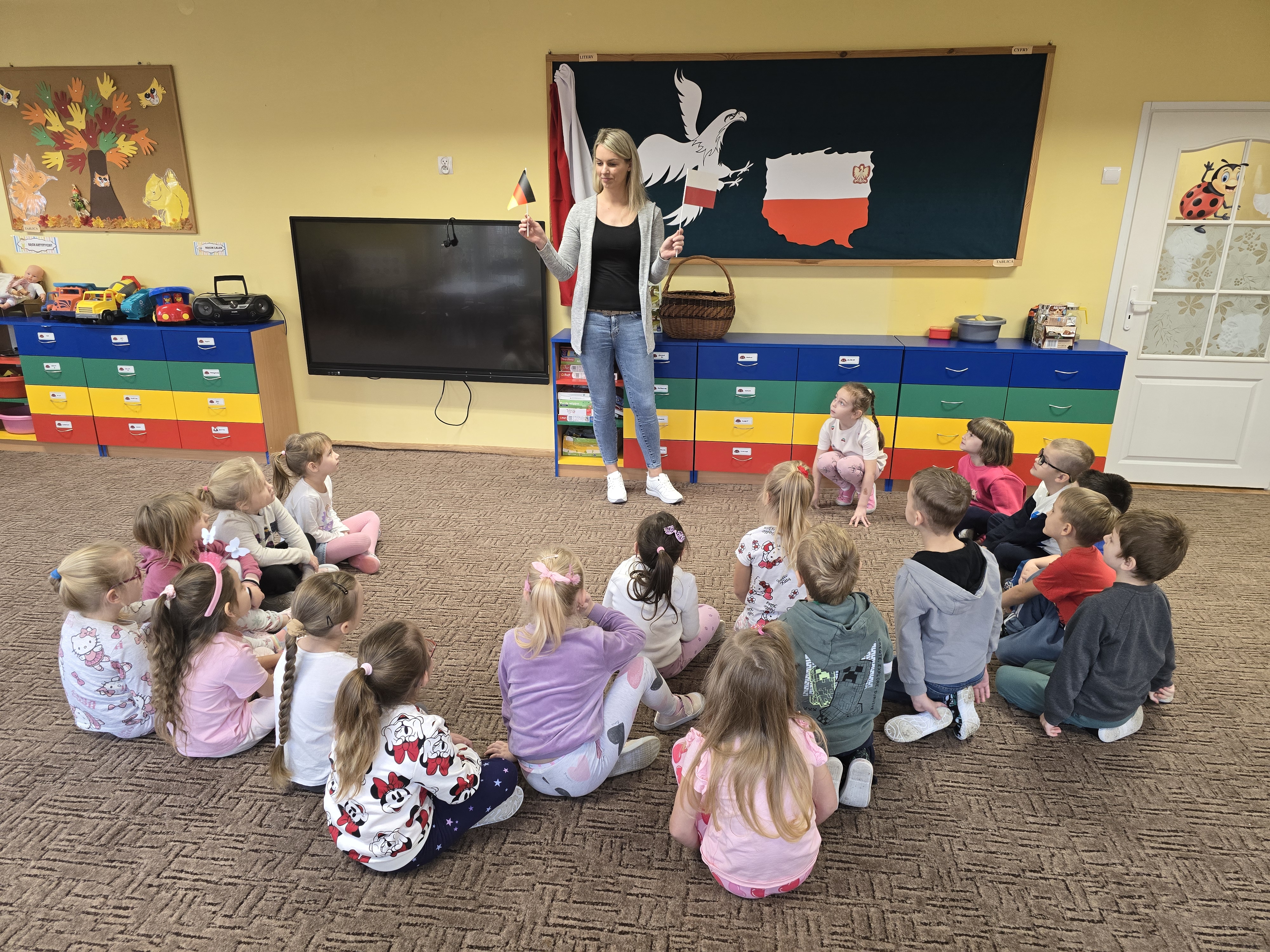Zaczynamy od języka niemieckiego. Odwiedziła nas dziś Pani Diana Kacprzak, która przybliżyła nam język, kulturę i życie codzienne naszych zachodnich sąsiadów. Dzieci z zaciekawieniem słuchały oraz brały udział w zabawach ruchowych.