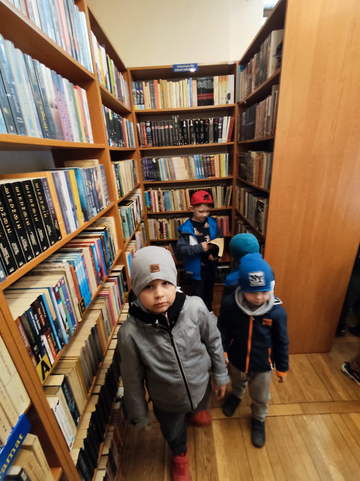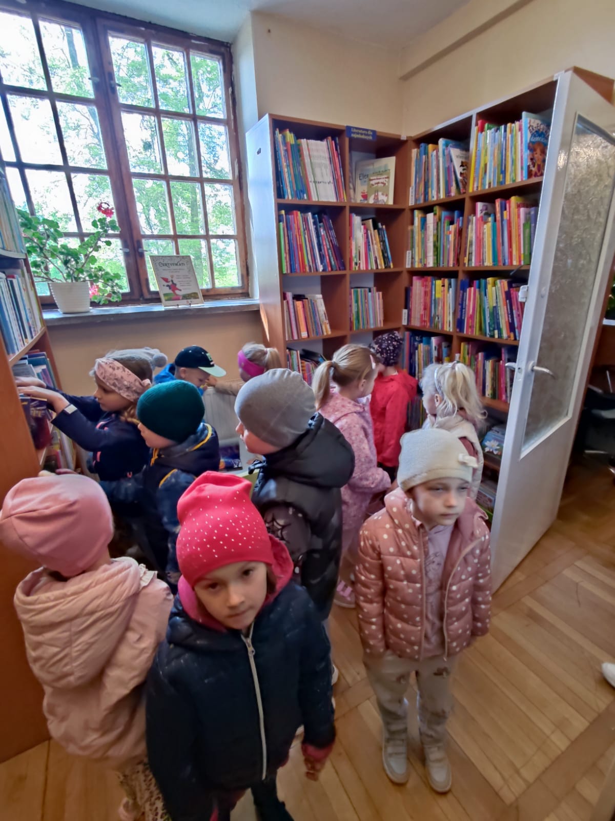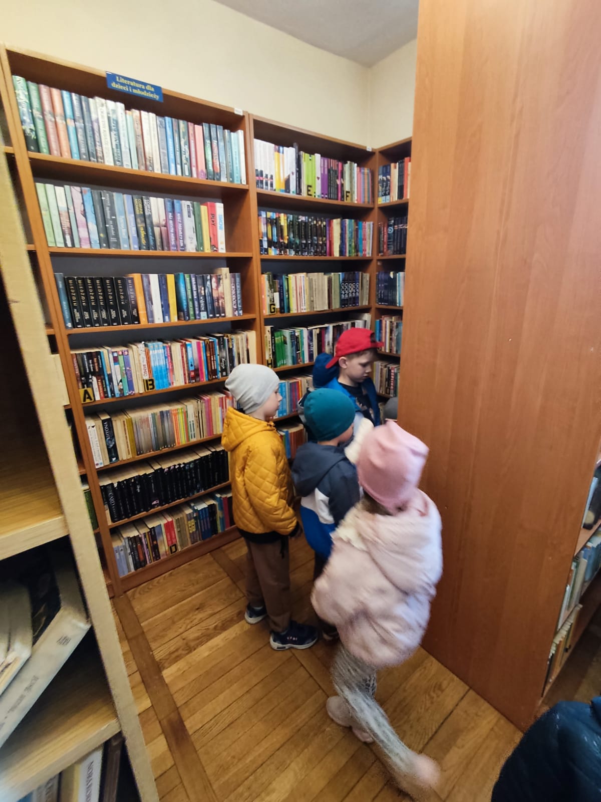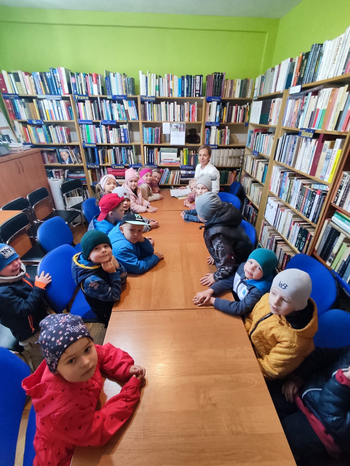 Najpierw Bibliotekę Publiczną, jako podsumowanie tematu tygodnia "Książka, moja przyjaciółka". Przywitała dzieci serdecznie pani bibliotekarka Ewelina Mazurek, opowiedziała o jej funkcjonowaniu, przedstawiła ofertę dla dzieci oraz zachęcała do systematycznego korzystania z jej bogatych księgozbiorów.