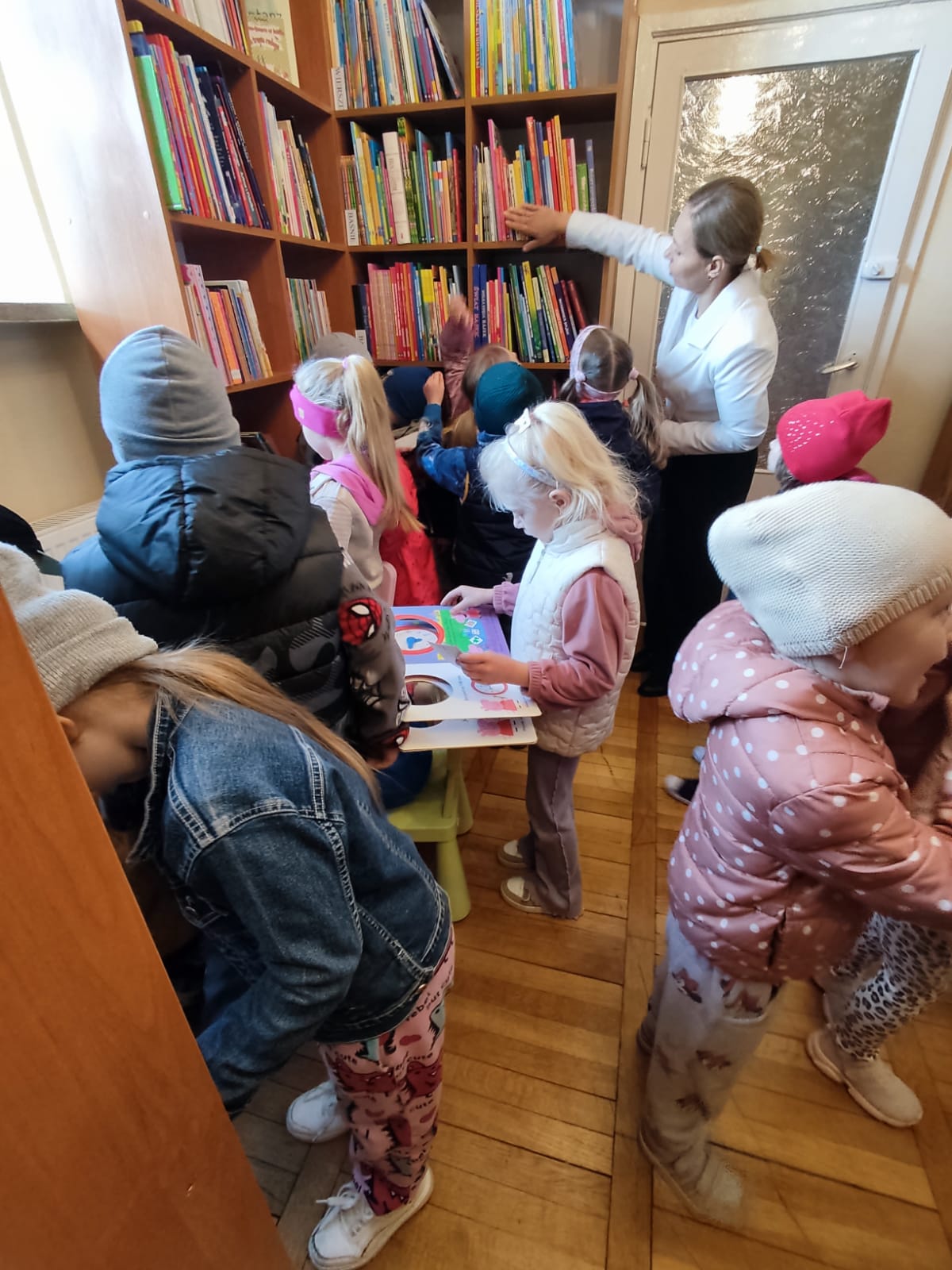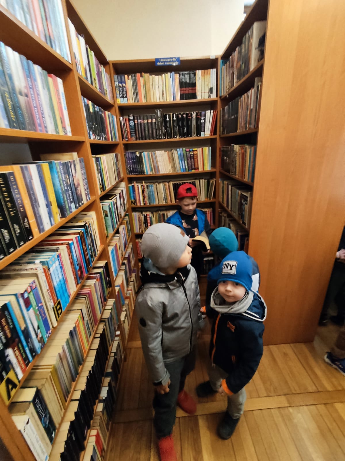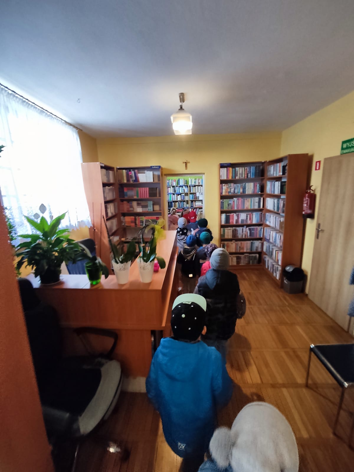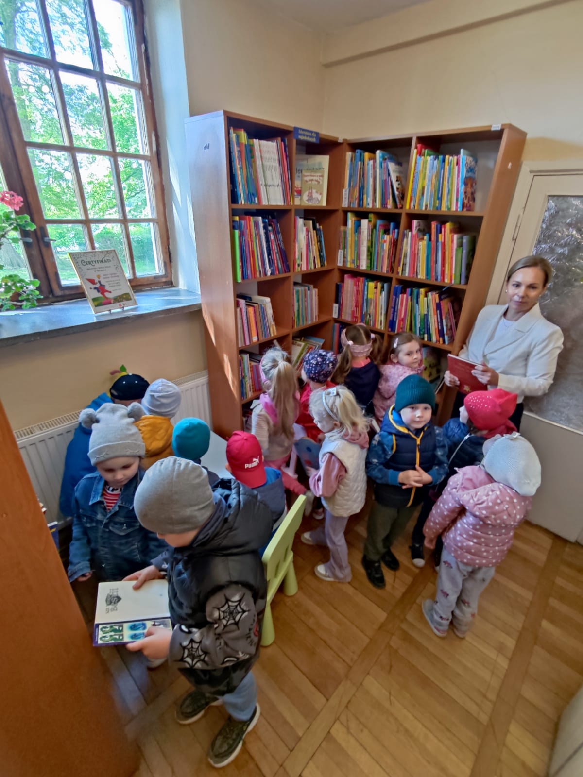 Najpierw Bibliotekę Publiczną, jako podsumowanie tematu tygodnia "Książka, moja przyjaciółka". Przywitała dzieci serdecznie pani bibliotekarka Ewelina Mazurek, opowiedziała o jej funkcjonowaniu, przedstawiła ofertę dla dzieci oraz zachęcała do systematycznego korzystania z jej bogatych księgozbiorów.