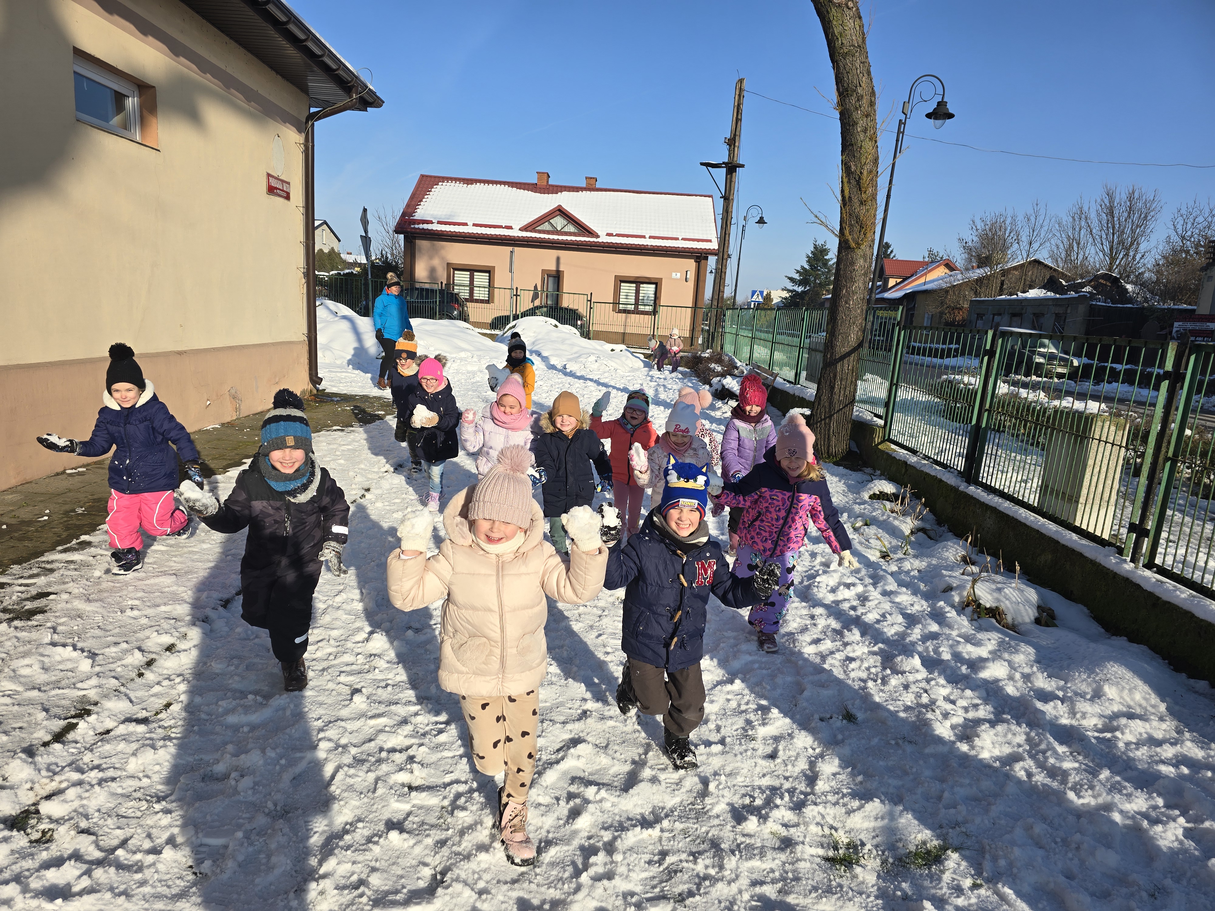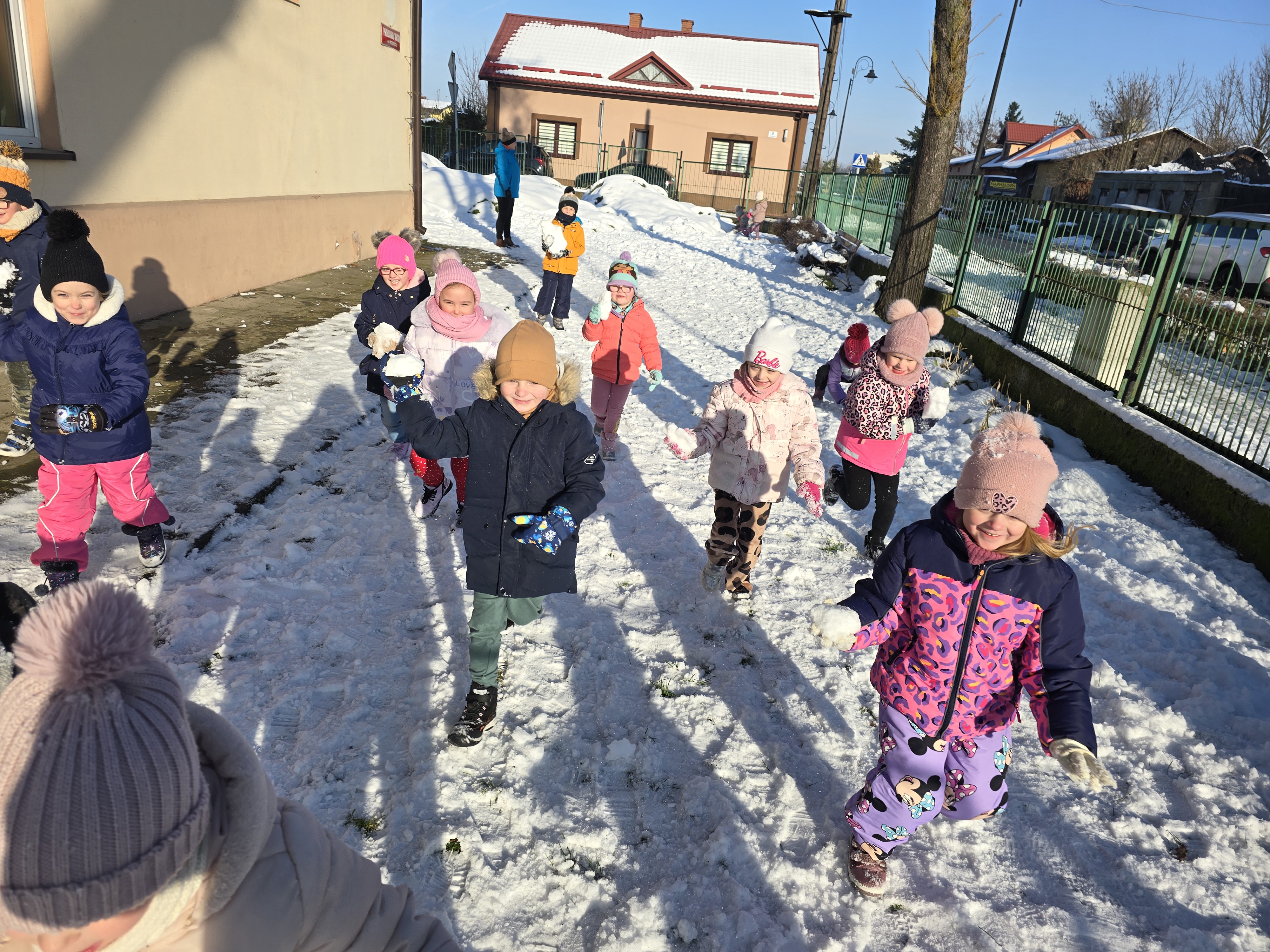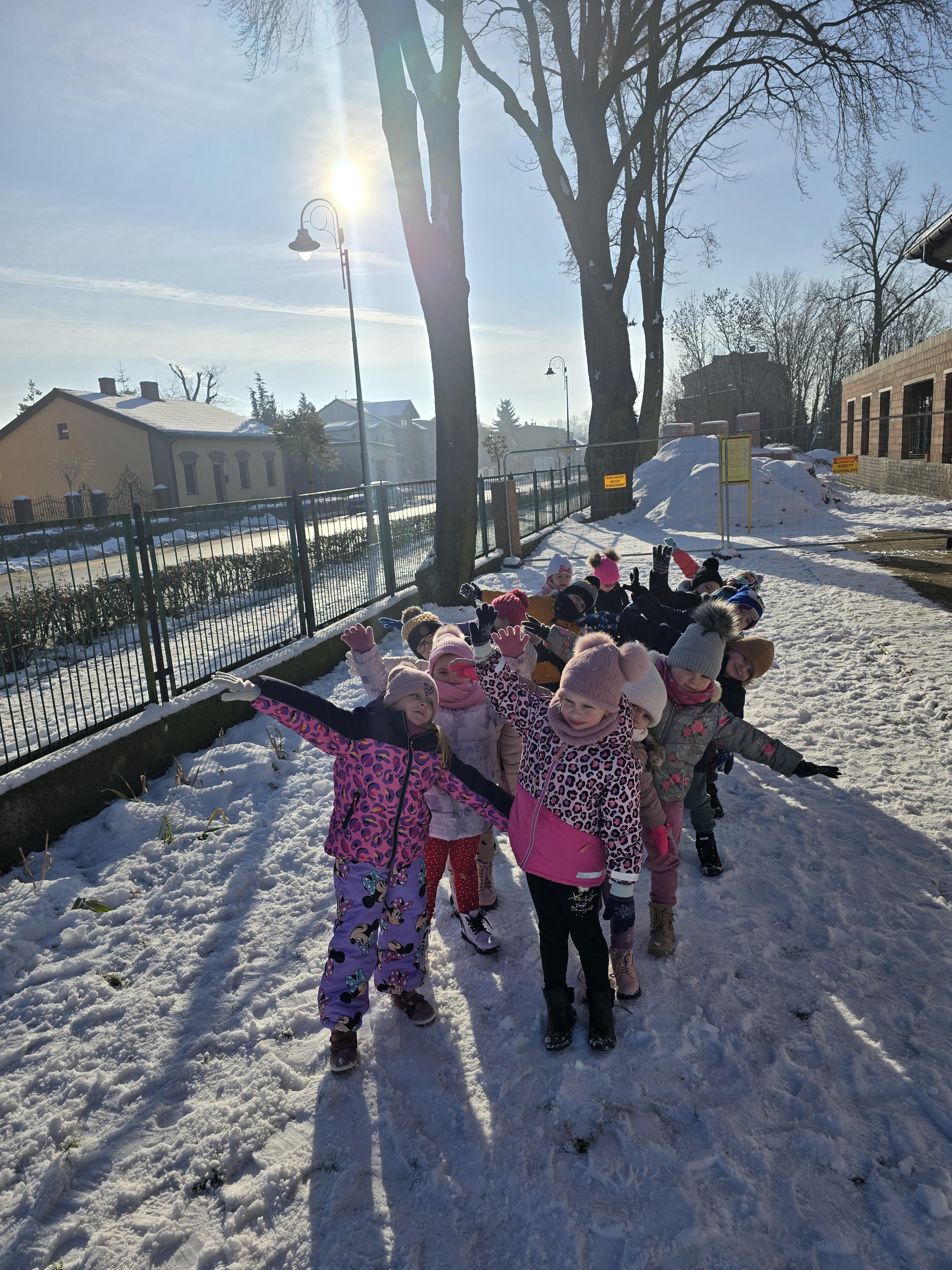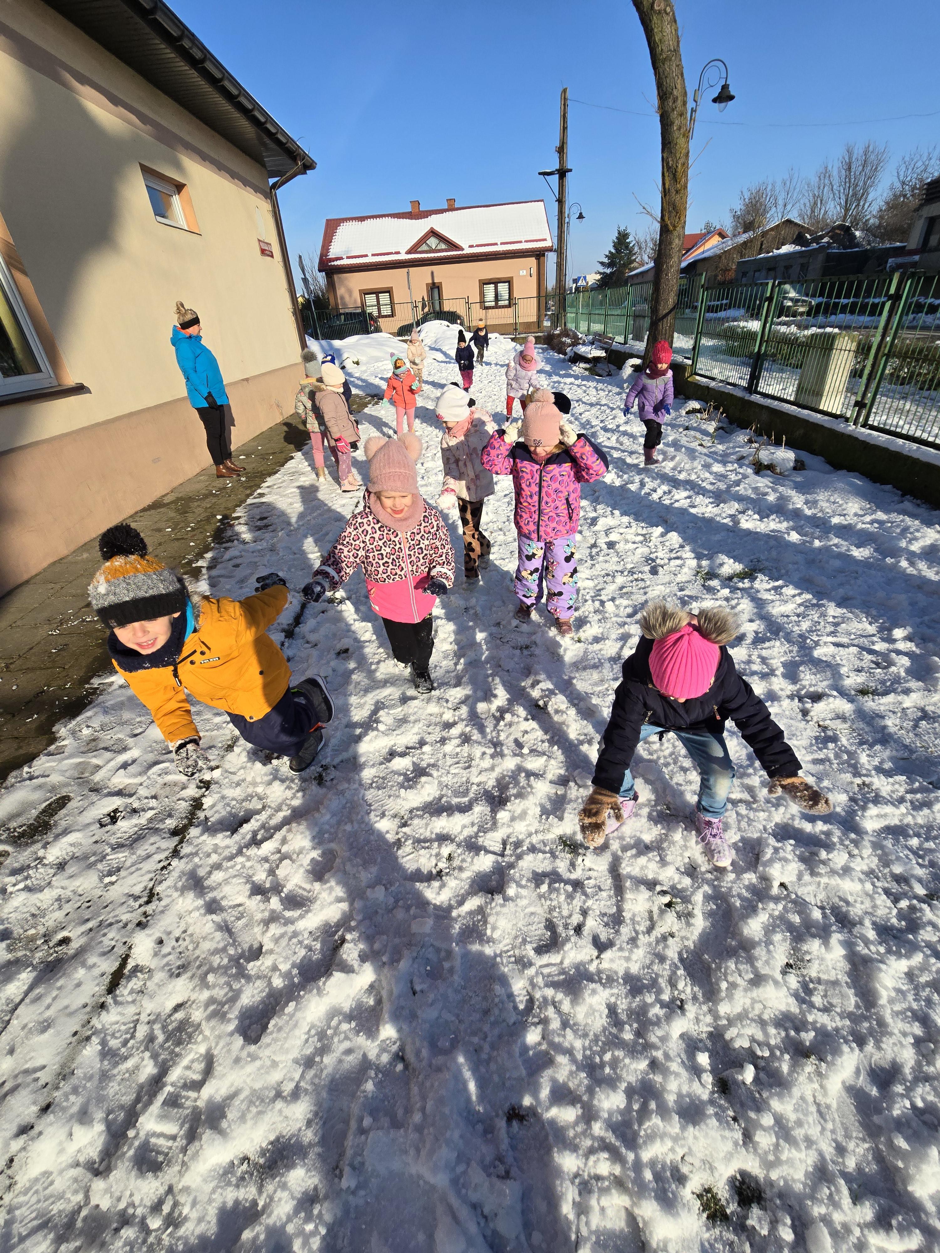 Tegoroczna zima płata nam figle, raz jest ciepło, a za chwilę mróz szczypie nas w nos. Wreszcie pojawił się pierwszy śnieg, który ucieszył bardzo dzieci.