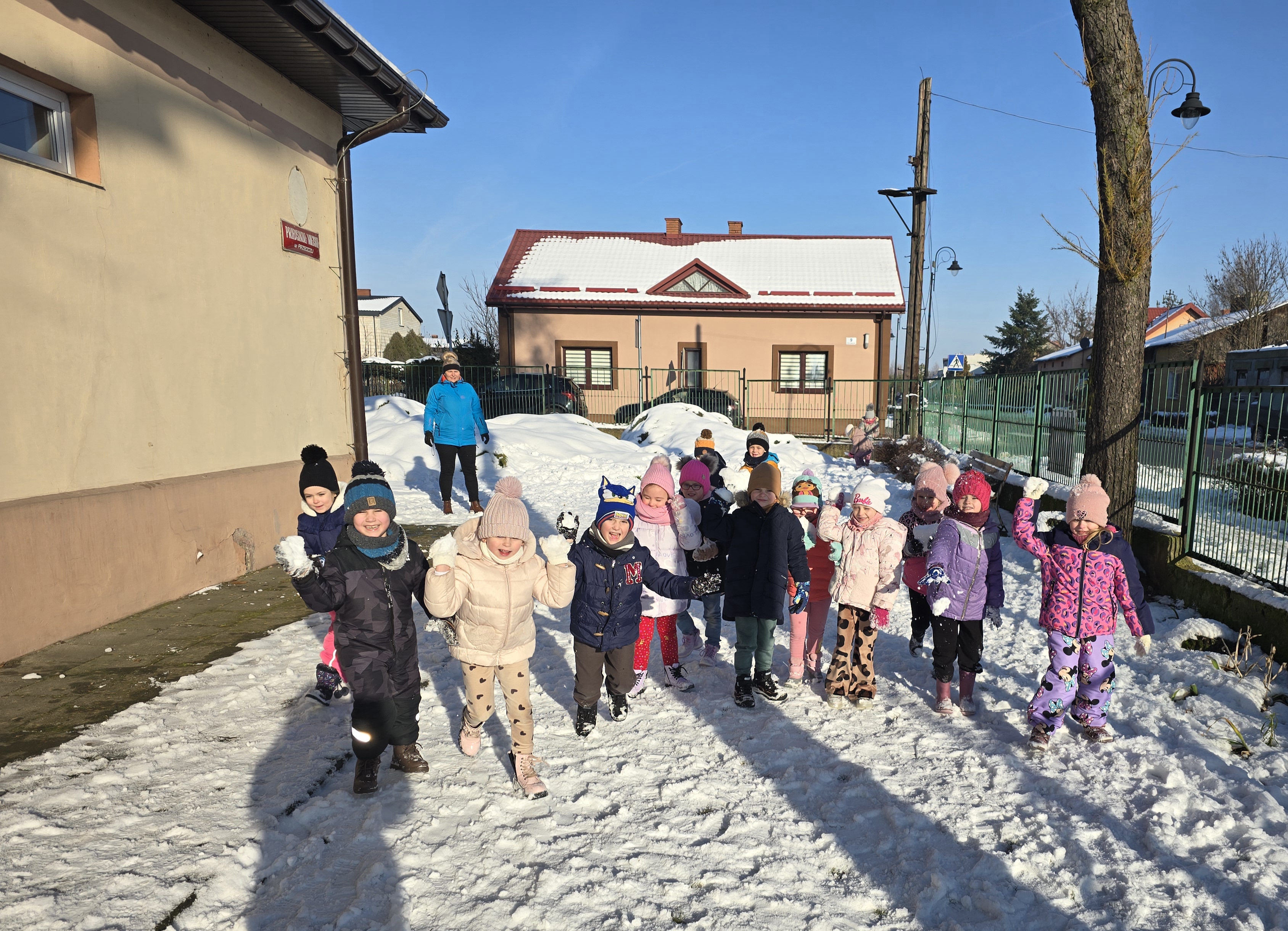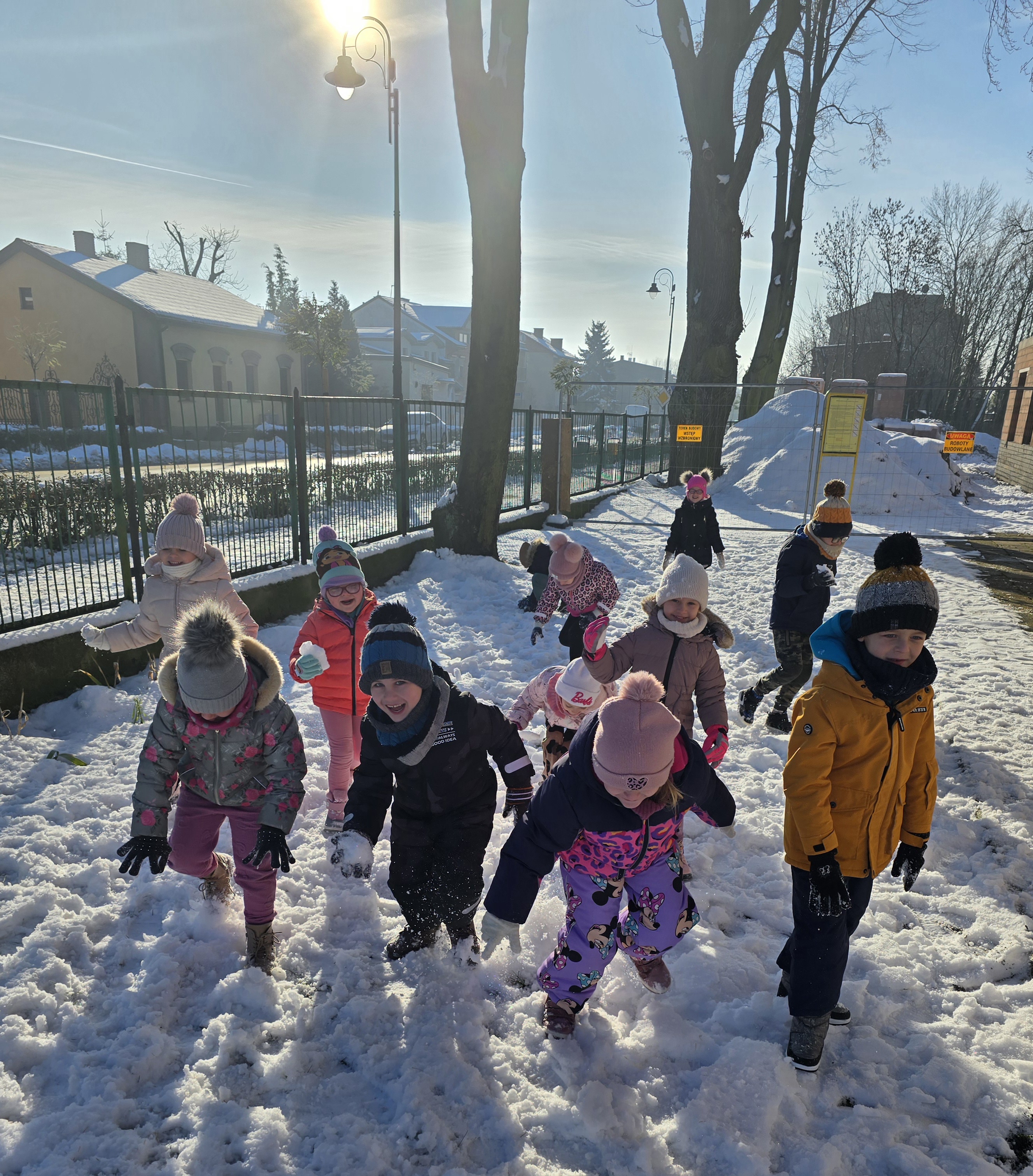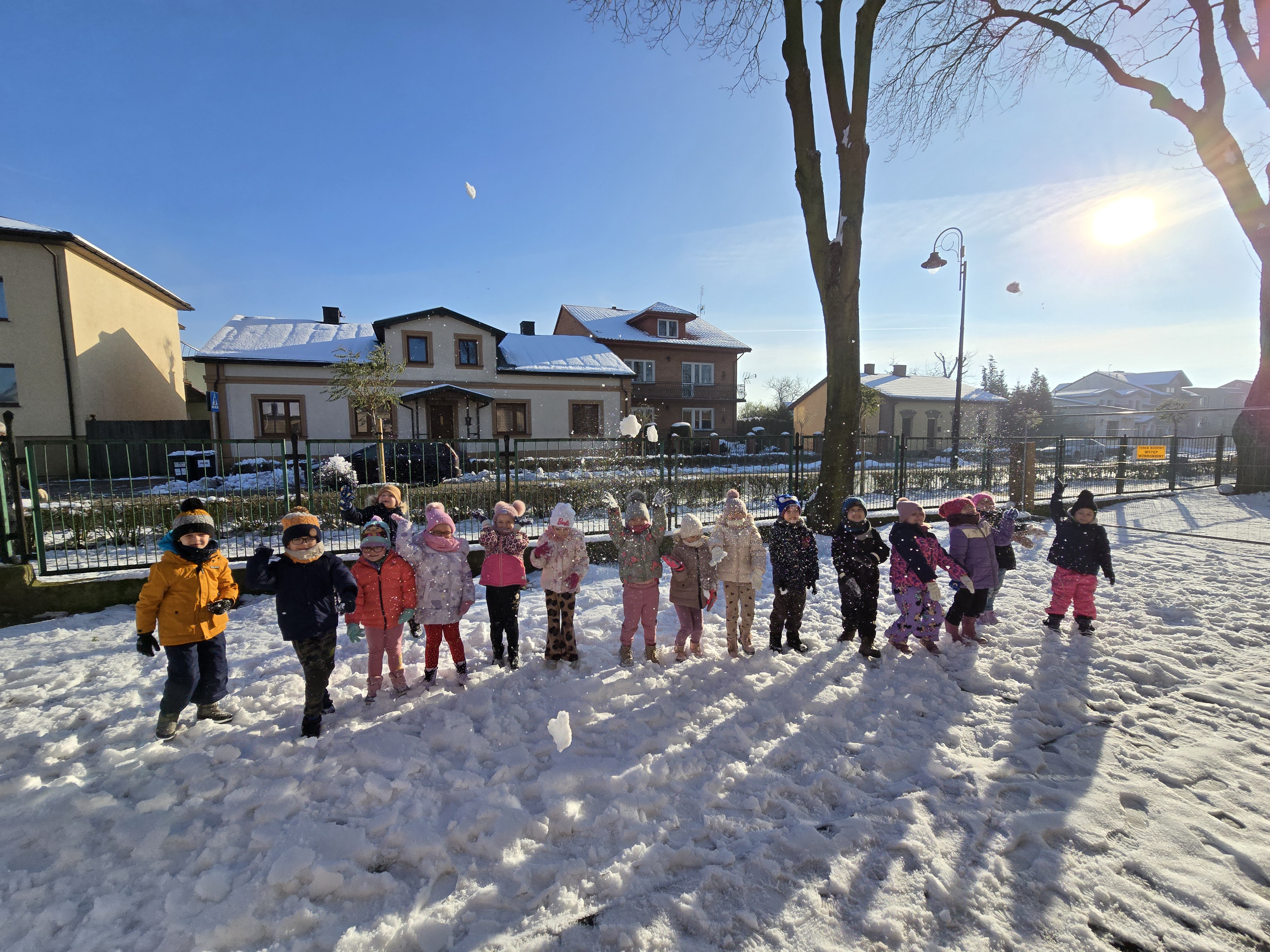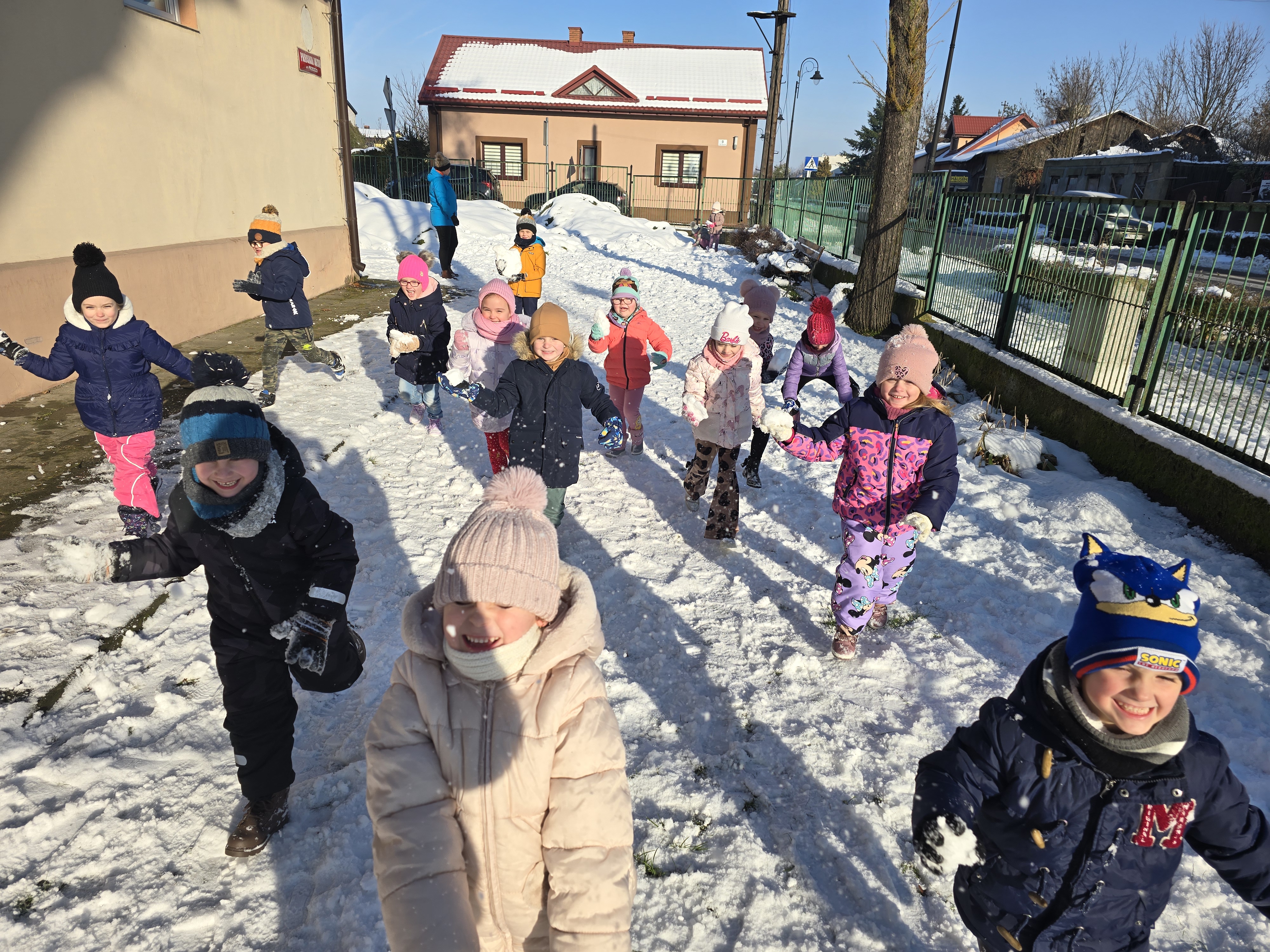 Tegoroczna zima płata nam figle, raz jest ciepło, a za chwilę mróz szczypie nas w nos. Wreszcie pojawił się pierwszy śnieg, który ucieszył bardzo dzieci.