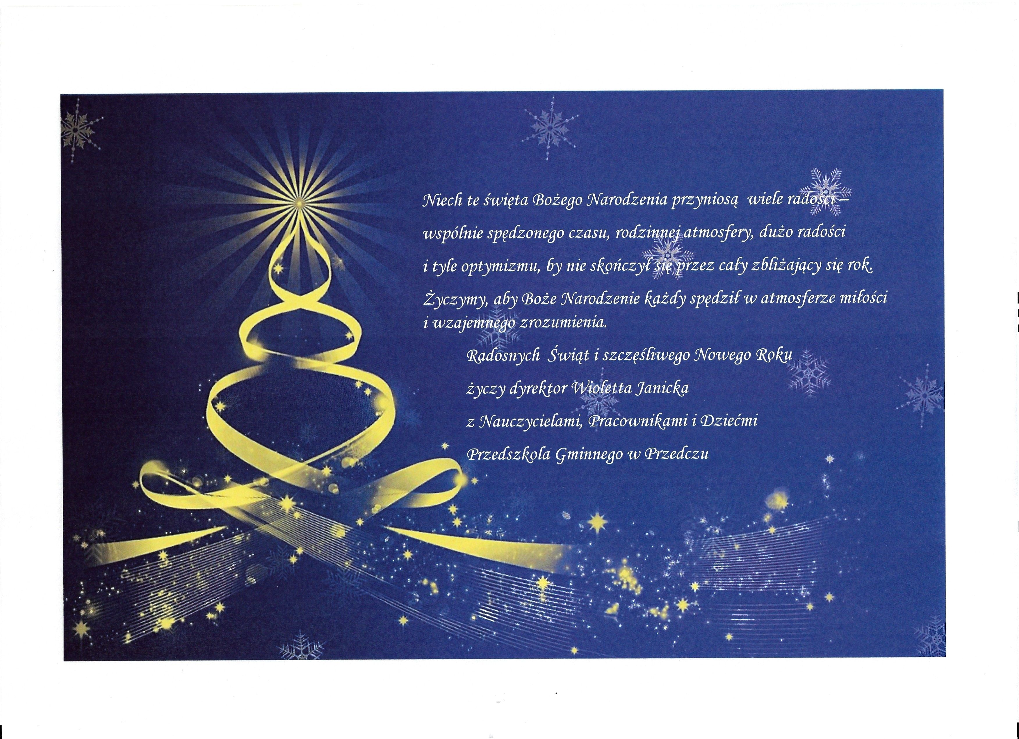 Niech nadchodzące Święta Bożego Narodzenia będą dla każdego niezapomnianym czasem spędzonym bez pośpiechu, trosk i zmartwień. Życzymy Wam, aby odbyły się w spokoju, radości wśród Rodziny, Przyjaciół oraz wszystkich Bliskich dla Was osób. A wraz z nadchodzącym Nowym Rokiem życzymy Wszystkim również dużo zdrowia i szczęścia. Niech nie opuszcza Was pomyślność i spełnią się te najskrytsze marzenia.